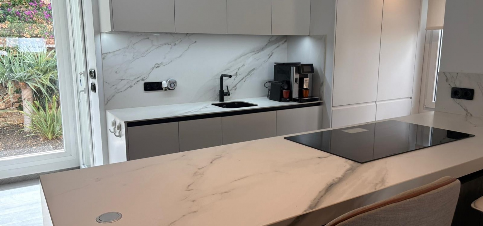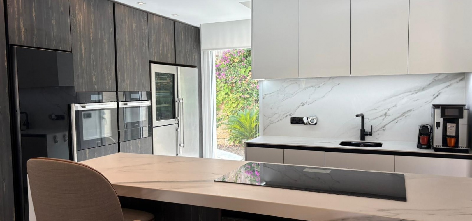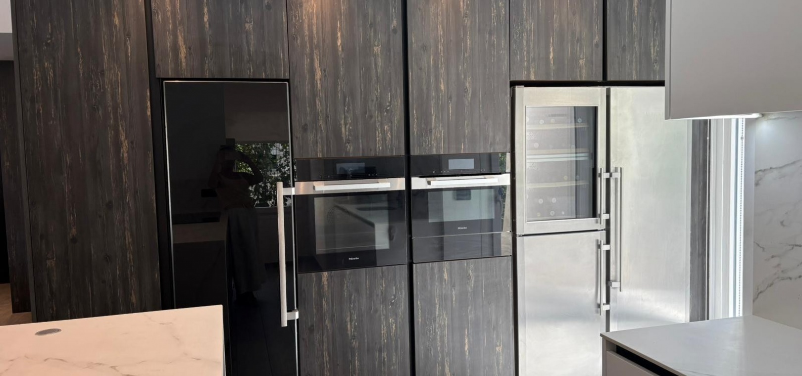 Die moderne Küche ist komplett mit High-End-Geräten von Miele und Liebherr ausgestattet und garantiert Qualität und Funktionalität.