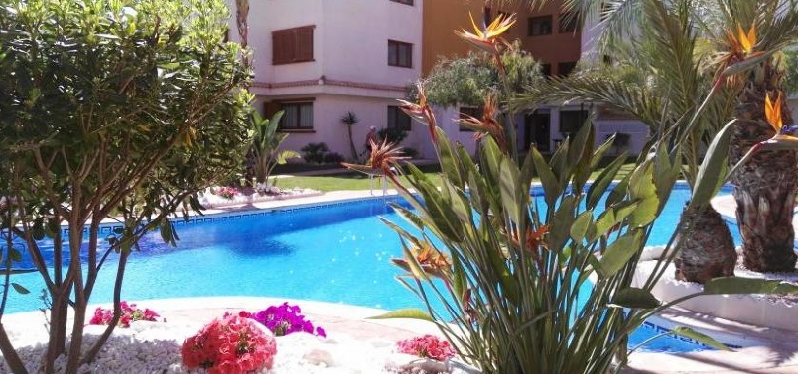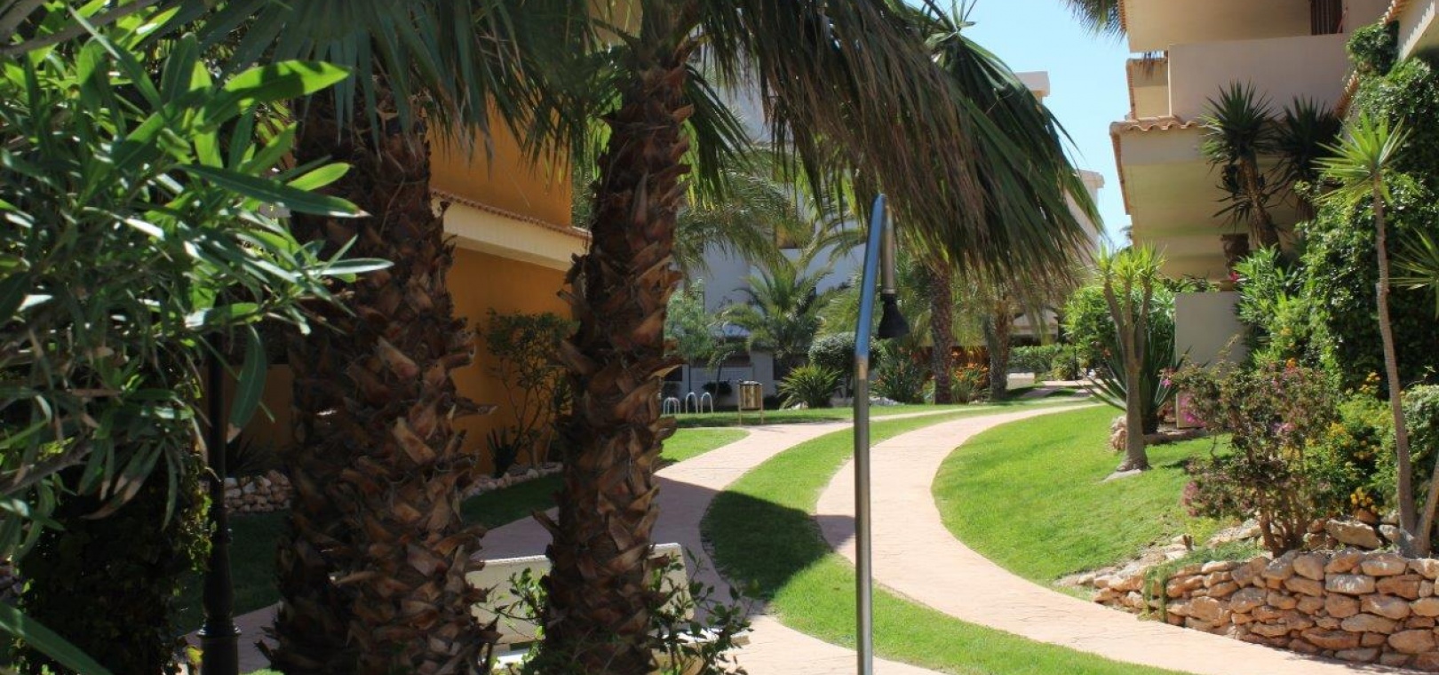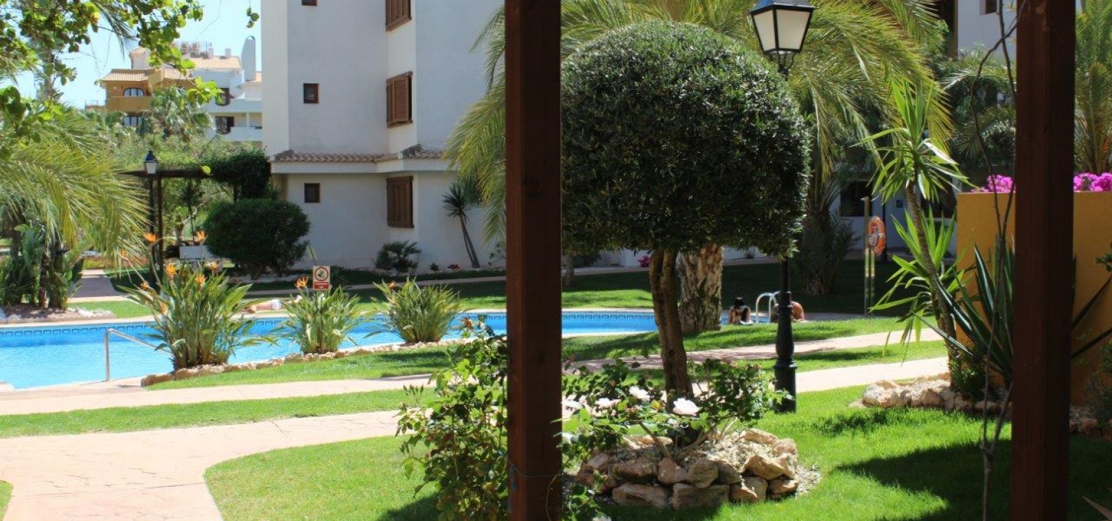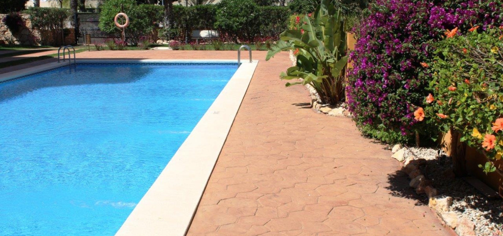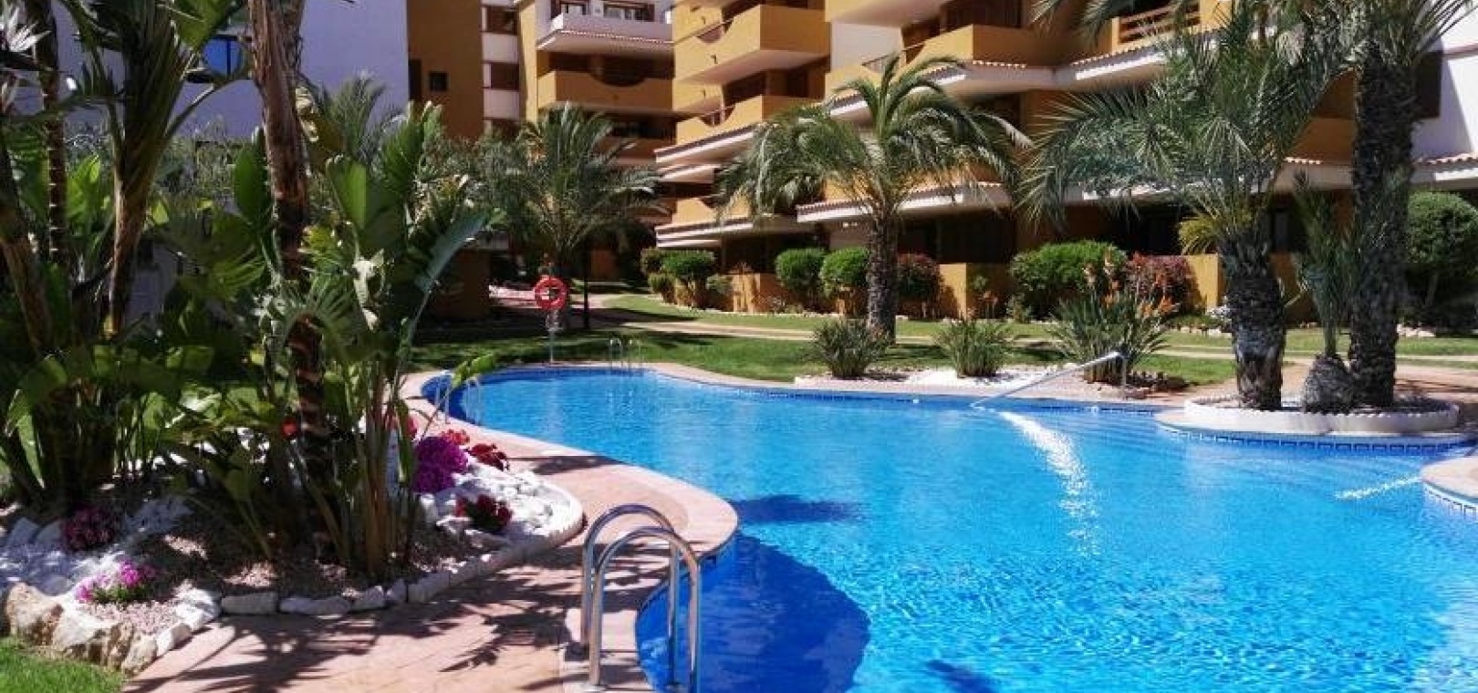 Der Komplex La Entrada bietet große Grünflächen, mehrere Gemeinschaftspools und liegt nur wenige Meter vom Strand entfernt.