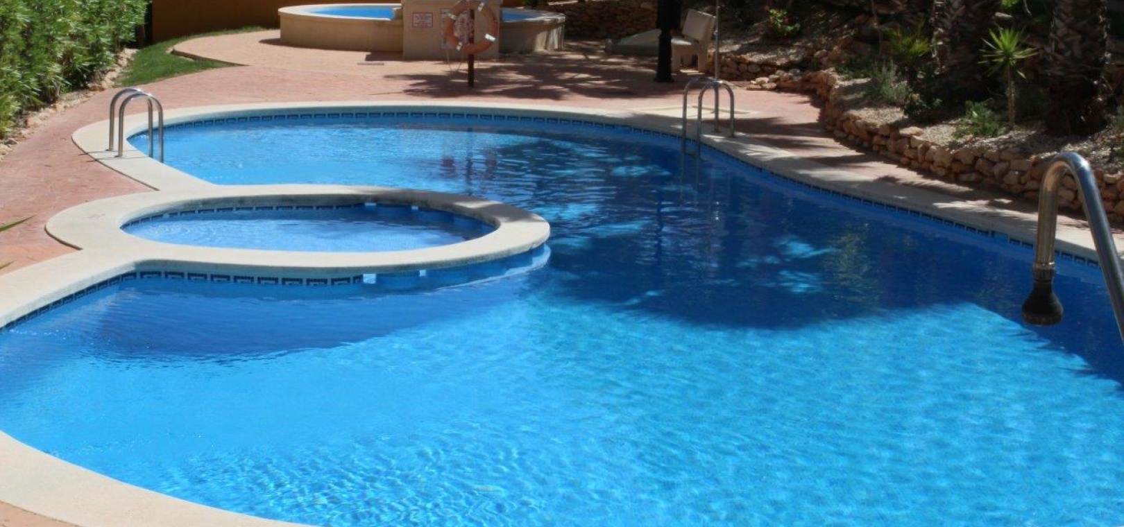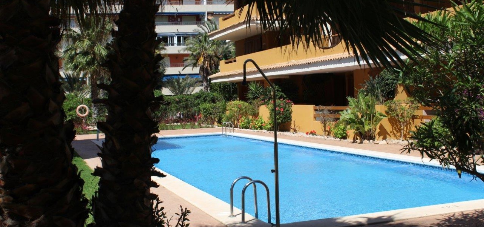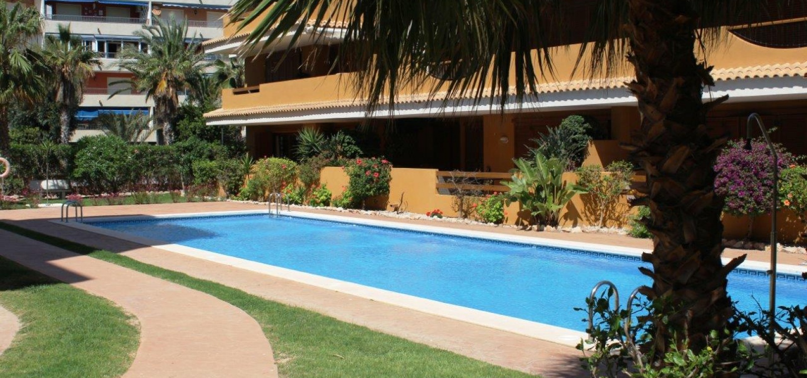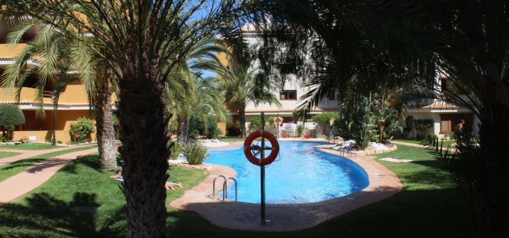 Der Komplex La Entrada bietet große Grünflächen, mehrere Gemeinschaftspools und liegt nur wenige Meter vom Strand entfernt.