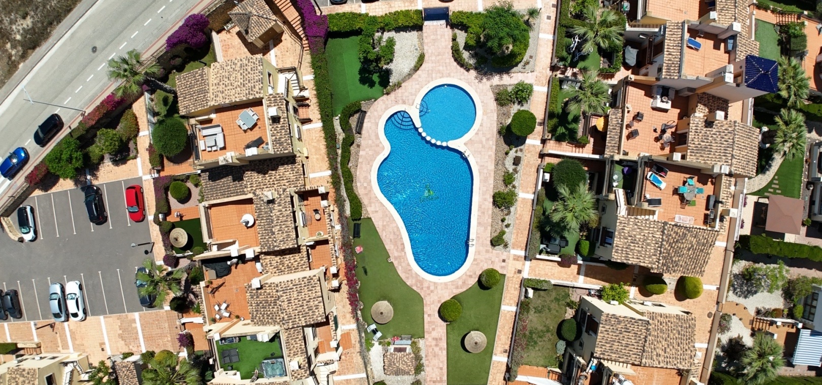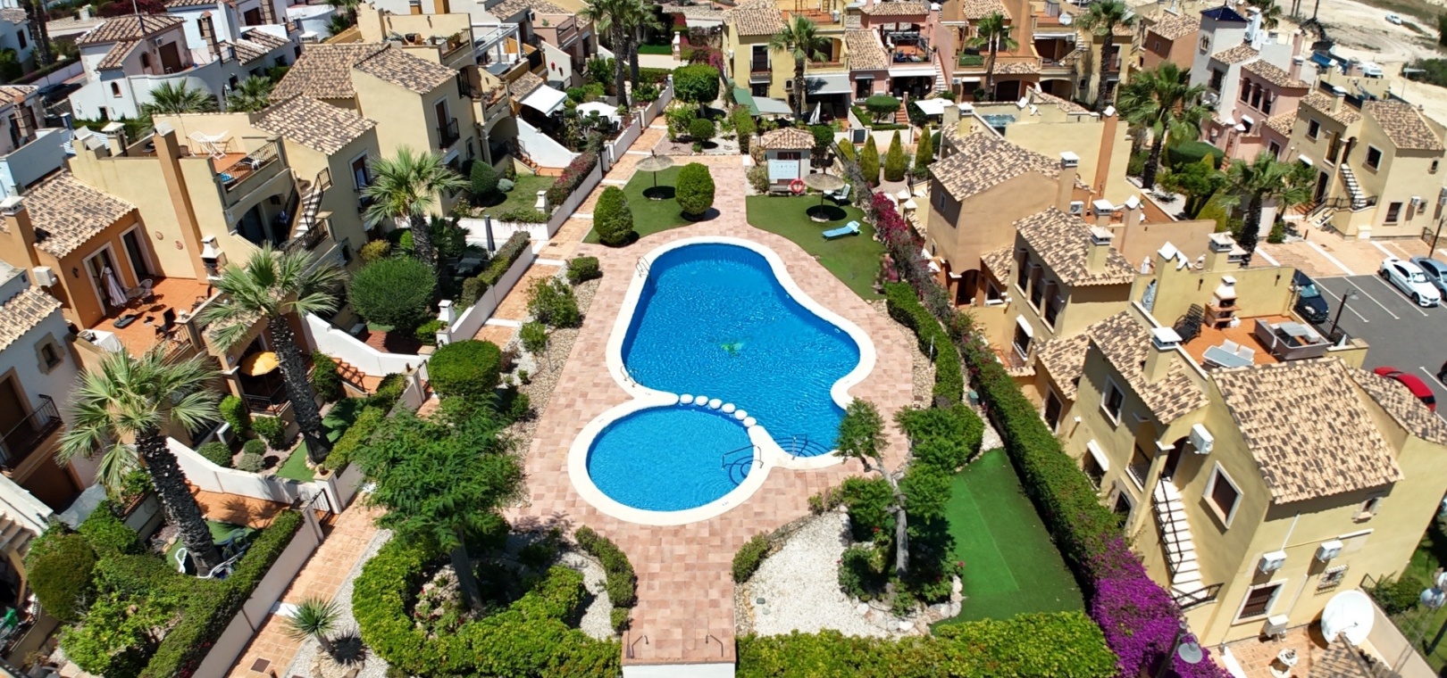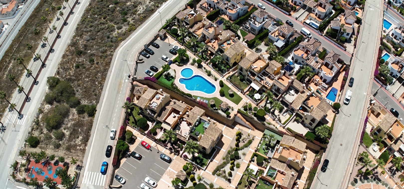 12 km vom Strand entfernt 35 km vom Flughafen 1 km von Annehmlichkeiten und einem nahegelegenen Golfplatz entfernt Ruhige und gepflegte Anlage