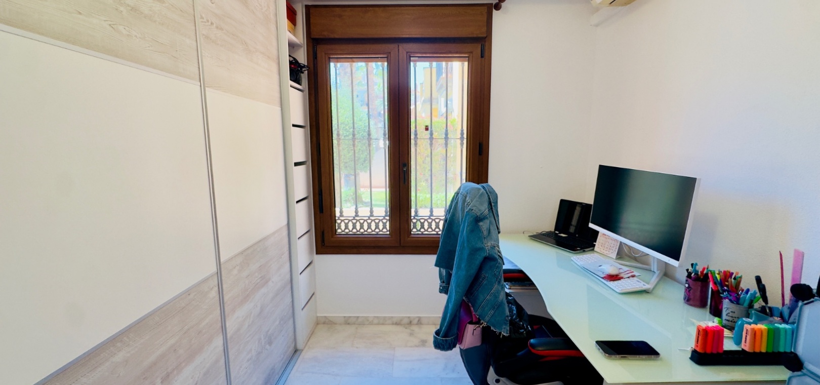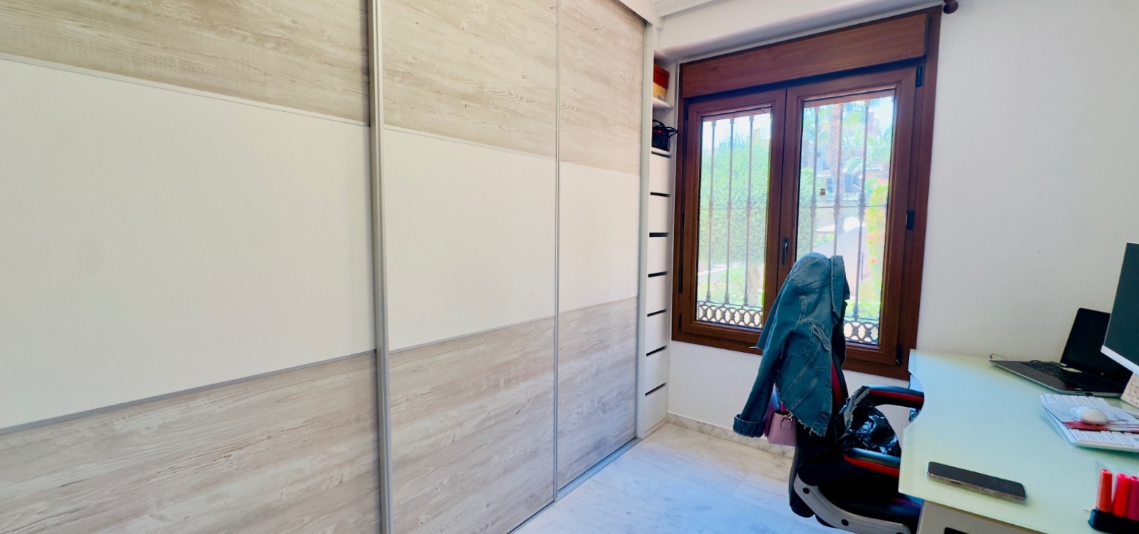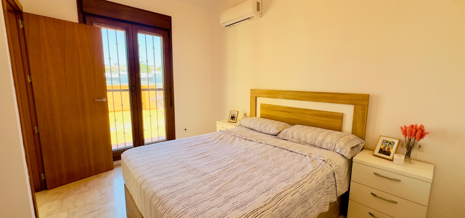 Erbaut im Jahr 2005, kürzlich renoviert für modernen Komfort Komplett möbliert mit Klimaanlage 3 Schlafzimmer, darunter ein renoviertes Dachgeschoss, das als Schlafzimmer, Büro oder Freizeitraum geeignet ist 2 Badezimmer Moderne, voll ausgestattete Küche Einbauschränke im gesamten Gebäude Privater Garten, Terrasse, Balkon und Solarium Privatparkplatz innerhalb der geschlossenen Wohnanlage Zugang zu einem Gemeinschaftspool
