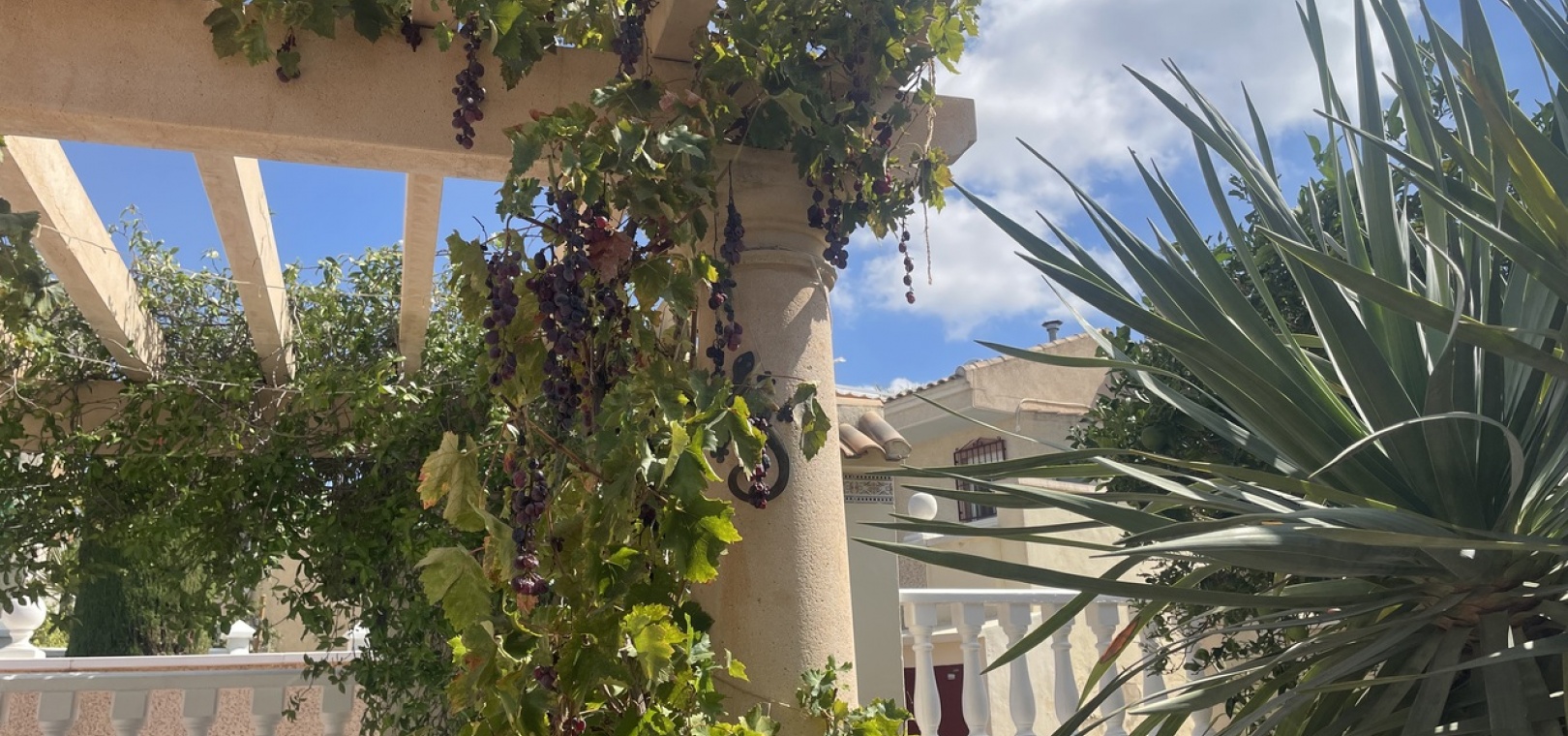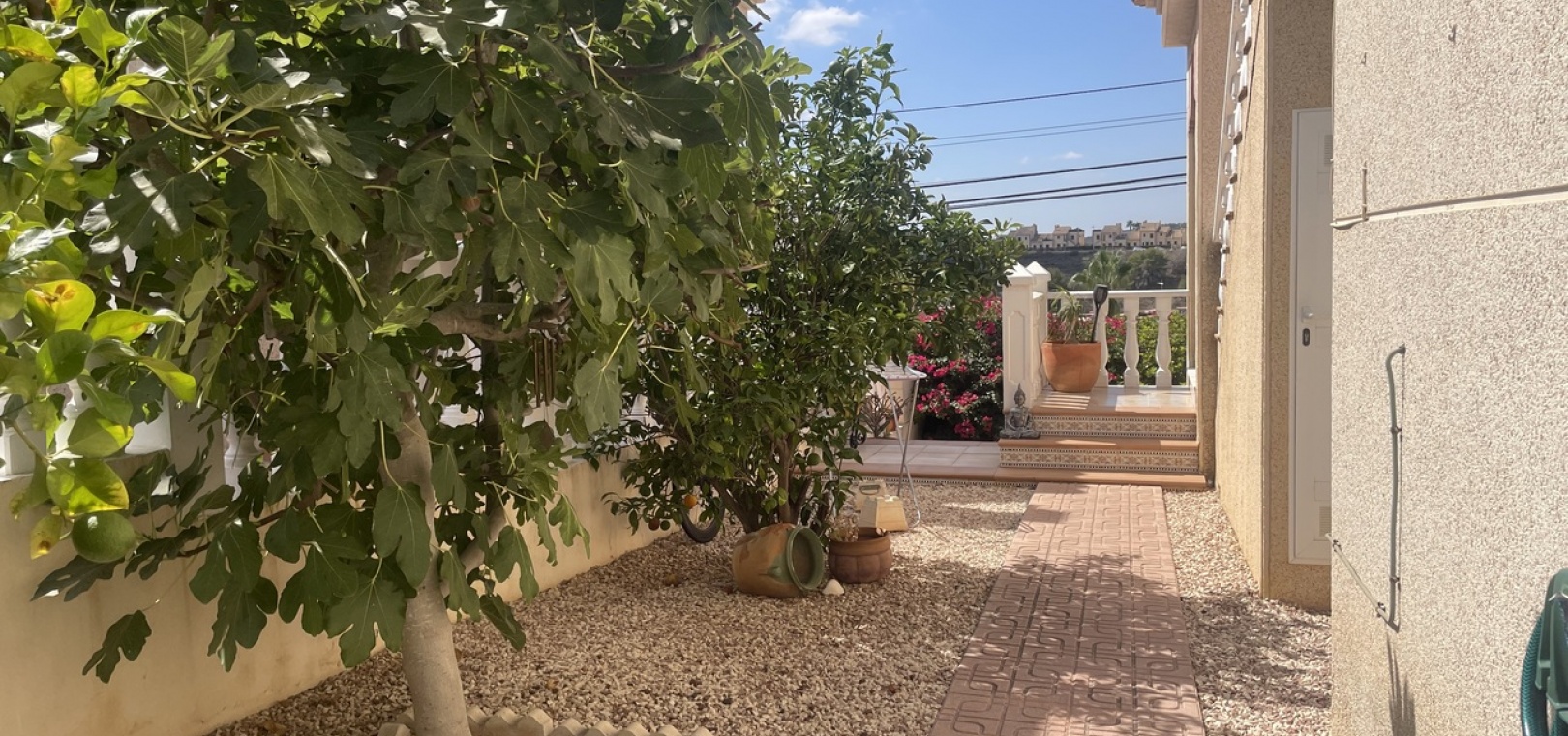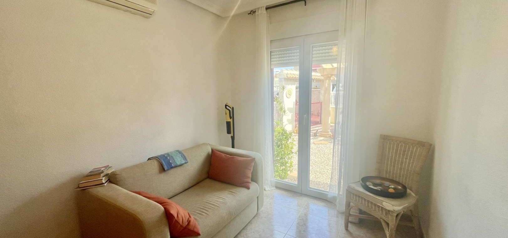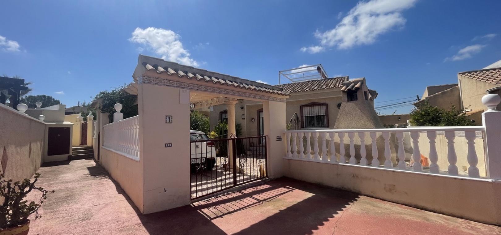 Charmante freistehende Villa mit 3 Schlafzimmern und 2 Bädern in der ruhigen Urbanisation Montesol in Algorfa. Das Anwesen liegt neben dem Gemeinschaftspool und bietet Parkplätze abseits der Straße sowie einen umlaufenden, pflegeleichten Garten mit Obstbäumen, Weinreben und einem eingebauten Grillplatz.