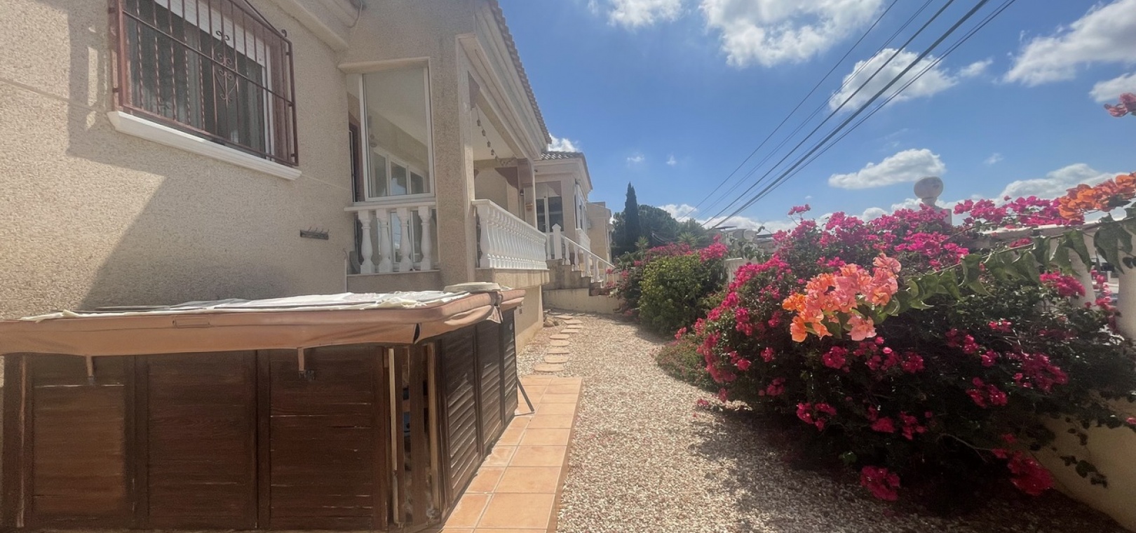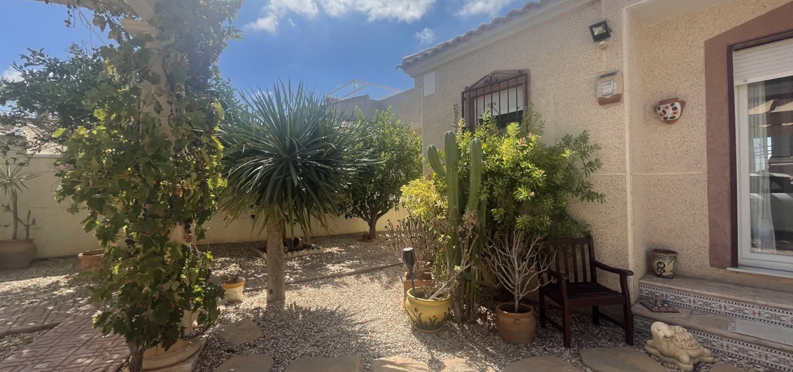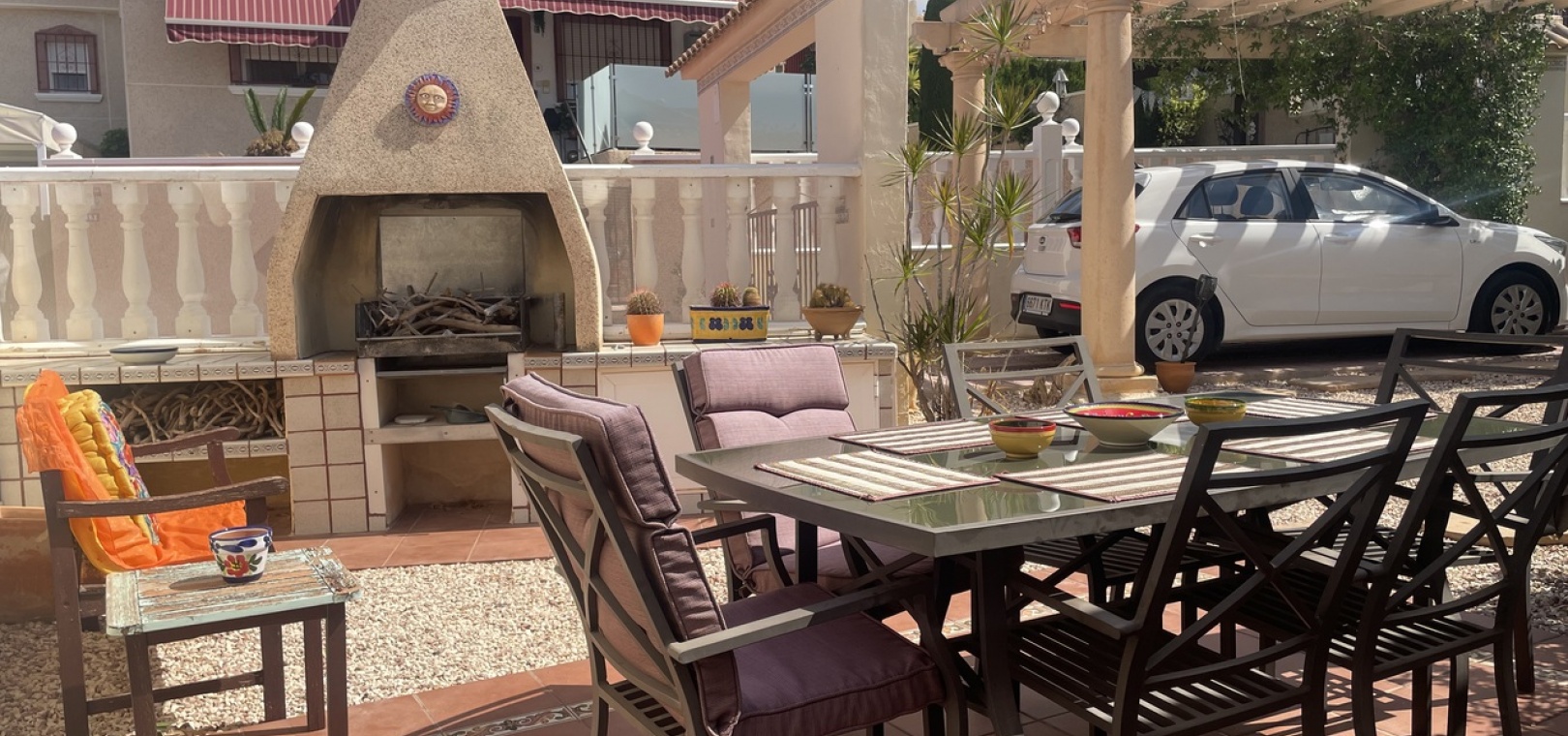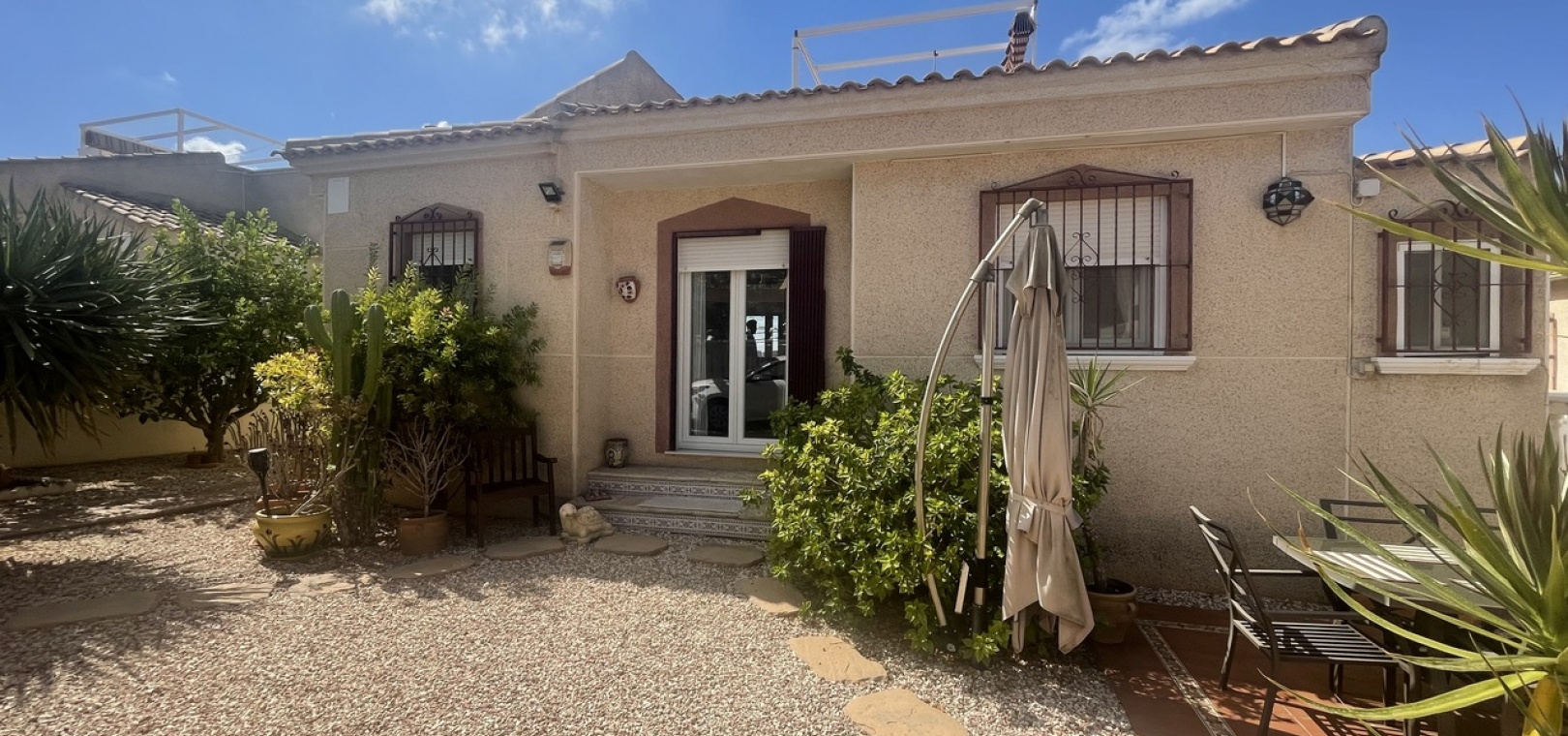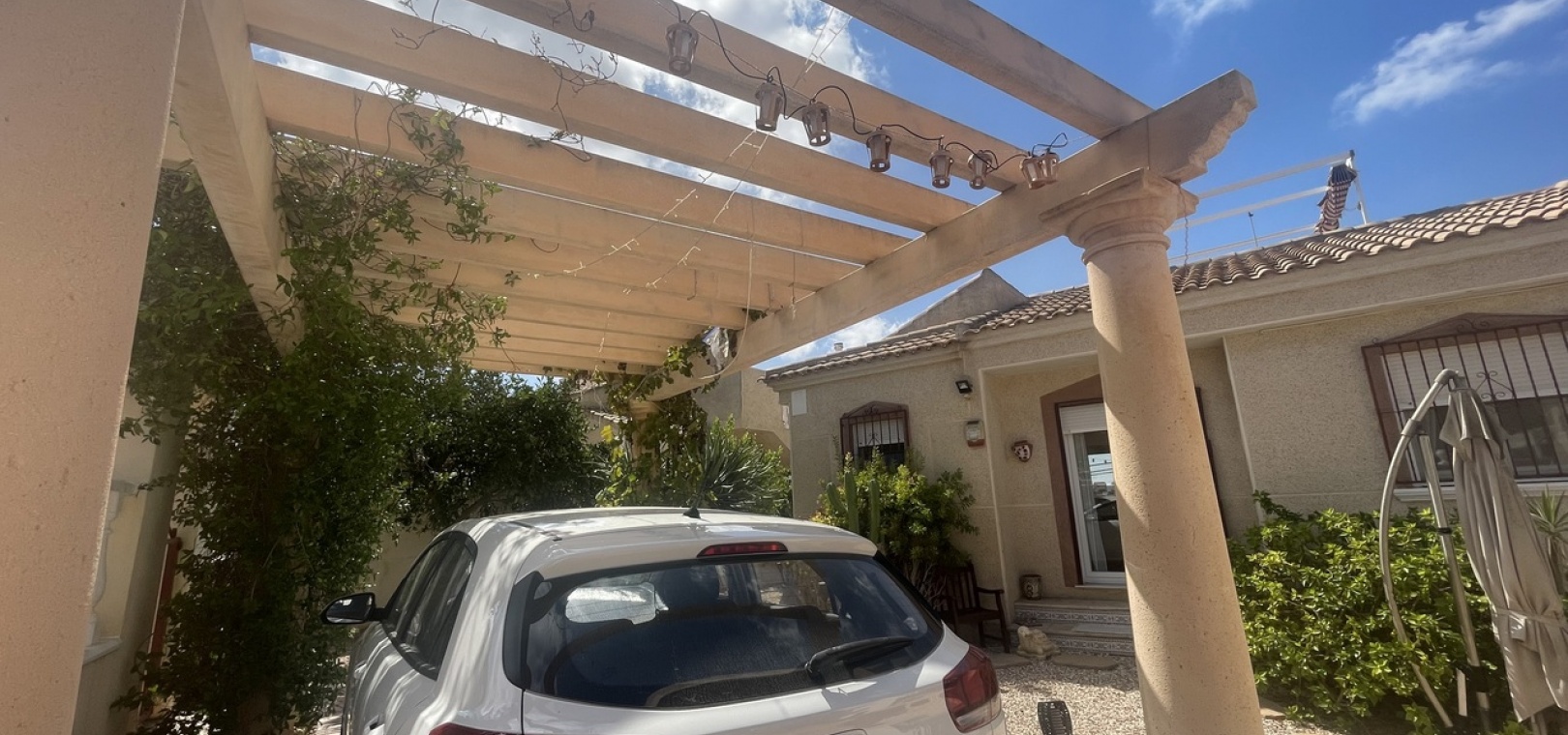 Charmante freistehende Villa mit 3 Schlafzimmern und 2 Bädern in der ruhigen Urbanisation Montesol in Algorfa. Das Anwesen liegt neben dem Gemeinschaftspool und bietet Parkplätze abseits der Straße sowie einen umlaufenden, pflegeleichten Garten mit Obstbäumen, Weinreben und einem eingebauten Grillplatz.