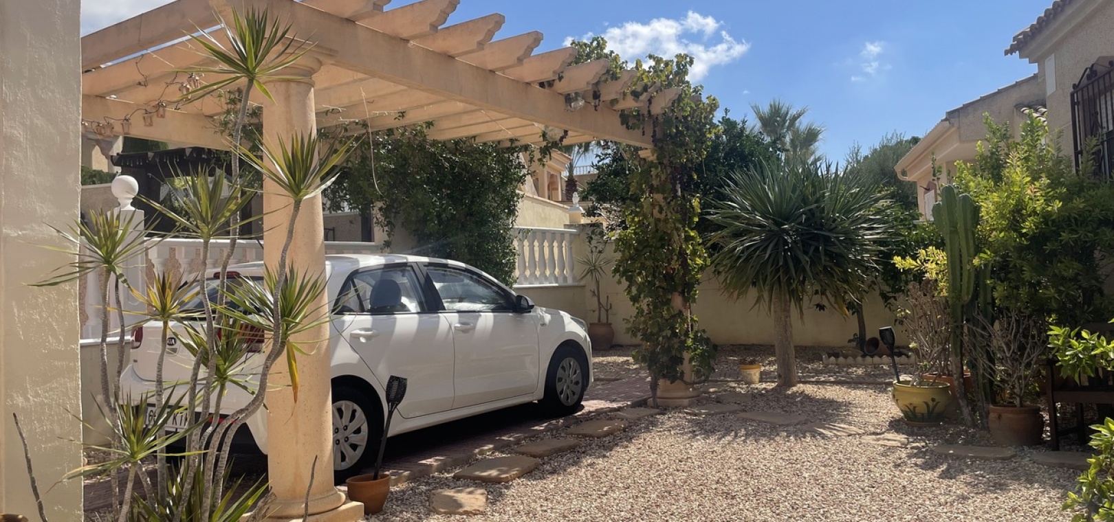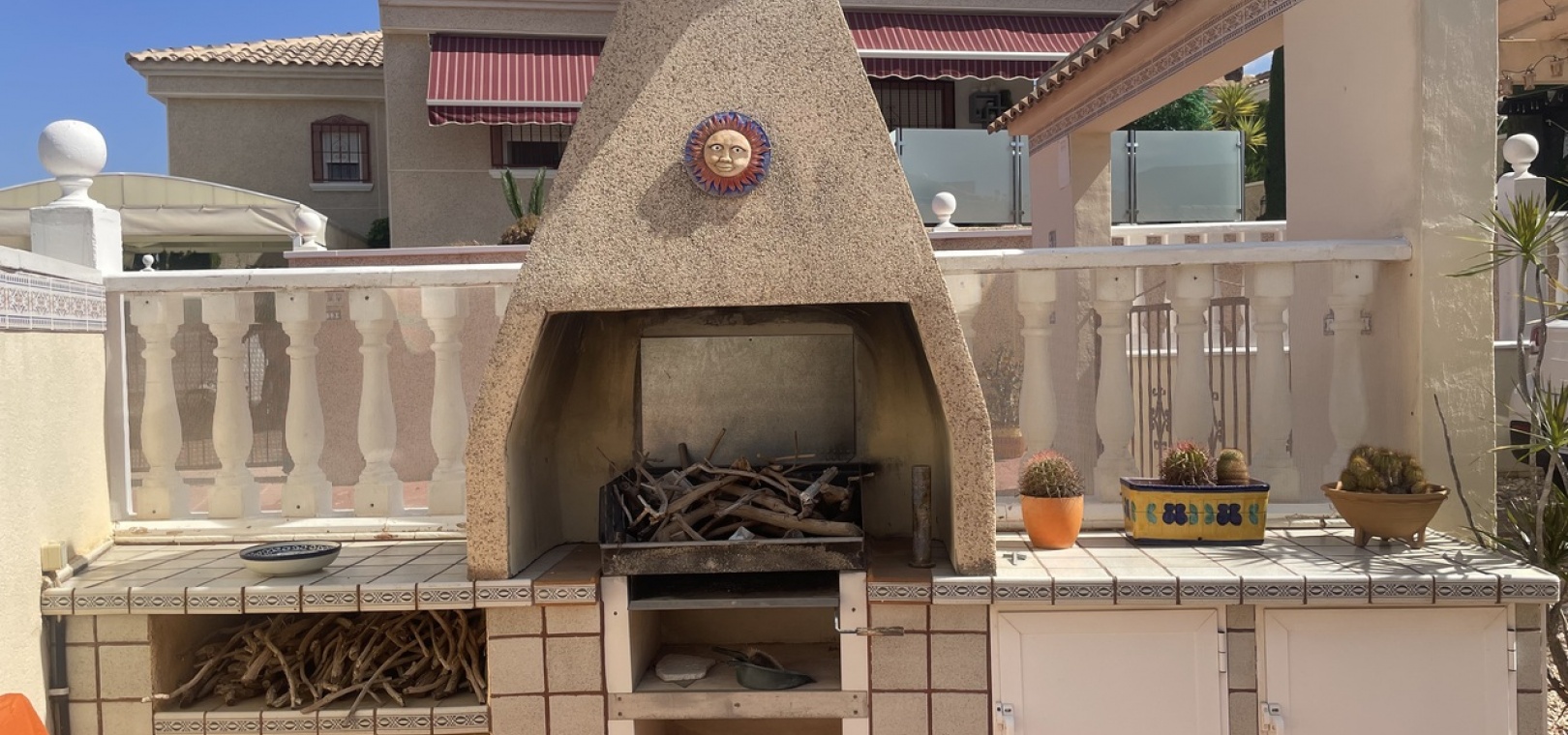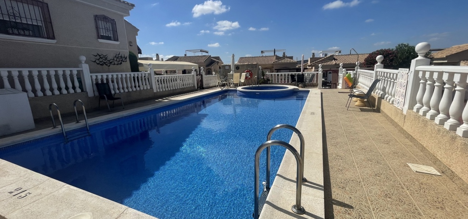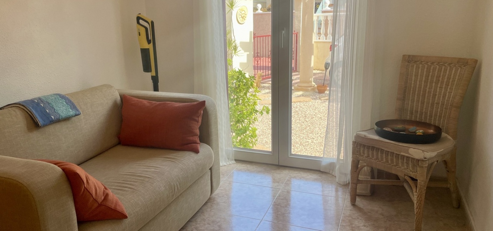 Charmante freistehende Villa mit 3 Schlafzimmern und 2 Bädern in der ruhigen Urbanisation Montesol in Algorfa. Das Anwesen liegt neben dem Gemeinschaftspool und bietet Parkplätze abseits der Straße sowie einen umlaufenden, pflegeleichten Garten mit Obstbäumen, Weinreben und einem eingebauten Grillplatz.