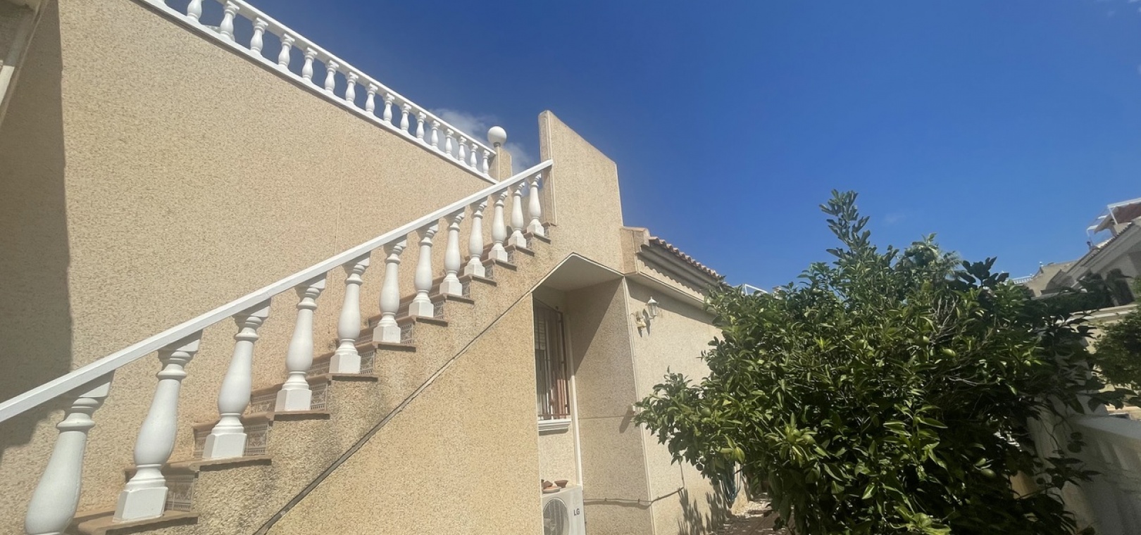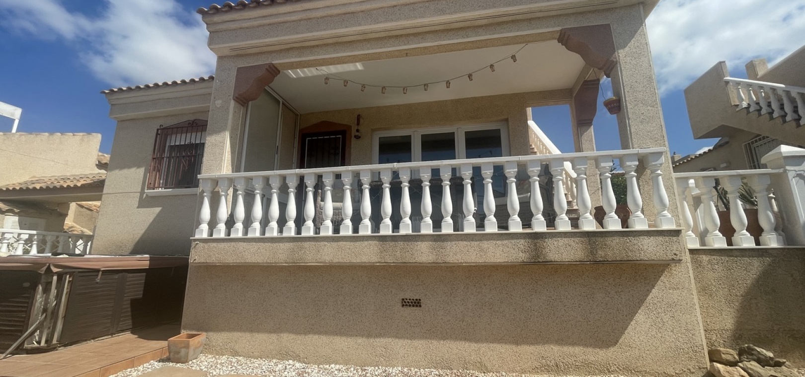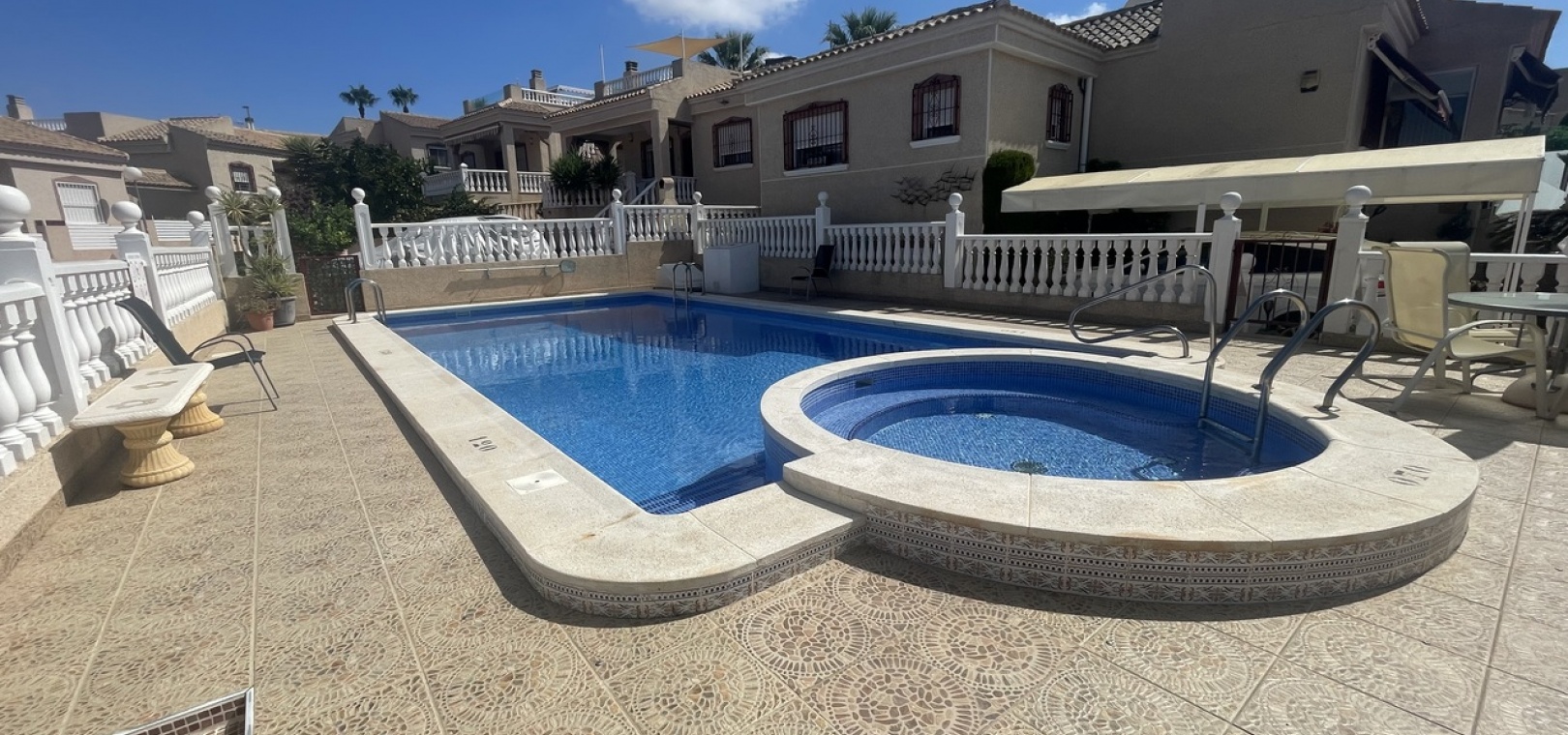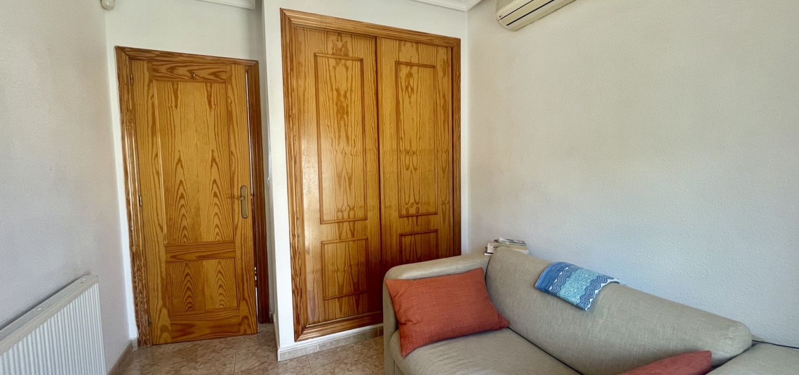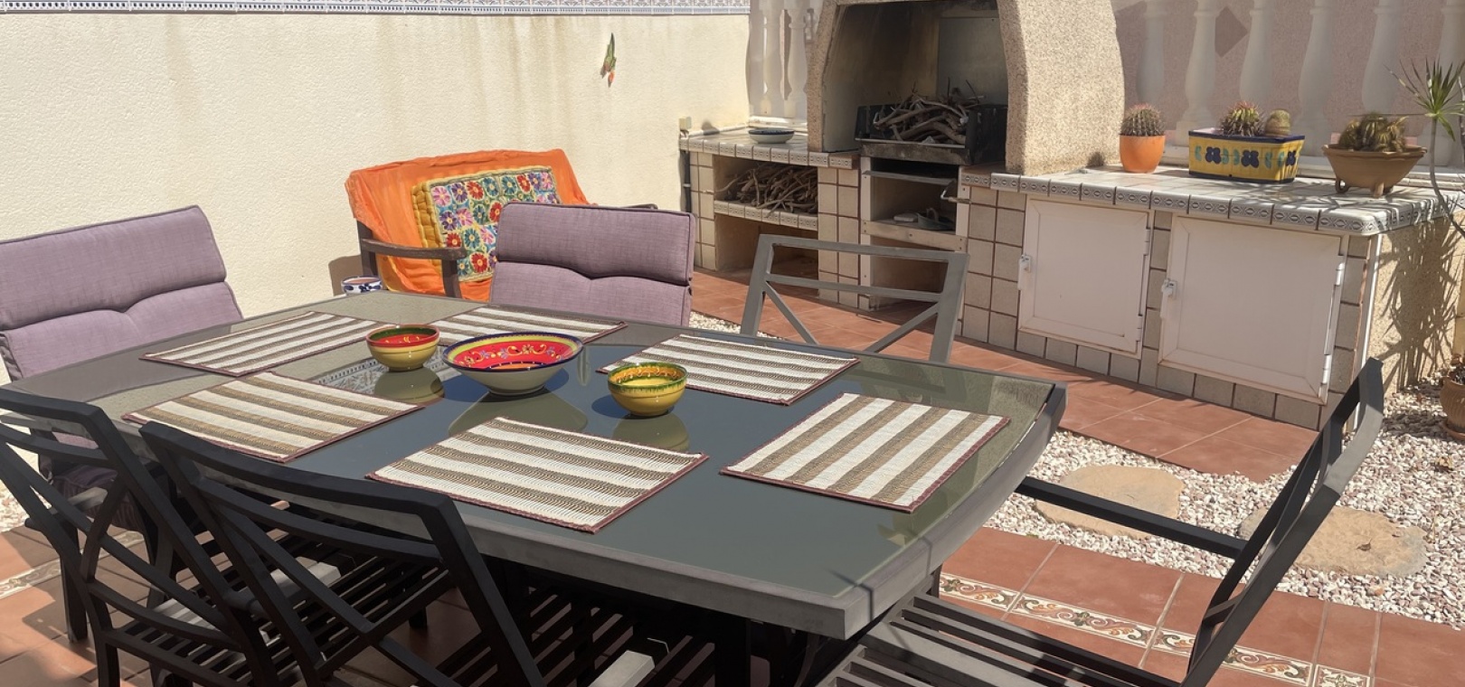 Charmante freistehende Villa mit 3 Schlafzimmern und 2 Bädern in der ruhigen Urbanisation Montesol in Algorfa. Das Anwesen liegt neben dem Gemeinschaftspool und bietet Parkplätze abseits der Straße sowie einen umlaufenden, pflegeleichten Garten mit Obstbäumen, Weinreben und einem eingebauten Grillplatz.