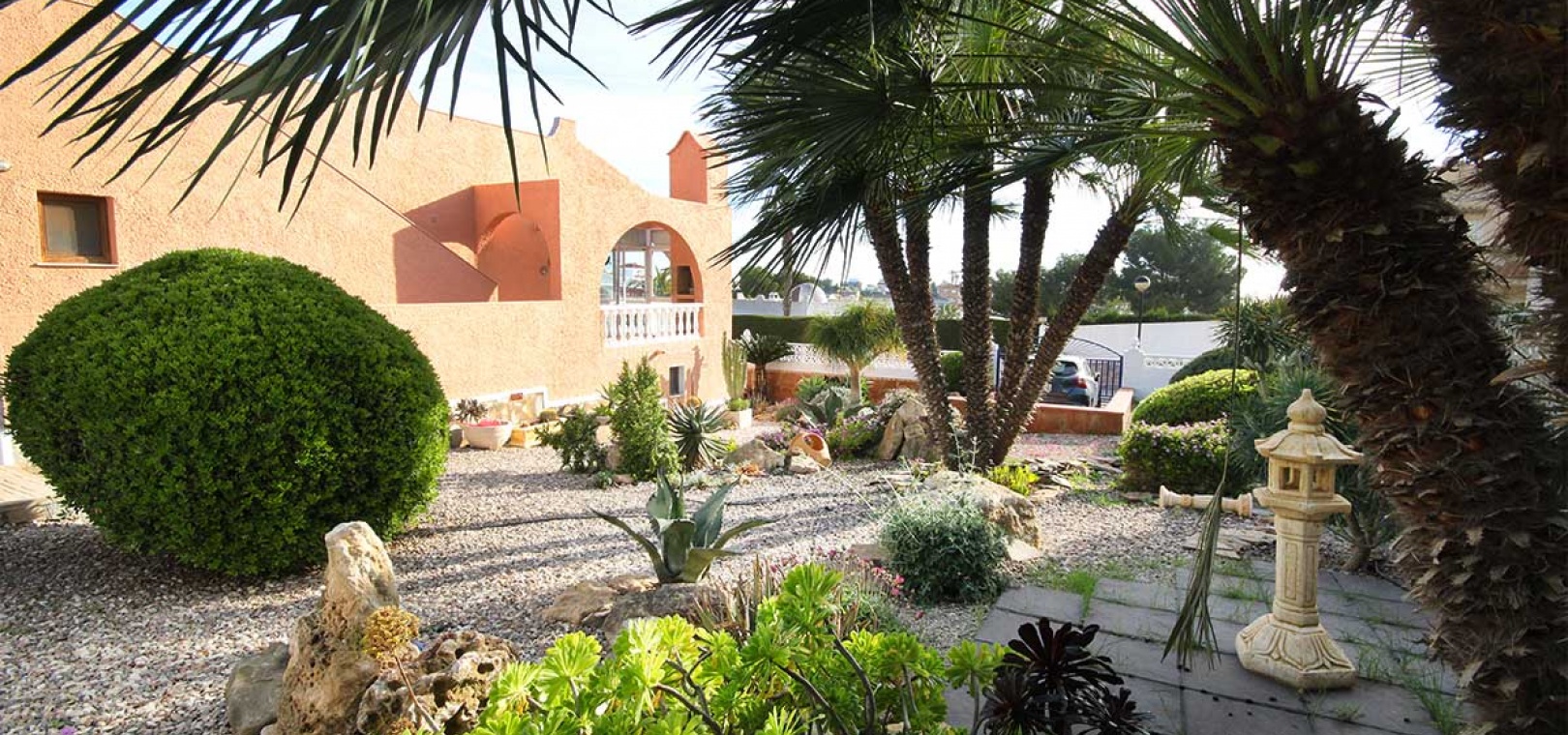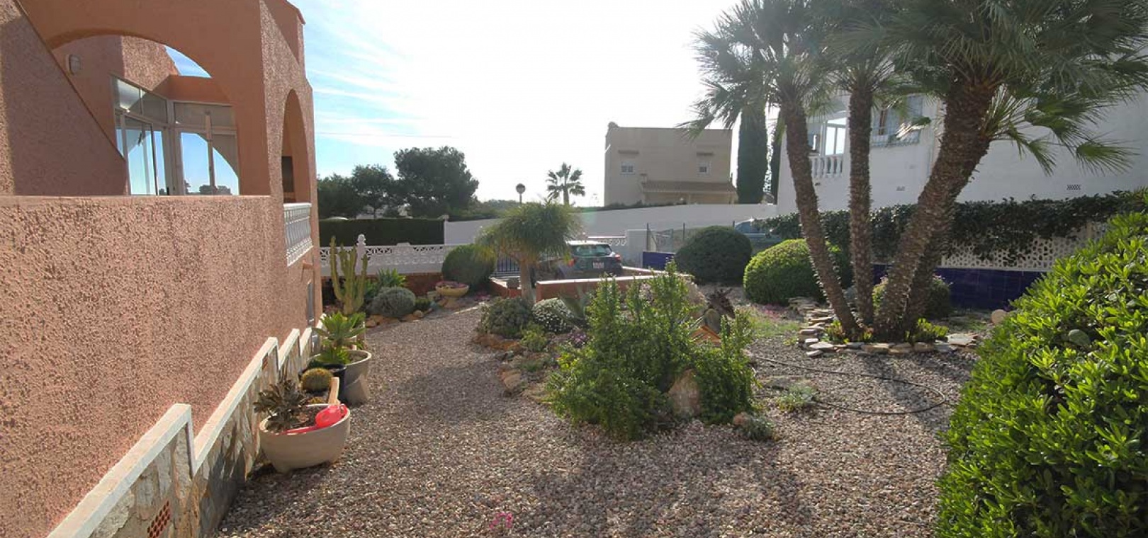 Das Anwesen verfügt zwar derzeit über keinen Pool, bietet aber ausreichend Platz, um bei Bedarf einen anzulegen. Auch die umliegenden Villen liegen auf großzügigen Grundstücken, wodurch ein angenehmes Gefühl von Weite und Privatsphäre entsteht.