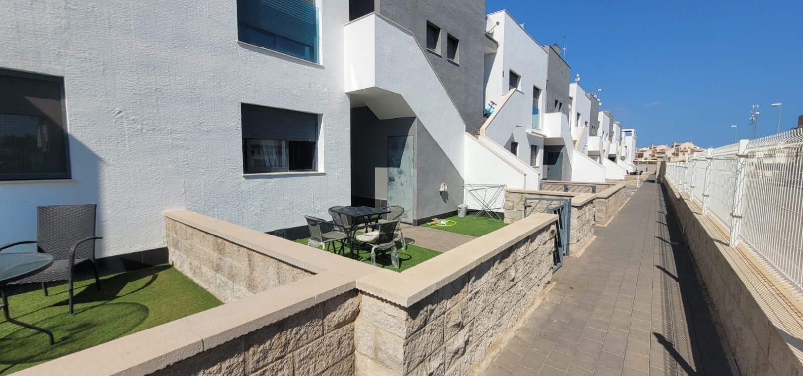 Die Lage ist einfach perfekt: Nur eine Gehminute vom Zenia Boulevard mit über 150 Geschäften, Restaurants und Freizeitmöglichkeiten entfernt; nur 20 Gehminuten zu den Stränden La Zenia und Playa Flamenca, die beide für ihren goldenen Sand und ihr kristallklares Wasser bekannt sind; und nur eine kurze Autofahrt zu drei renommierten Golfplätzen – Villamartín, Las Ramblas und Campoamor. Darüber hinaus besteht eine gute Anbindung an Supermärkte, Wochenmärkte und die Flughäfen von Alicante und Murcia, die über die Autobahn AP-7 in nur 45 Minuten erreichbar sind.
