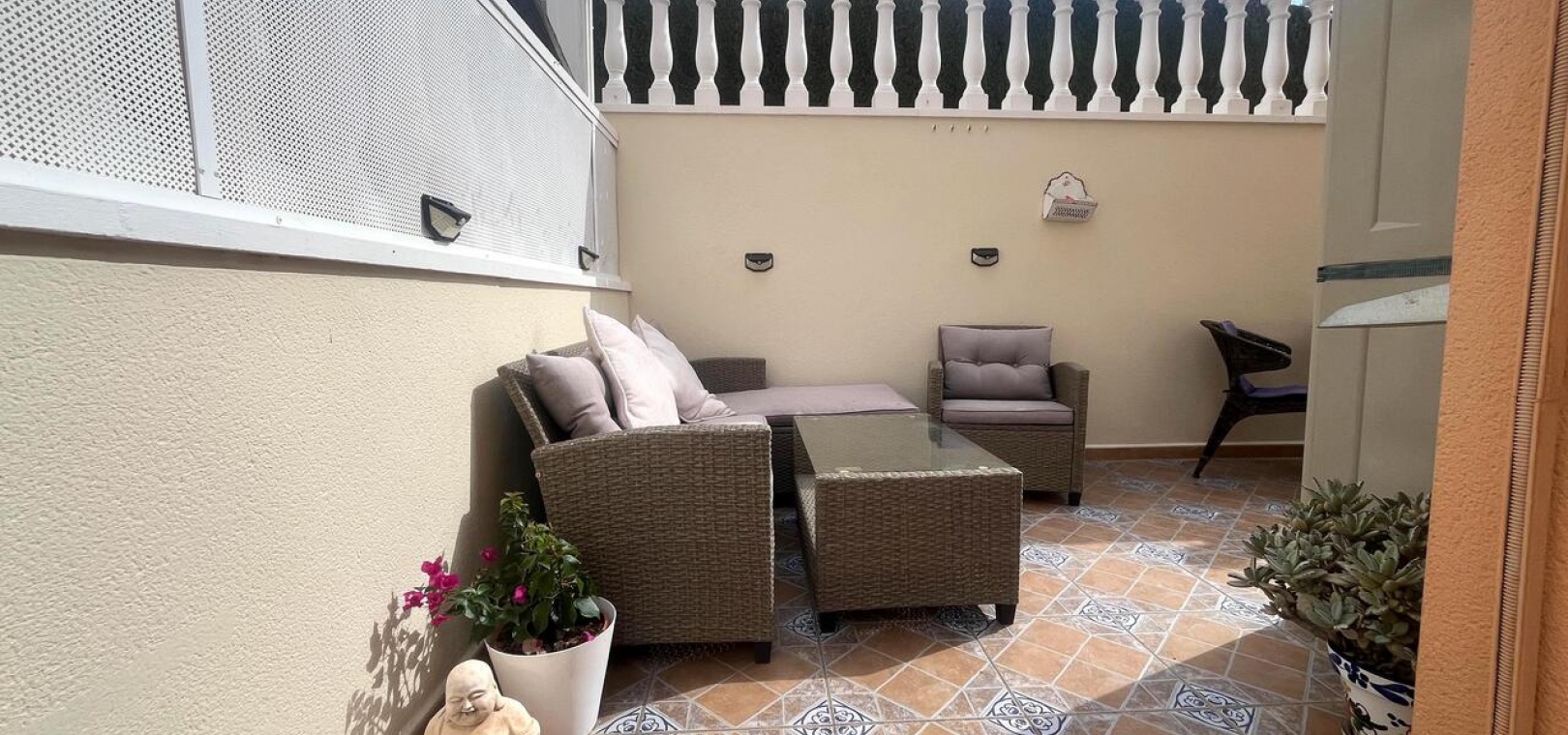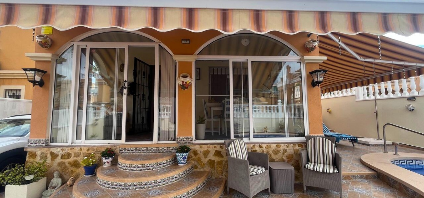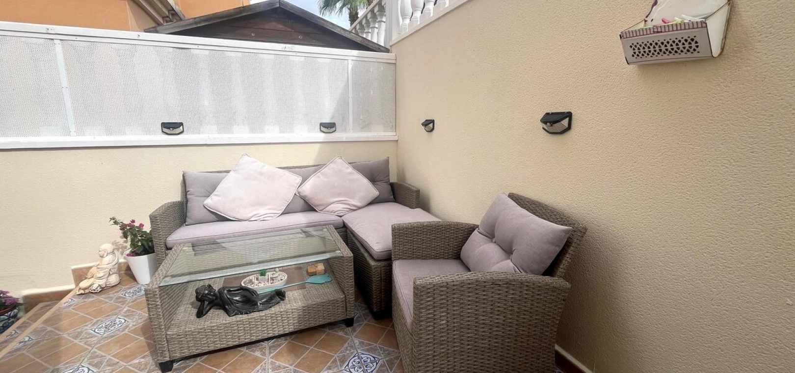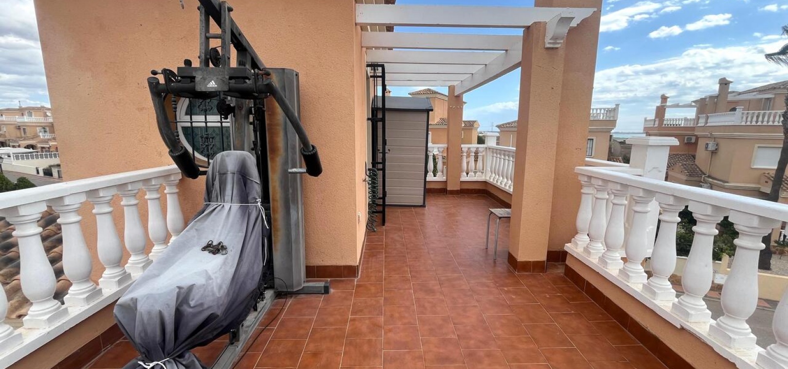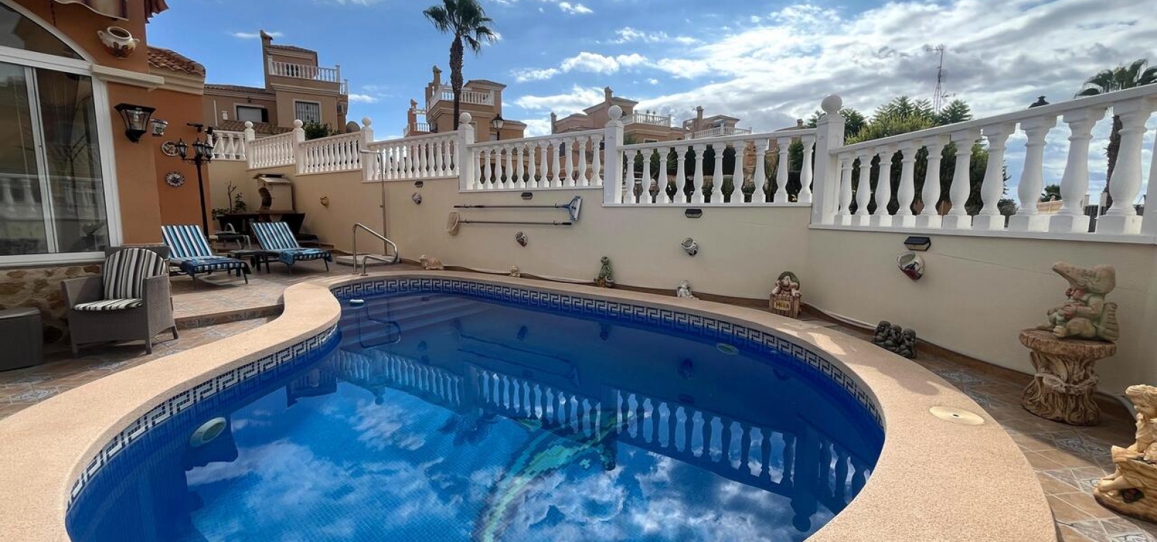 Der umlaufende Garten ist pflegeleicht und komplett gefliest und verfügt über einen privaten Swimmingpool, einen separaten Grillplatz sowie elektrische Markisen, die auf Knopfdruck angenehmen Schatten spenden. Dieser traumhafte Außenbereich ist perfekt zum Entspannen, für gesellige Stunden oder einfach zum Genießen der spanischen Sonne.