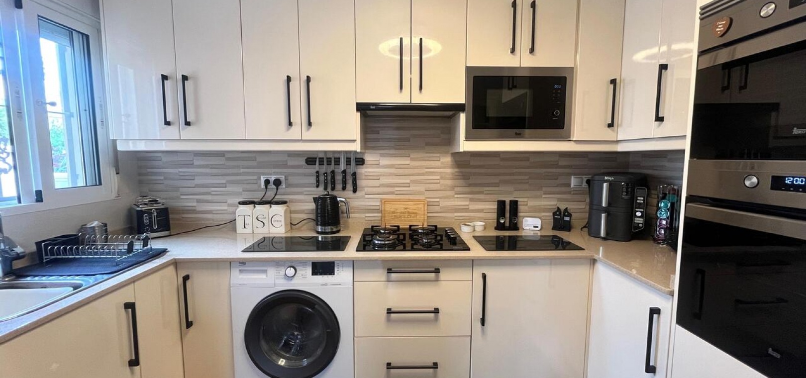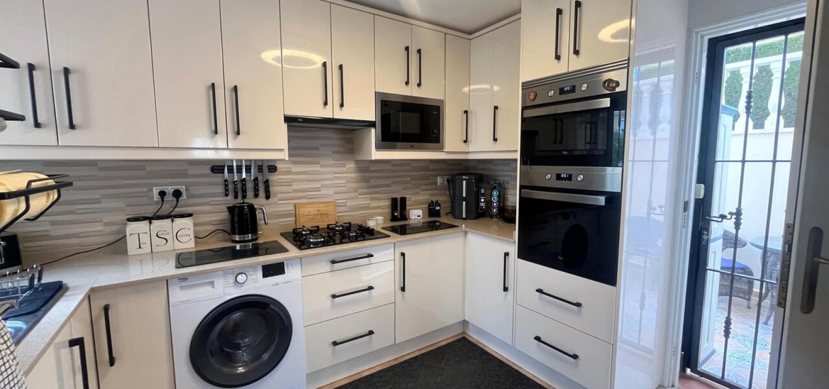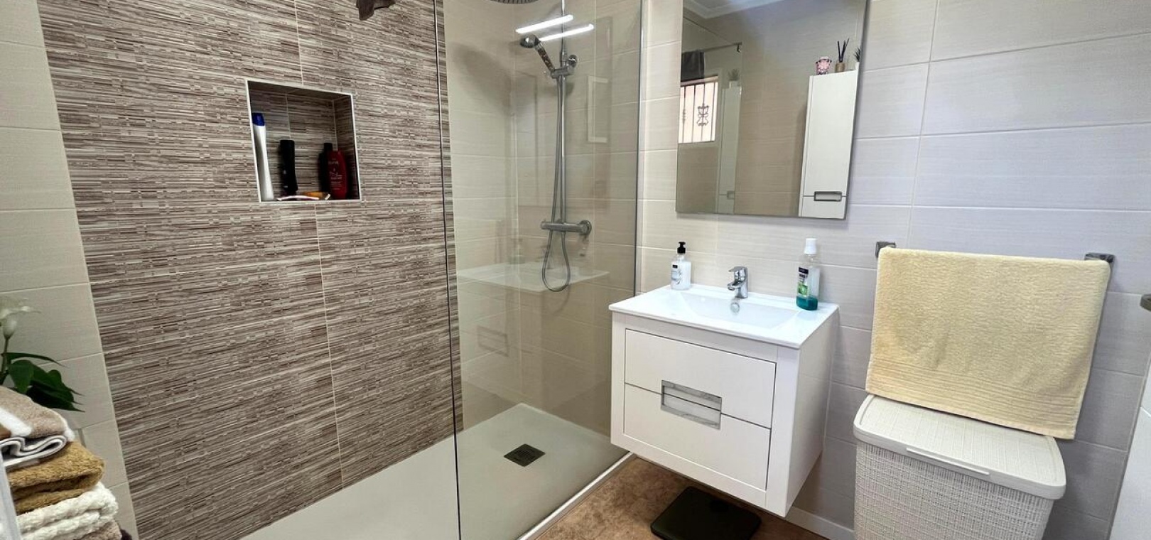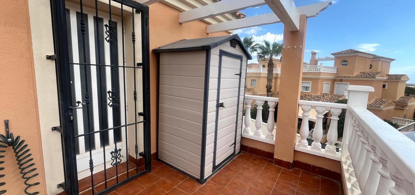 Der umlaufende Garten ist pflegeleicht und komplett gefliest und verfügt über einen privaten Swimmingpool, einen separaten Grillplatz sowie elektrische Markisen, die auf Knopfdruck angenehmen Schatten spenden. Dieser traumhafte Außenbereich ist perfekt zum Entspannen, für gesellige Stunden oder einfach zum Genießen der spanischen Sonne.