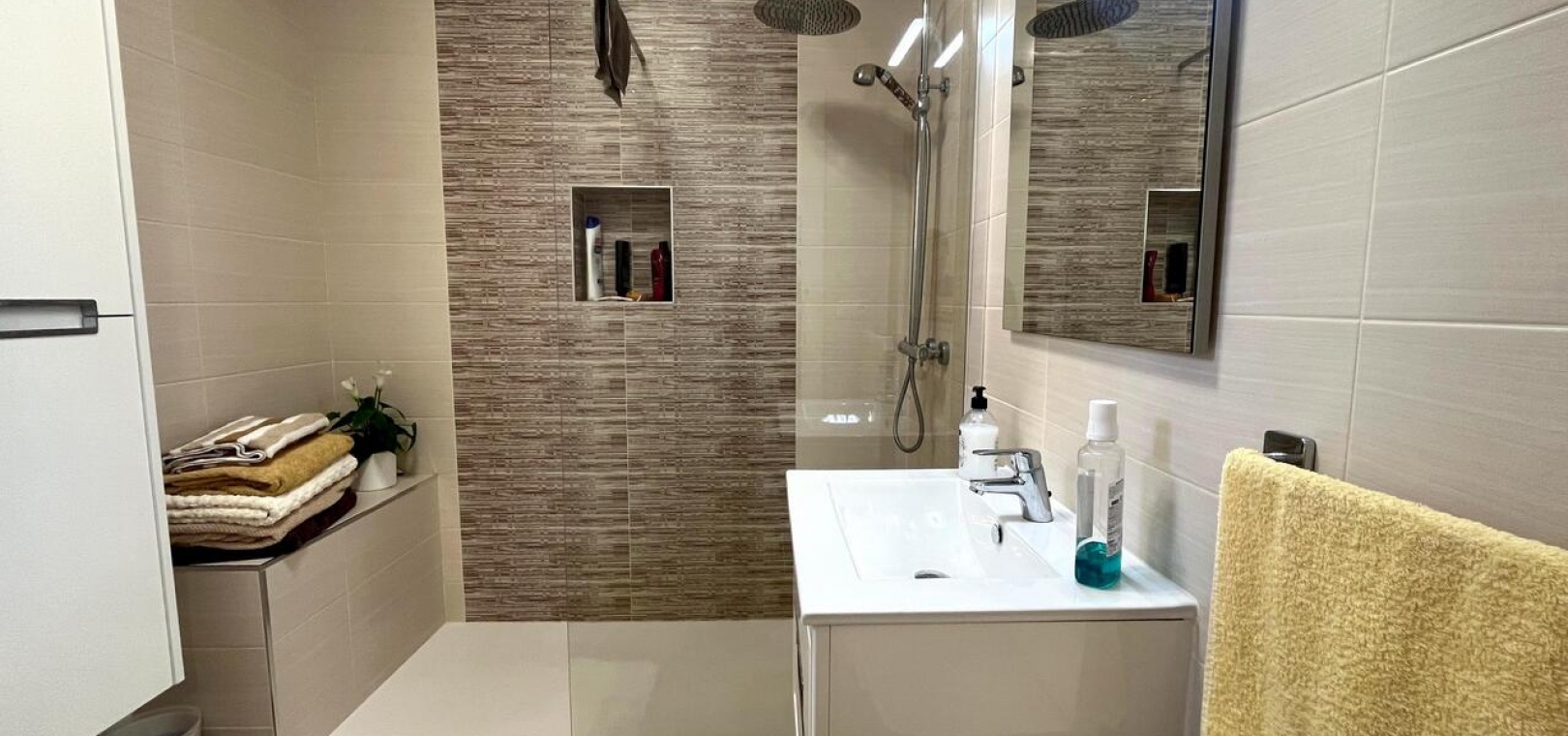 Im Obergeschoss befinden sich zwei weitere Doppelzimmer und ein renoviertes Badezimmer. Beide Schlafzimmer bieten direkten Zugang zu einer großzügigen Sonnenterrasse – ein idealer Ort für den Morgenkaffee oder zum Entspannen am Abend.