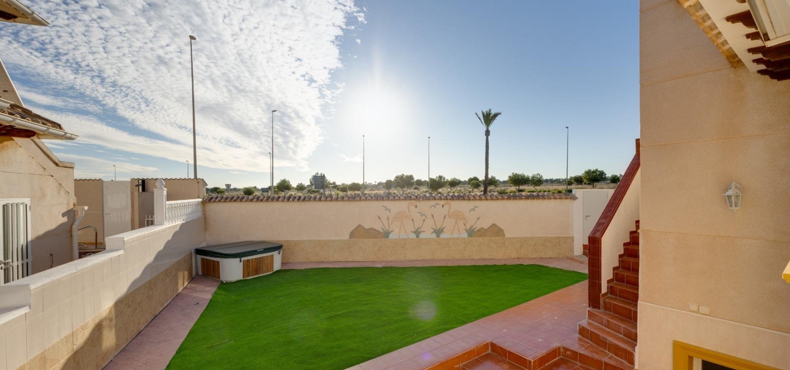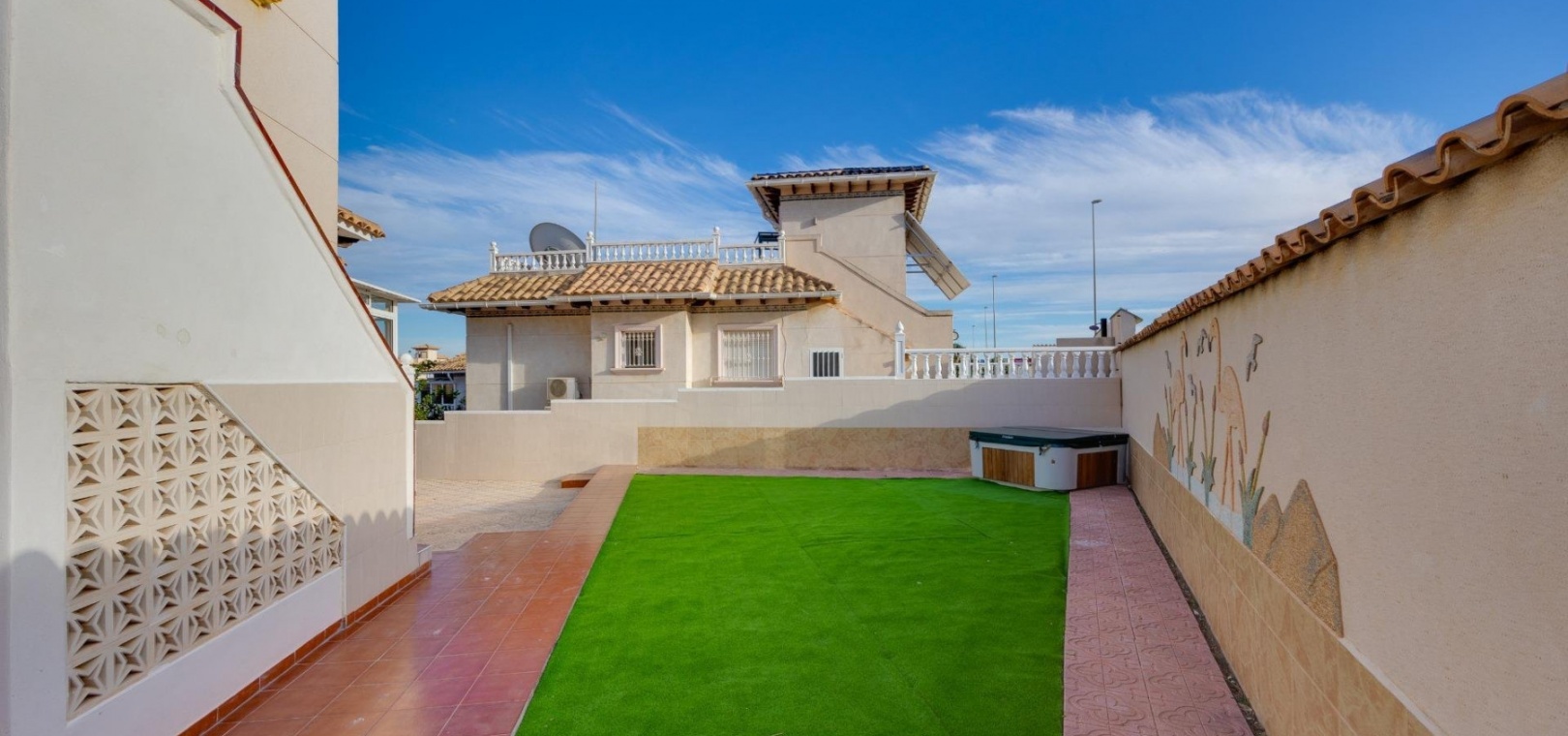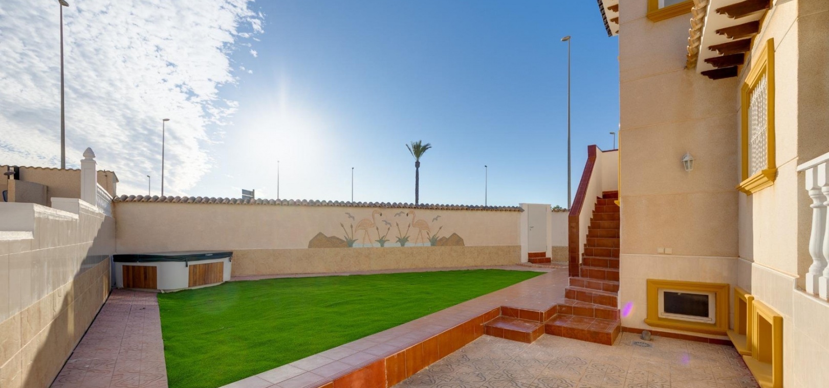 Diese stilvolle, komplett renovierte Villa besticht durch modernes Design, außergewöhnlich viel Tageslicht und eine unschlagbare Lage nur wenige Schritte vom Boulevard La Zenia entfernt. Auf einem großzügigen 250 m² großen Grundstück gelegen, verfügt das Anwesen über einen weitläufigen Garten mit Whirlpool und ist bestens für den Bau eines privaten Pools vorbereitet, wie es bereits viele Nachbarhäuser getan haben.