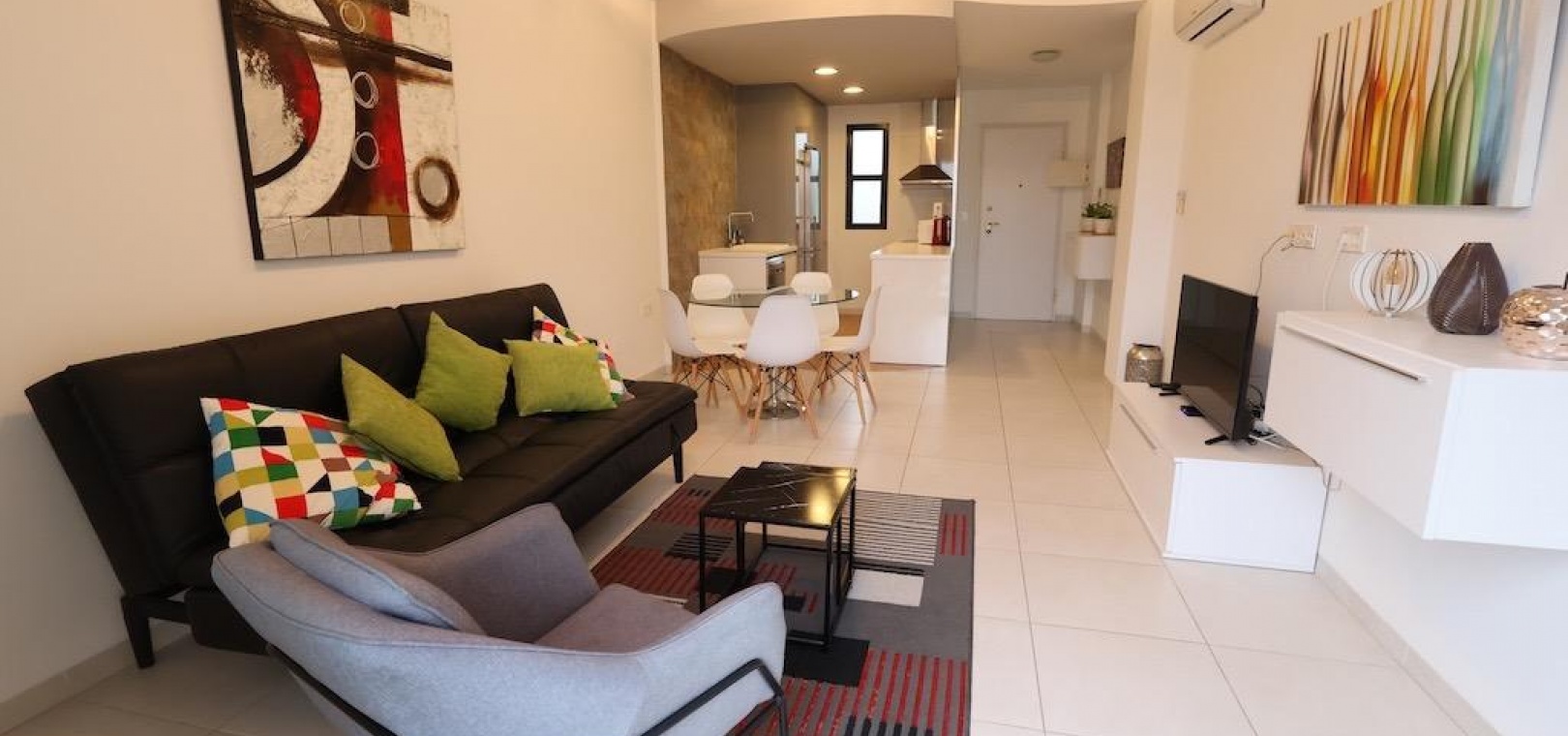 Diese 77 m² große, nach Süden ausgerichtete Wohnung verfügt über zwei Schlafzimmer, eines davon mit eigenem Bad, sowie zwei Badezimmer. Sie bietet einen großzügigen Wohn- und Essbereich, eine offene Küche und eine private Terrasse. Die Wohnung wird komplett möbliert und mit Klimaanlage ausgestattet verkauft und bietet somit Komfort und Bequemlichkeit vom ersten Tag an.