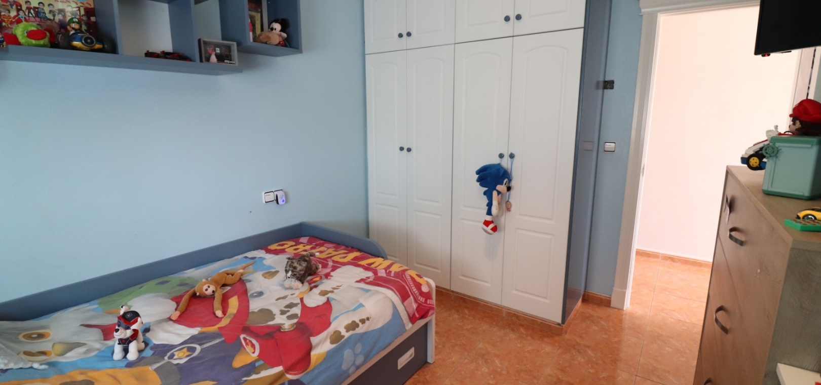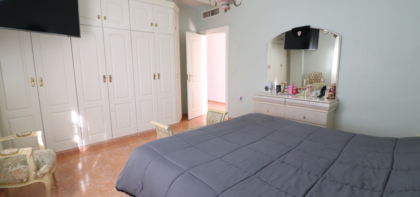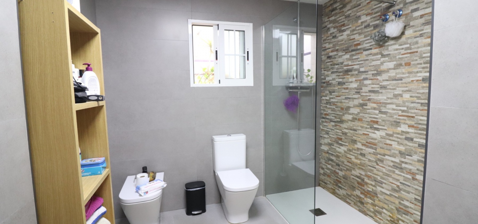 Die Unterkunft umfasst drei Doppelzimmer , von denen zwei über Einbauschränke verfügen, sowie ein modernes Familienbadezimmer mit ebenerdiger Dusche. Eine Klimaanlage sorgt im gesamten Haus für ganzjährigen Komfort.