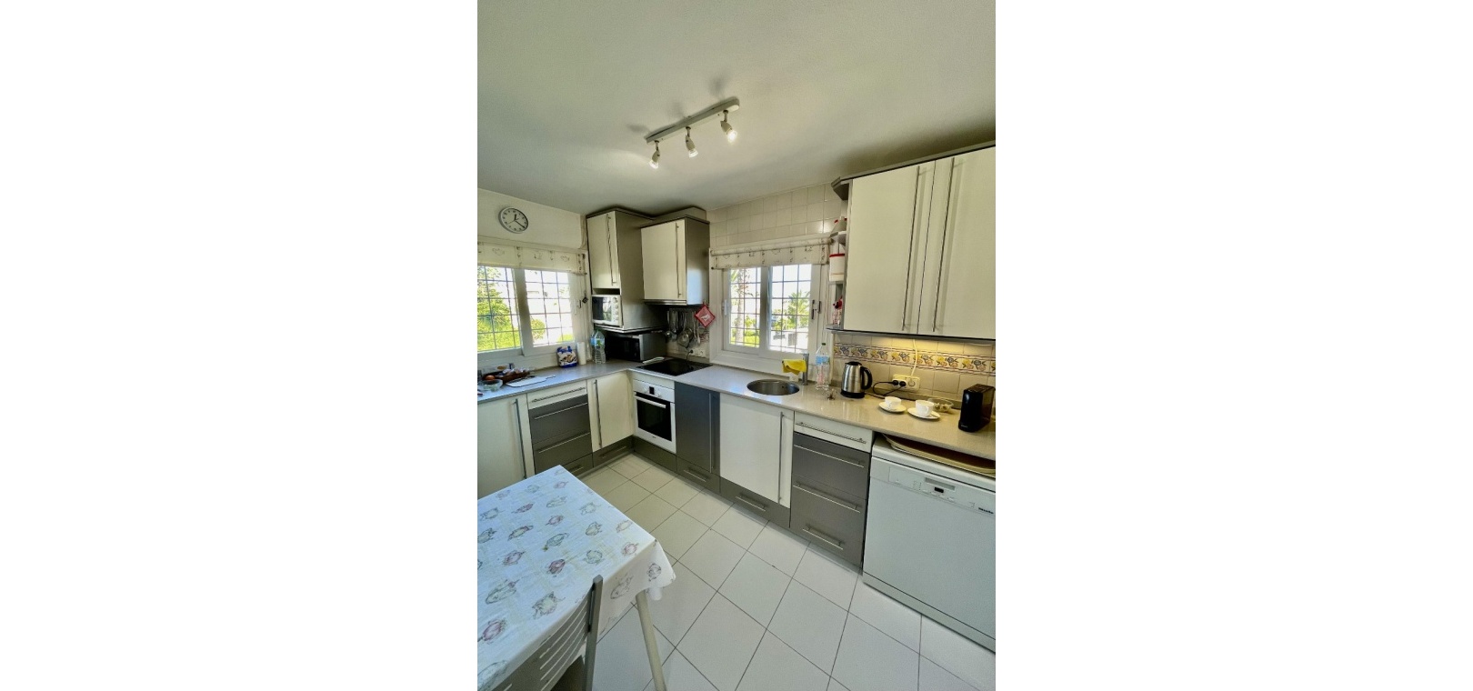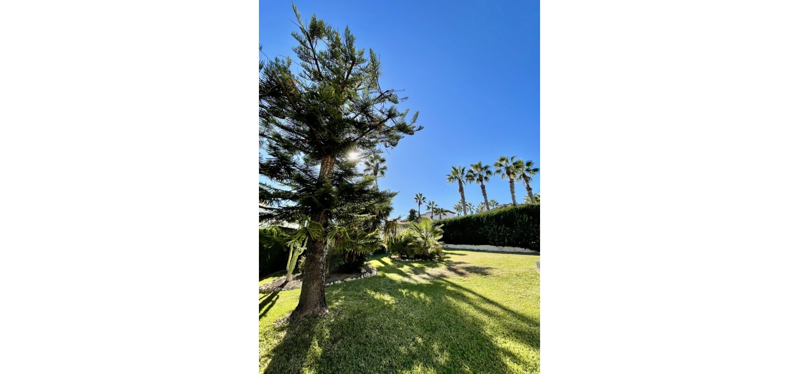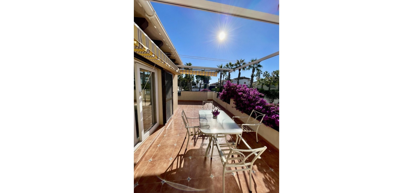 Die Villa verfügt über eine bebaute Fläche von 140 m² und wird durch außergewöhnlich geräumige Terrassen ergänzt, darunter eine komplett überdachte Terrasse mit eingebautem Grill – ideal für Mahlzeiten im Freien und schattiges Wohnen im Sommer.