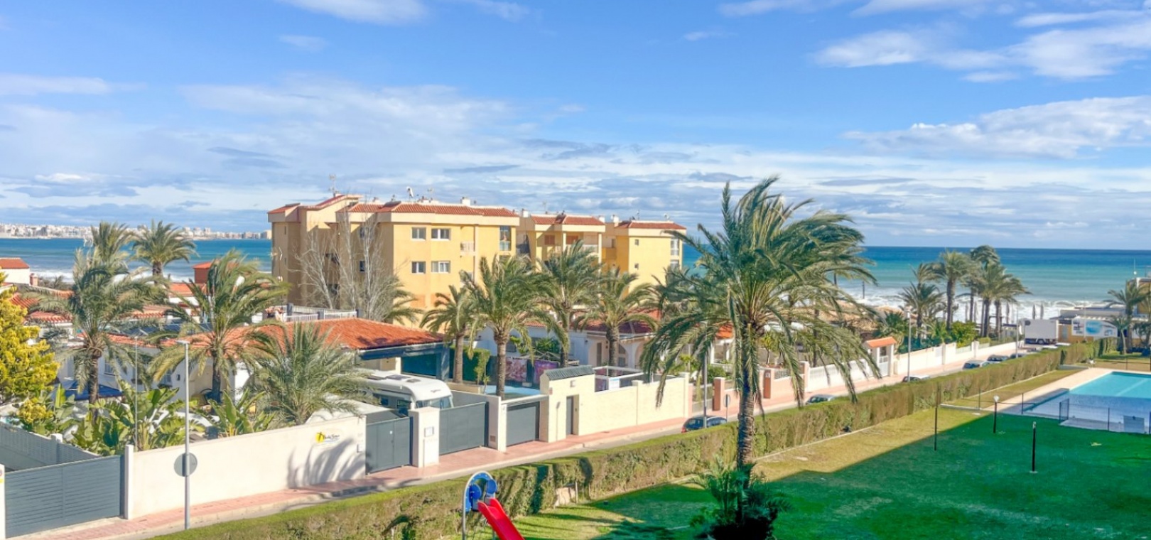 Dieses modernisierte Apartment mit drei Schlafzimmern befindet sich im Edificio Nautilus II, einer der bekanntesten Wohnanlagen an der Küste von Punta Prima, nur wenige Gehminuten vom Strand Cala Piteras und dem beliebten Restaurant Nautilus entfernt. Die Lage bietet die ideale Kombination aus Strandleben und alltäglichen Annehmlichkeiten in einer etablierten Gegend der Orihuela Costa.
