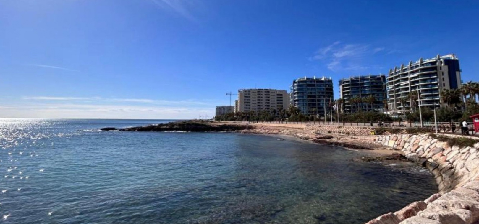 Der Strand Cala Piteras ist nur wenige Schritte entfernt und bekannt für sein ruhiges Wasser und die malerischen Küstenwege, die zur Promenade von Torrevieja führen. Supermärkte, Cafés, öffentliche Verkehrsmittel und andere Geschäfte des täglichen Bedarfs befinden sich in unmittelbarer Nähe und ermöglichen ein unkompliziertes Leben ohne Auto.