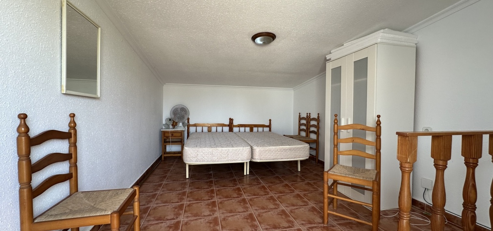 Im Obergeschoss befindet sich ein zweites Gästezimmer mit direktem Zugang zum Solarium, das einen weiteren Meerblick und einen privaten Außenbereich zum Entspannen oder für gesellige Stunden bietet. Das Haus ist komplett klimatisiert und verfügt über einen Abstellraum im Erdgeschoss sowie einen Tiefgaragenstellplatz.