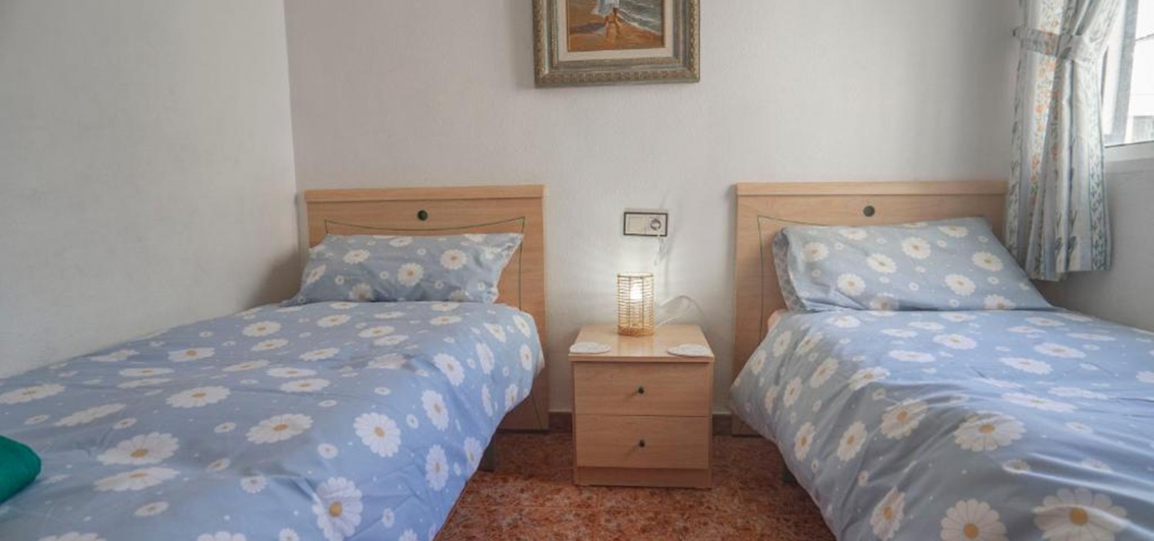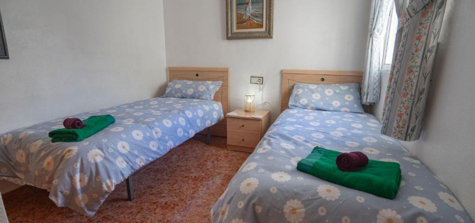 Beide Schlafzimmer sind geschmackvoll eingerichtet und verfügen über Einbauschränke . Das Hauptschlafzimmer bietet ein komfortables Doppelbett, während das zweite Schlafzimmer mit zwei Einzelbetten ideal für Gäste oder Familie ist. Ein gut ausgestattetes Familienbad mit Badewanne befindet sich praktischerweise zwischen den beiden Schlafzimmern.
