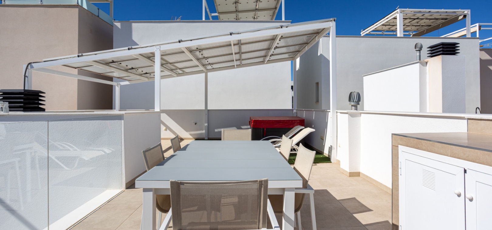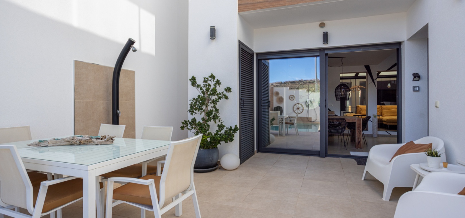 In einem der begehrtesten und am schnellsten wachsenden Dörfer der Costa Blanca gelegen, bietet dieses stilvolle Reihenhaus aus dem Jahr 2018 die perfekte Kombination aus modernem Komfort, Ruhe und praktischer Lebensqualität. Direkt an einen geschützten Park gelegen, bietet das Anwesen einen unverbaubaren Panoramablick ohne geplante Neubauten – ein immer seltener werdendes Privileg.