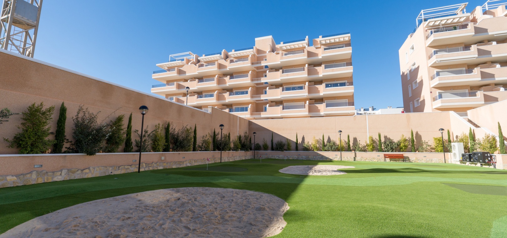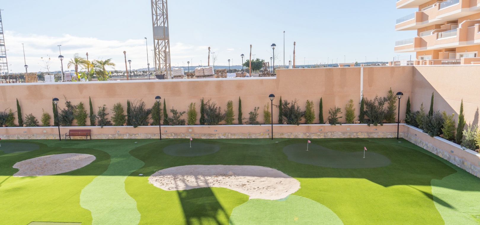 Diese Wohnanlage verfügt über großzügige Gemeinschaftsbereiche, in denen Sie sich im großen Sommerpool oder im beheizten Whirlpool entspannen können. Kinder können sich im "Vista Park" austoben, und es gibt einen Fitnessbereich mit bio-gesunden Geräten sowie ein "Putting Green Golf" zum Üben des Golfschwungs – alles in einer geschlossenen Anlage mit großen und gepflegten Grünflächen, die allen zur Verfügung stehen.