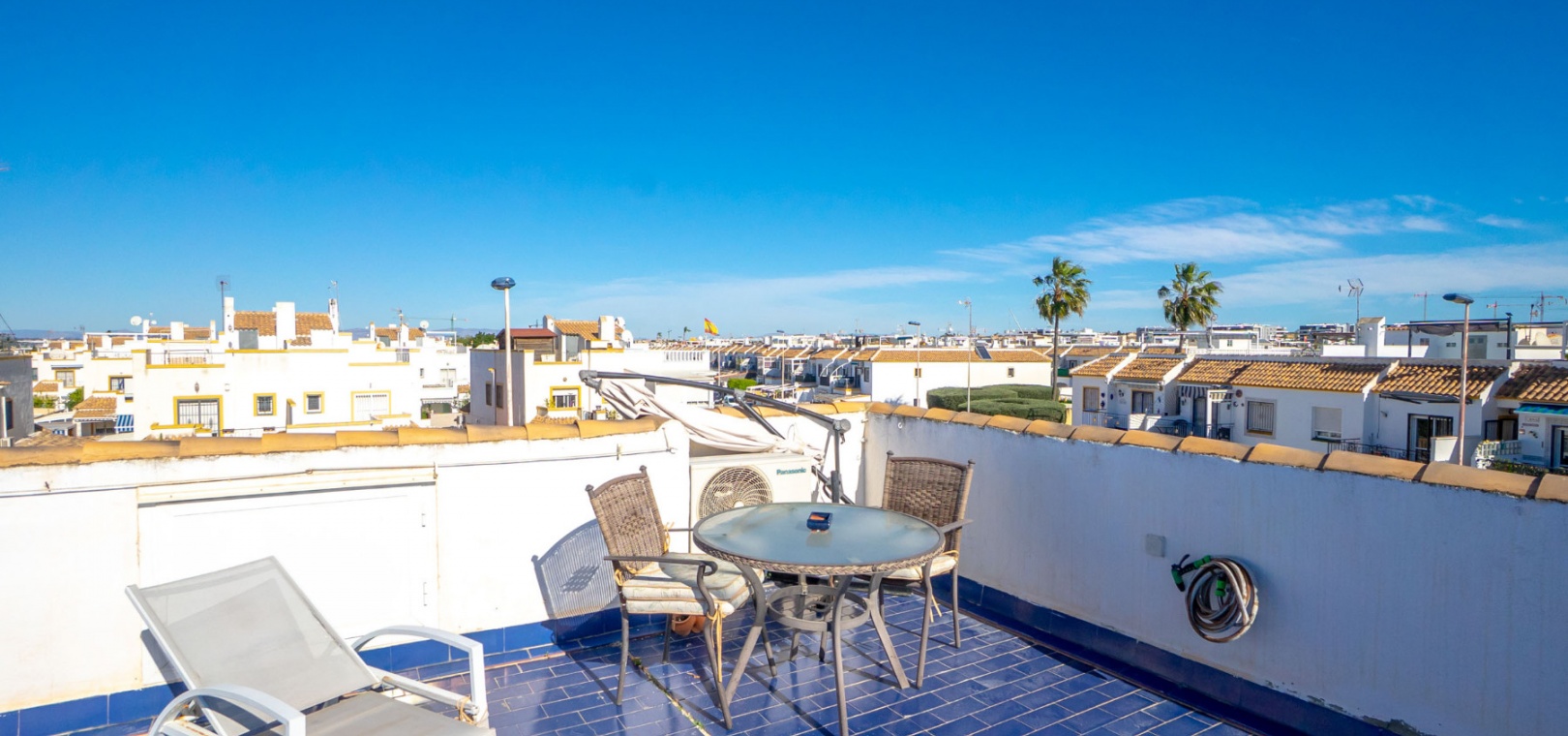 Dieses ansprechend gestaltete Dachgeschossapartment mit 2 Schlafzimmern und 1 Badezimmer befindet sich in begehrter Westlage im beliebten Viertel Jardín del Mar von Torrevieja und bietet den ganzen Nachmittag und Abend über Sonnenschein – perfekt, um das mediterrane Klima zu genießen.