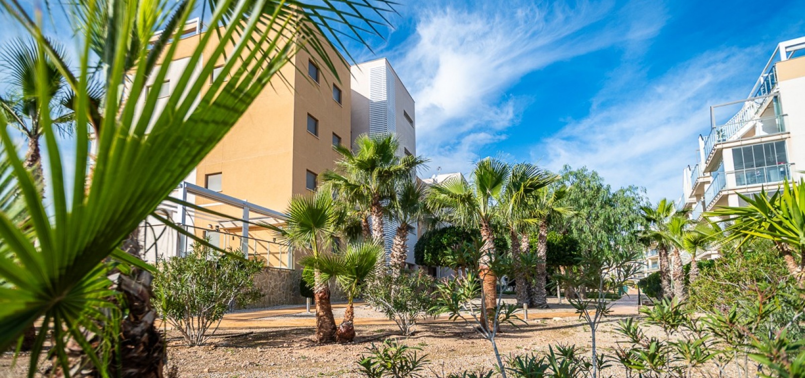 Diese atemberaubende Erdgeschosswohnung im begehrten Villa Martin Gardens 2 Resort bietet die seltene Gelegenheit, ein komplett neues, noch nie bewohntes Zuhause in Orihuela-Costa zu erwerben. Mit einer riesigen, teilweise überdachten Südterrasse und direktem Gartenzugang vereint diese Immobilie modernes Design, Luxus und den perfekten mediterranen Lebensstil.