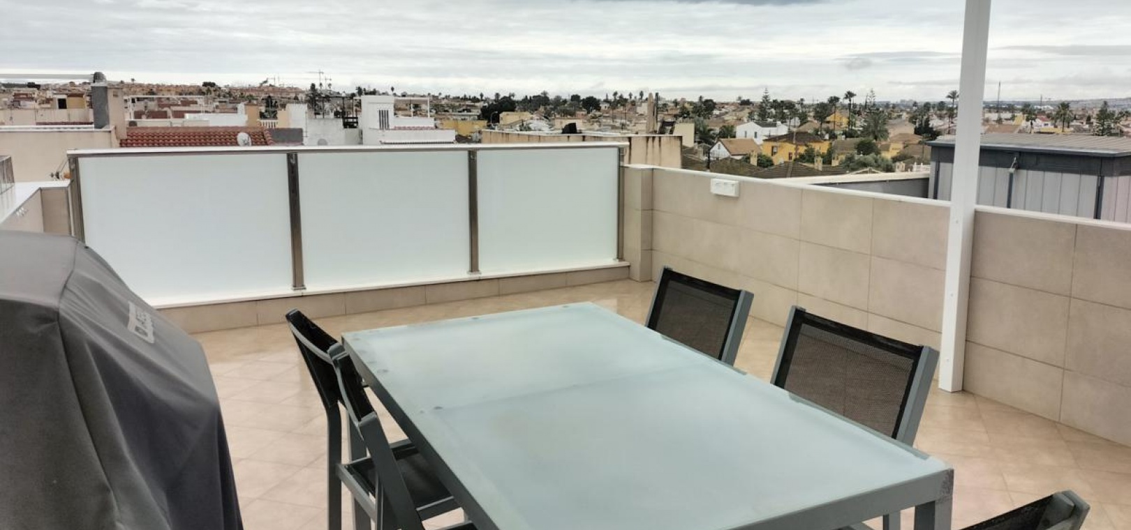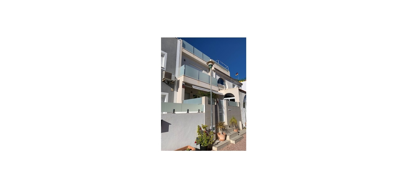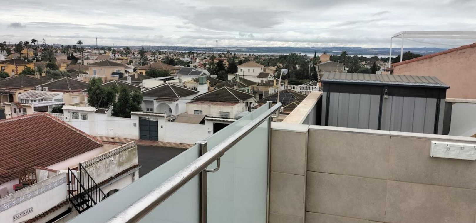 Gesamtbebauungsfläche: 93 m² Erdgeschoss: 43 m² + 10 m² Terrasse Erdgeschoss: 41 m² Solariumturm: 8 m² + 32 m² Südterrasse mit Blick auf den Salzsee Das Anwesen befindet sich in einer sehr ruhigen Gegend der etablierten Wohnsiedlung La Siesta am Stadtrand von Torrevieja und ist von wichtigen Annehmlichkeiten wie Geschäften, Freizeiteinrichtungen, einem Gesundheitszentrum und Anbindungen an den öffentlichen Nahverkehr umgeben.