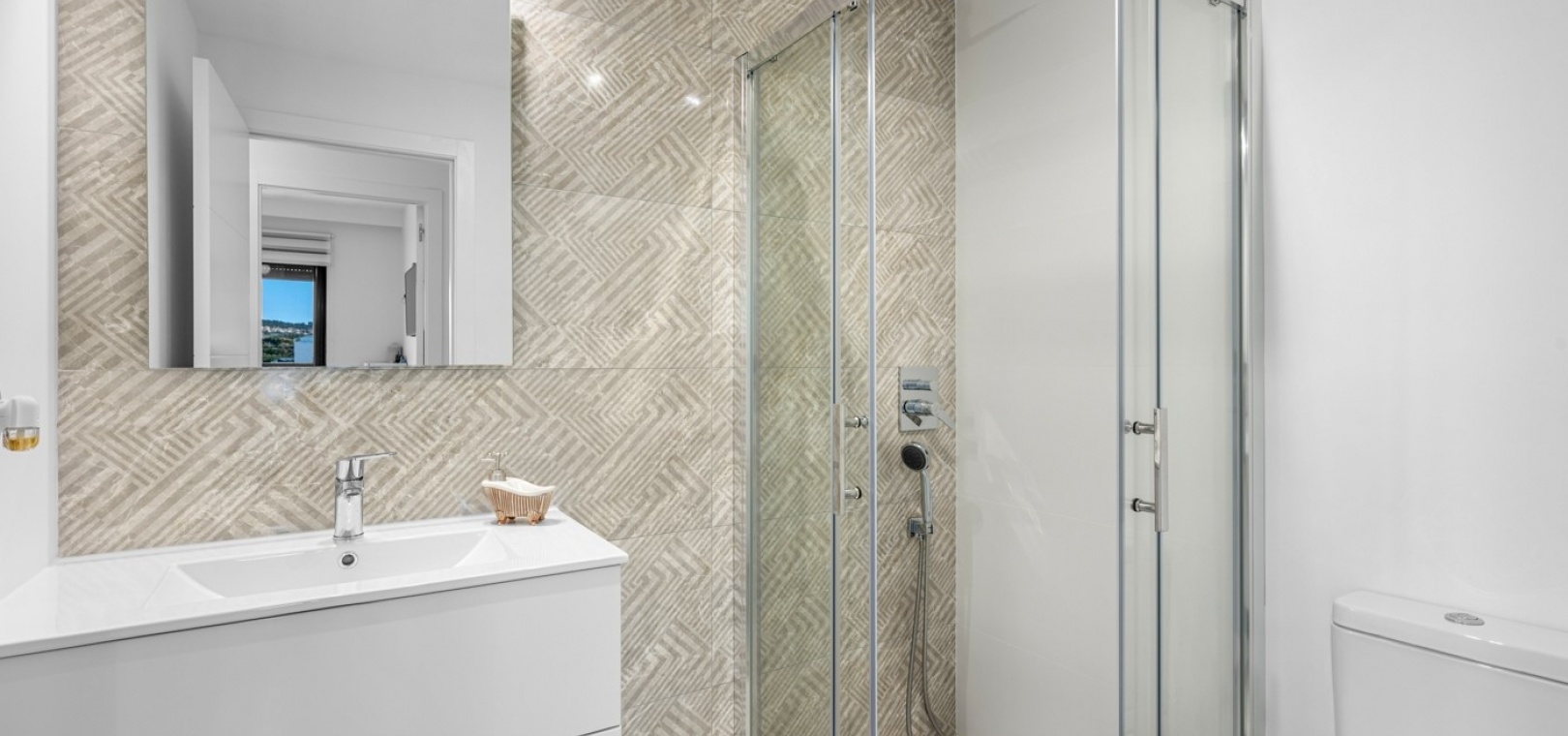Die Immobilie verfügt über zwei geräumige Schlafzimmer und zwei moderne Badezimmer mit einem praktischen, offenen Grundriss, der das Raumgefühl verstärkt. Dank der Südwestausrichtung ist die Wohnung lichtdurchflutet und genießt angenehme Nachmittags- und Abendsonne. Vom Wohnbereich gelangt man auf einen Balkon – ein einladender Ort zum Entspannen und Genießen der Umgebung.