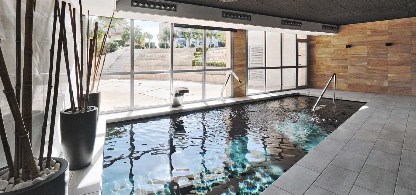 Die Bewohner profitieren von hervorragenden Gemeinschaftseinrichtungen, darunter ein voll ausgestattetes Fitnessstudio und Spa, ein beheiztes Hallenbad, ein Freibad und wunderschön angelegte Gärten – alles innerhalb einer sicheren und exklusiven Anlage.