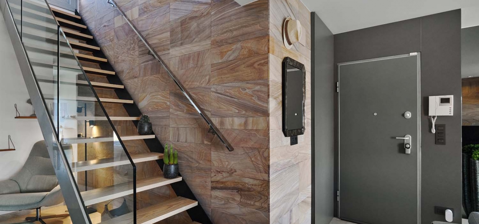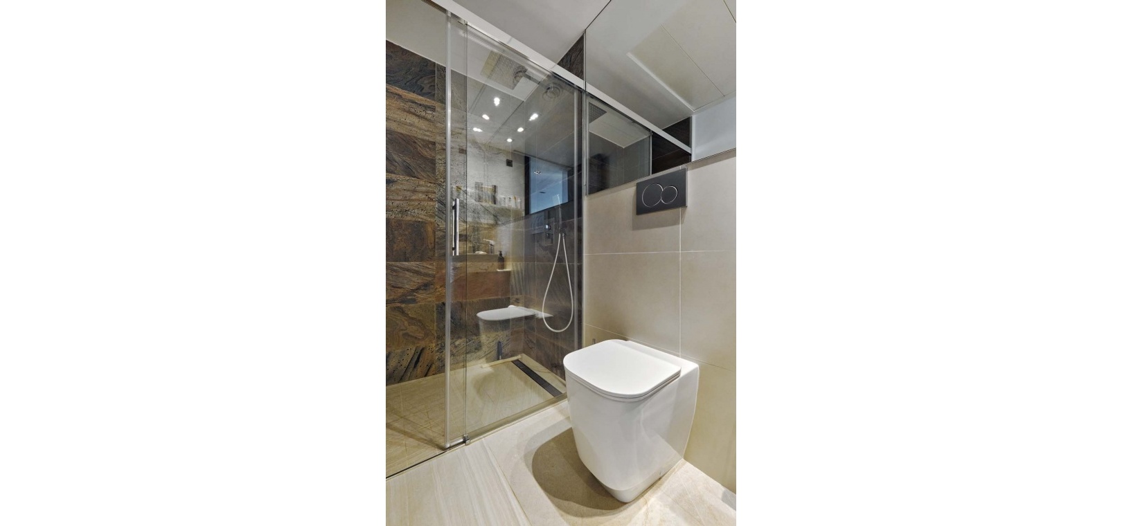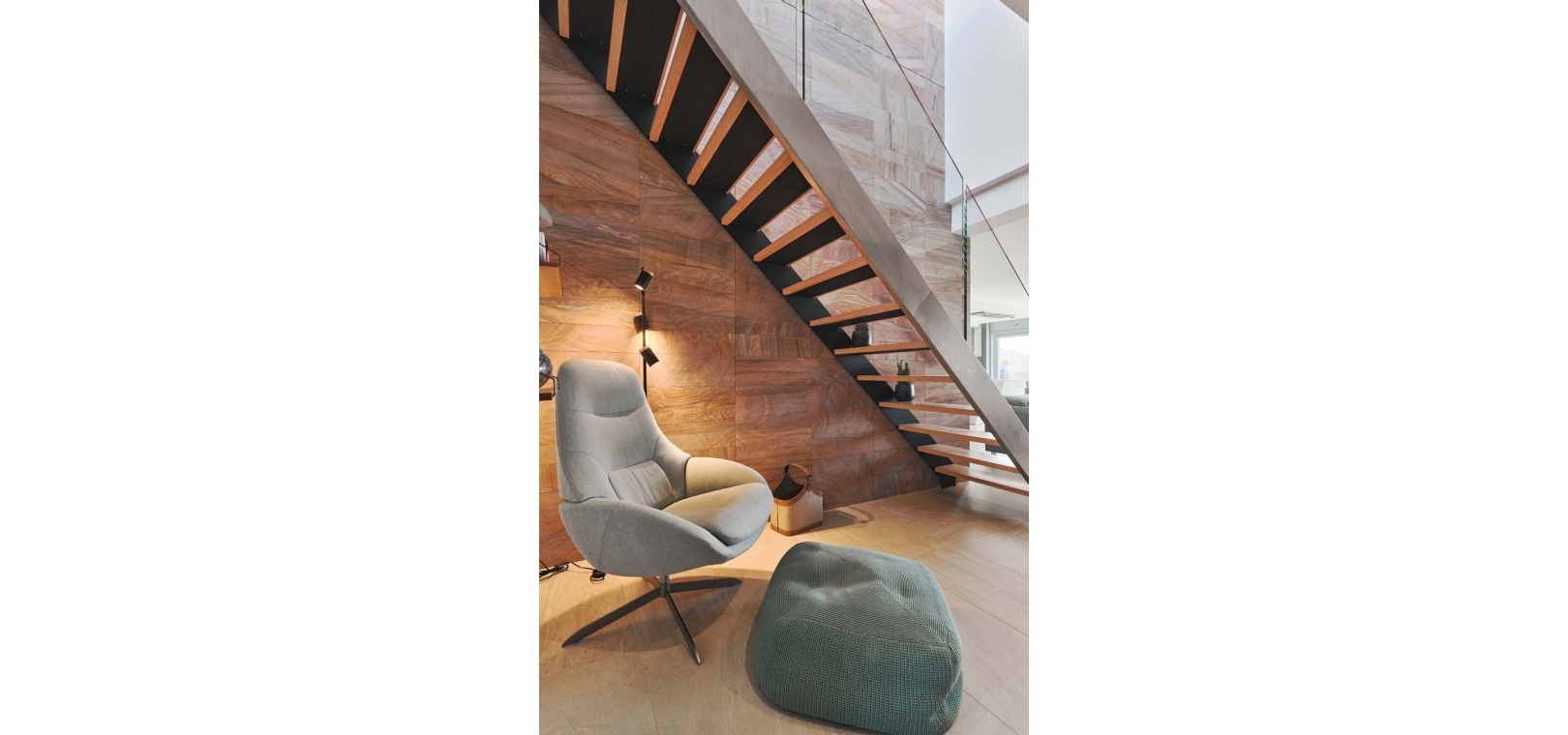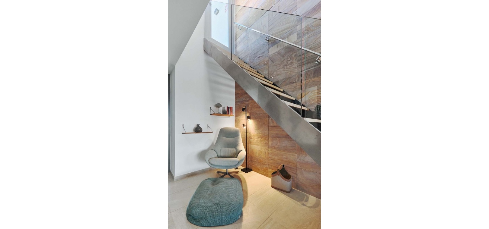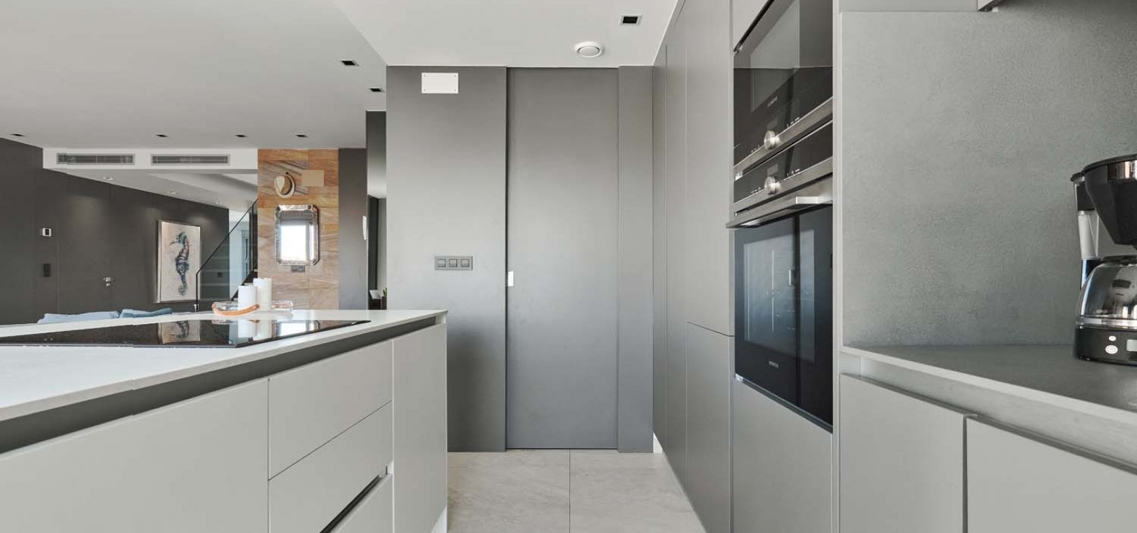 Eine elegante Innentreppe führt zum absoluten Highlight des Hauses: einem spektakulären privaten Dachsolarium. Dieser beeindruckende Bereich bietet einen Whirlpool, eine Außenküche, eine Infrarotheizung und viel Platz zum Entspannen und für gesellige Stunden – alles vor einer atemberaubenden Kulisse aus Meer und Küste.