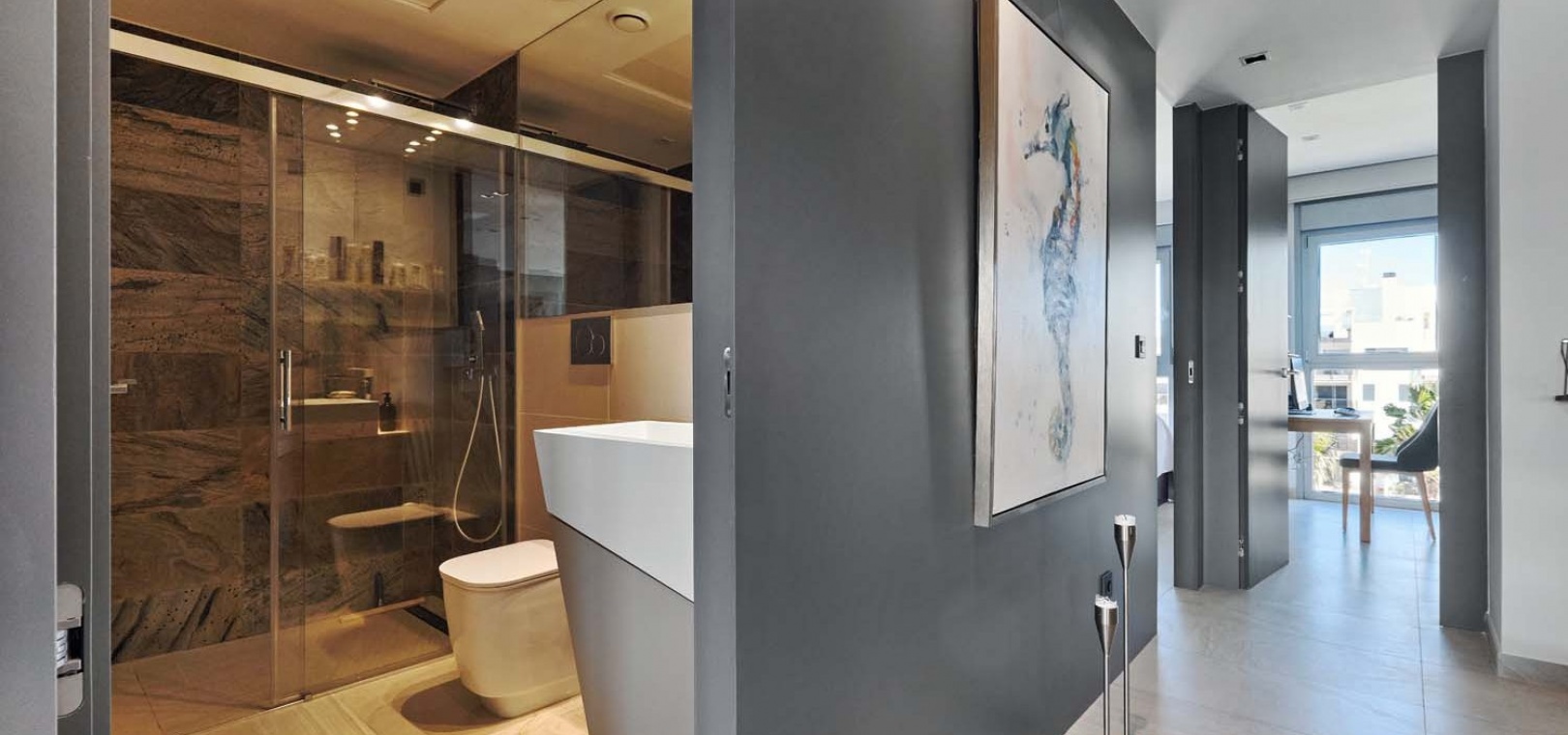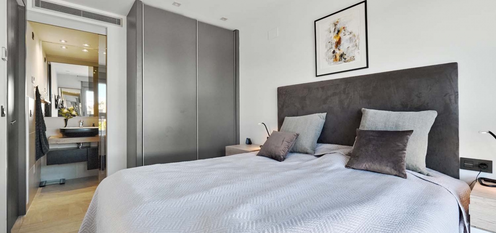 Zu den weiteren Ausstattungsmerkmalen gehören eine Klimaanlage mit Warm- und Kaltluftzufuhr, Fußbodenheizung in den Badezimmern, Tiefgarage, ein Abstellraum, Aufzug, Alarmanlage, intelligentes Türschloss, Sonnenmarkise und die Immobilie wird komplett möbliert verkauft – sofort bezugsfertig.