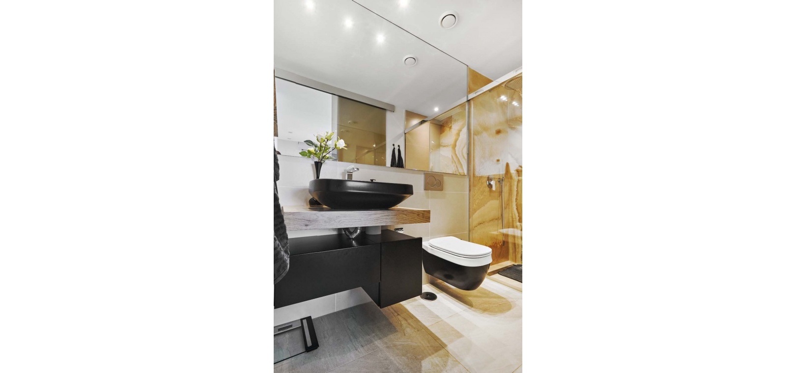 Das Anwesen bietet drei geräumige Schlafzimmer, alle mit Einbauschränken. Das Hauptschlafzimmer verfügt über ein stilvolles Badezimmer en suite, während sich zwei weitere Schlafzimmer ein zweites, hochwertiges Badezimmer teilen – ideal für Familien oder Gäste.