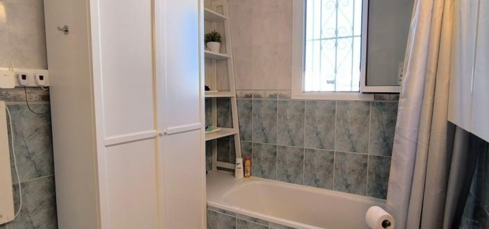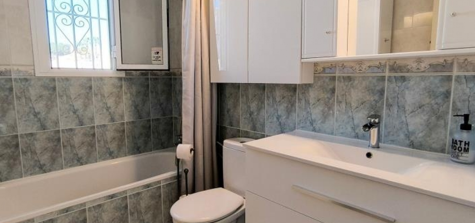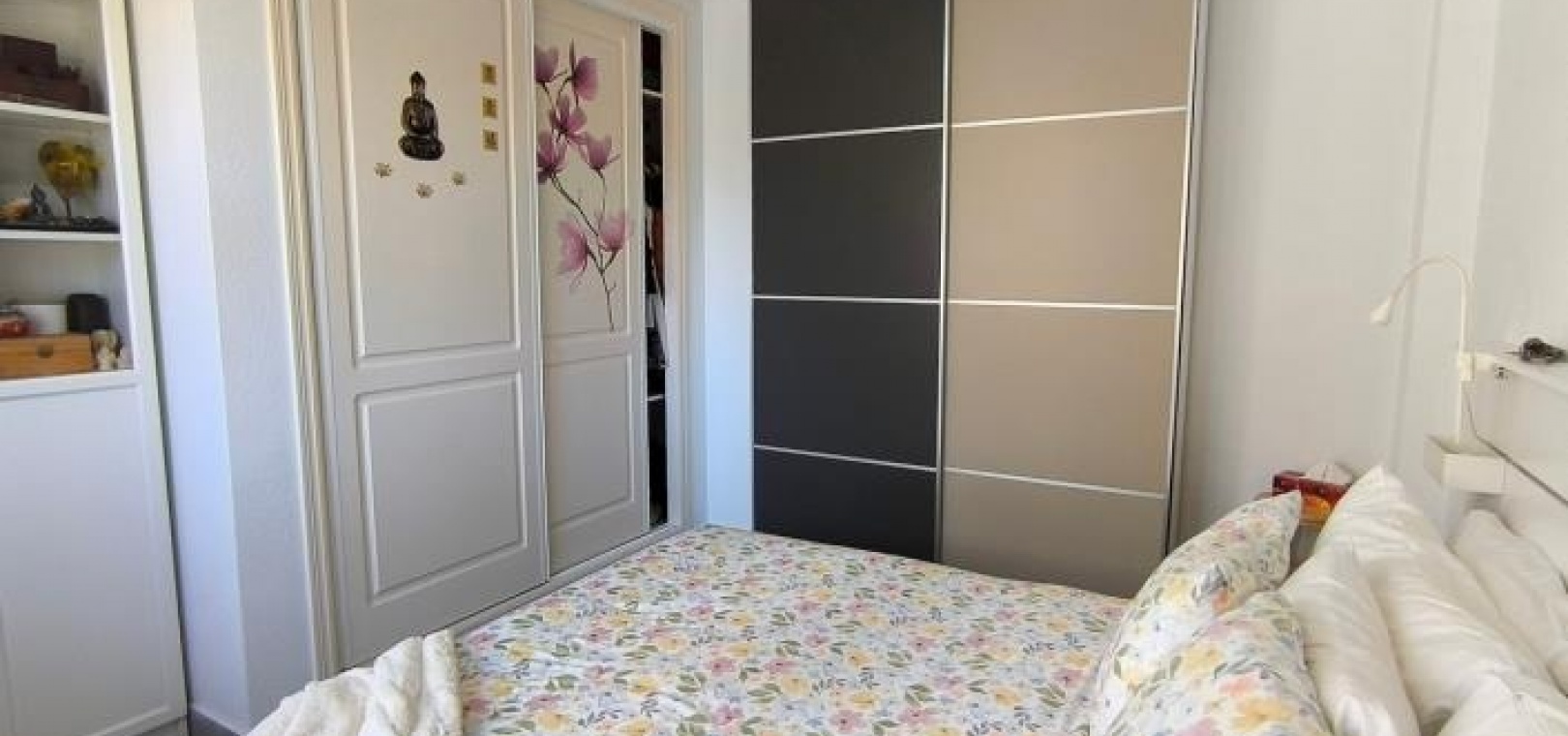 Das Hauptschlafzimmer ist direkt vom Wohnzimmer aus zugänglich und verfügt über einen Einbauschrank, einen Deckenventilator und Infrarotheizung. Zwei weitere Doppelschlafzimmer befinden sich im hinteren Bereich, jeweils links und rechts vom Familienbad.