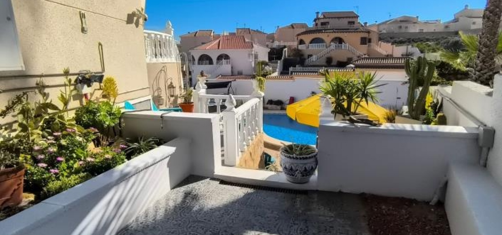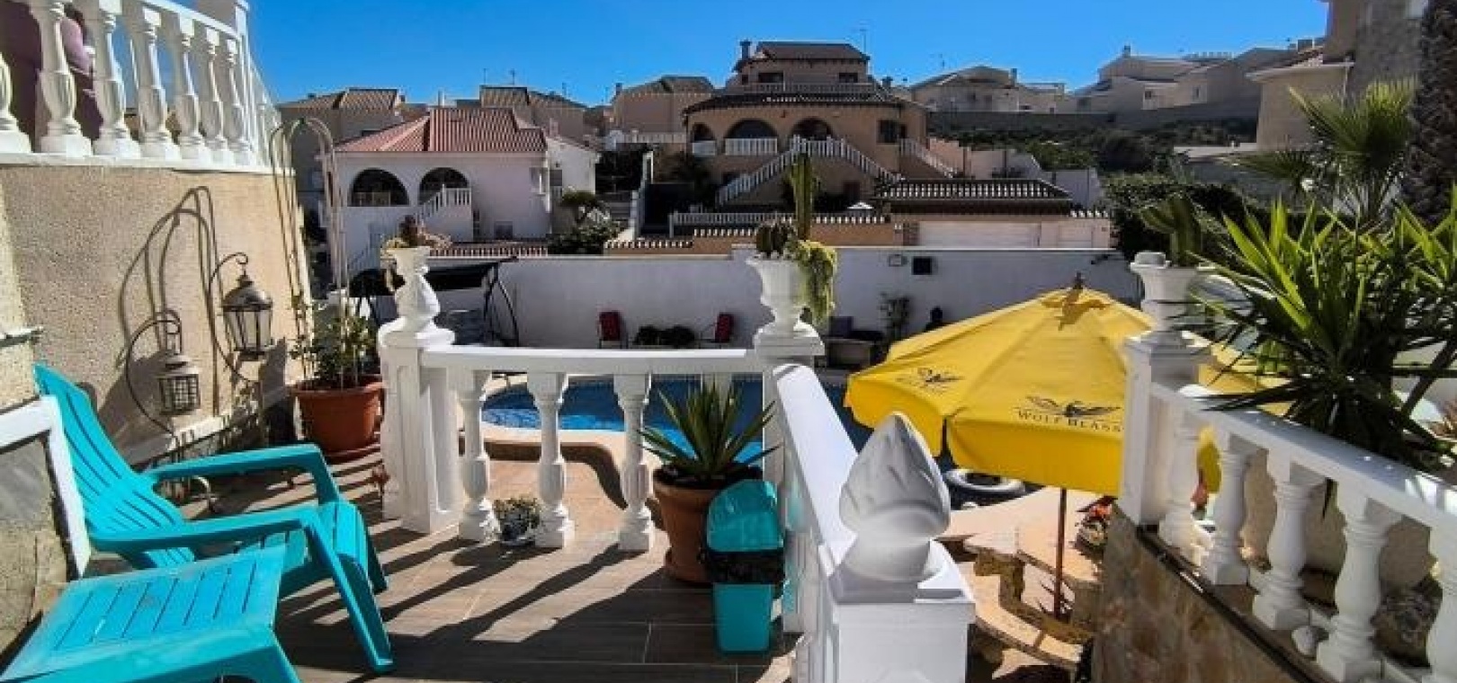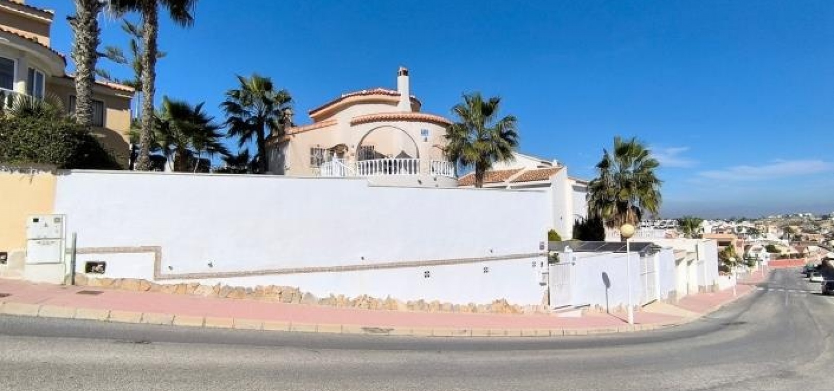 Diese nach Osten ausgerichtete, freistehende Villa vom Typ Alhambra in Ciudad Quesada bietet großzügiges Wohnen, atemberaubende Ausblicke und exzellente Außenanlagen. Das Anwesen liegt auf einem 485 m² großen Grundstück und umfasst eine Garage, einen privaten, nierenförmigen Swimmingpool sowie weitläufige Terrassen mit malerischem Blick auf die Umgebung und die fernen Berge.