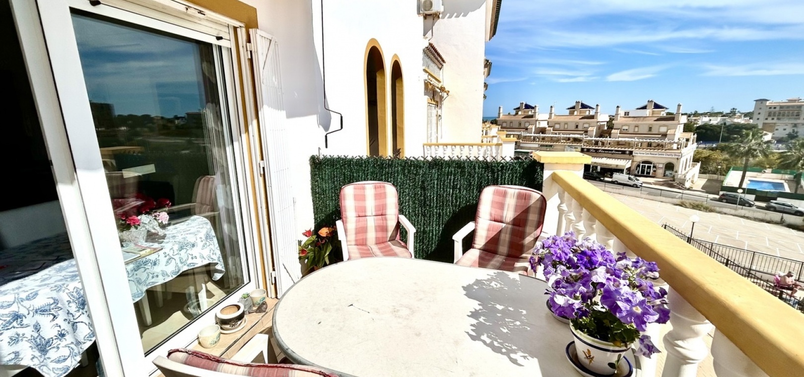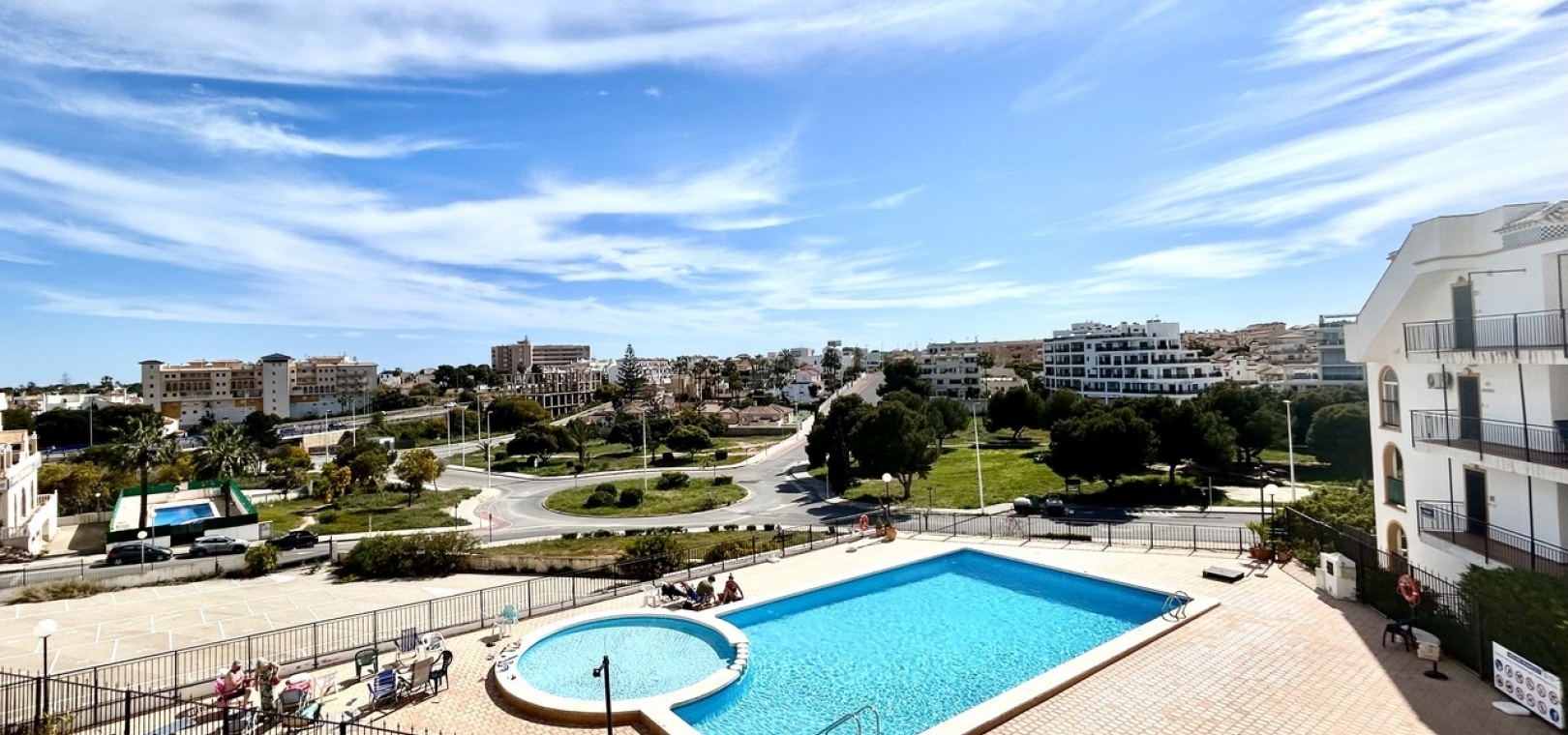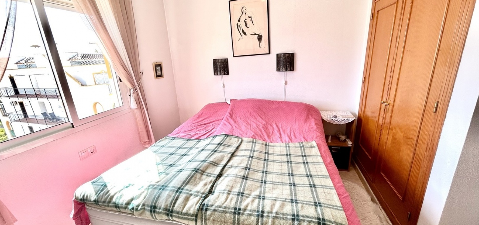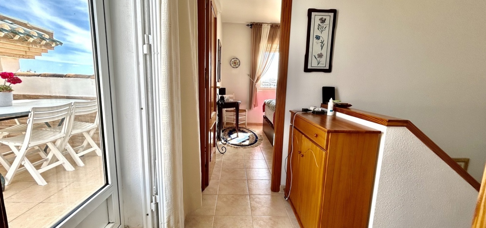 Dieses wunderschön präsentierte, nach Süden ausgerichtete Penthouse befindet sich in der begehrten Wohnanlage Molino Blanco, im Herzen von La Zenia. Es liegt oberhalb der Gemeinschaftsbereiche und bietet absolute Privatsphäre mit einem attraktiven, freien Blick über die gepflegten Gärten und den Pool.
