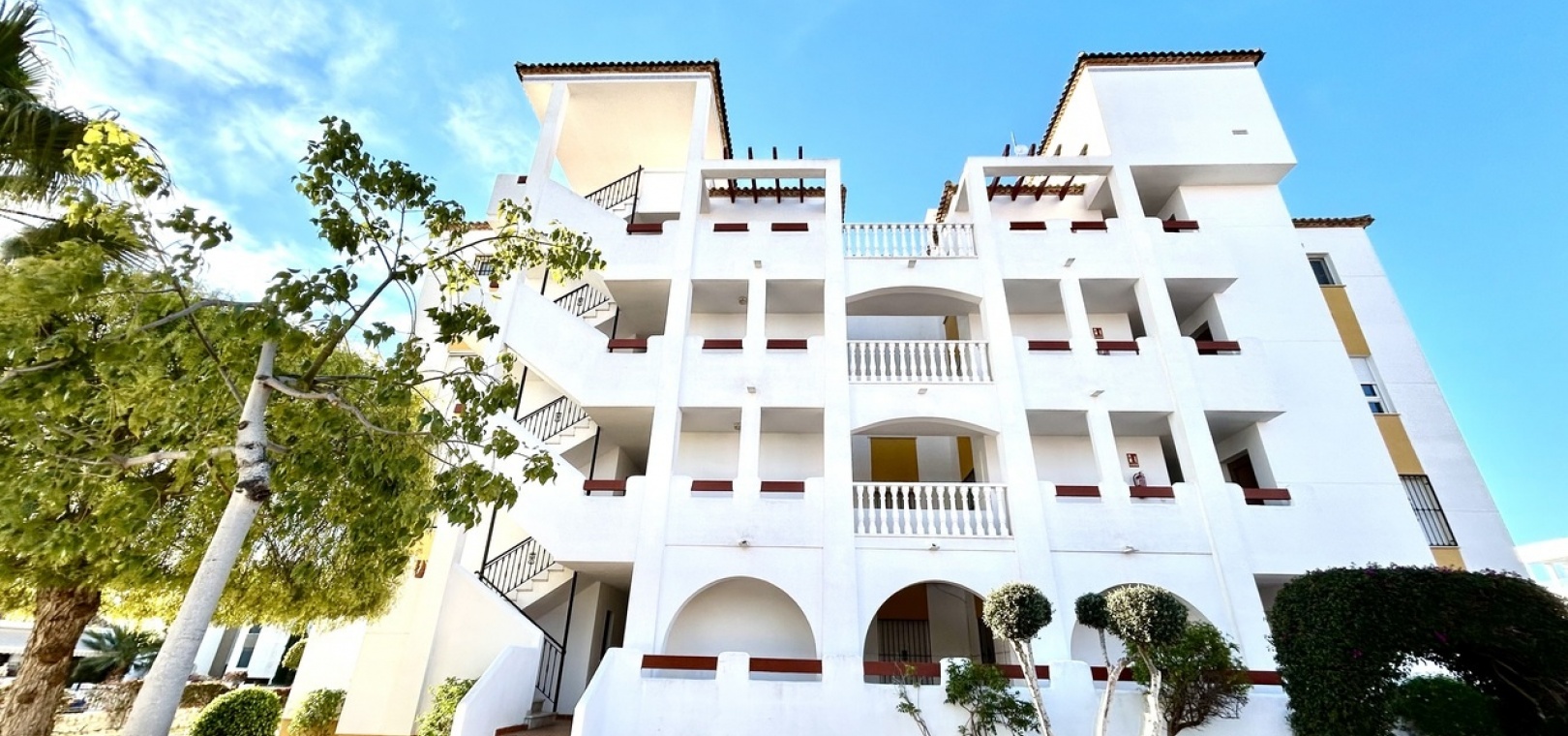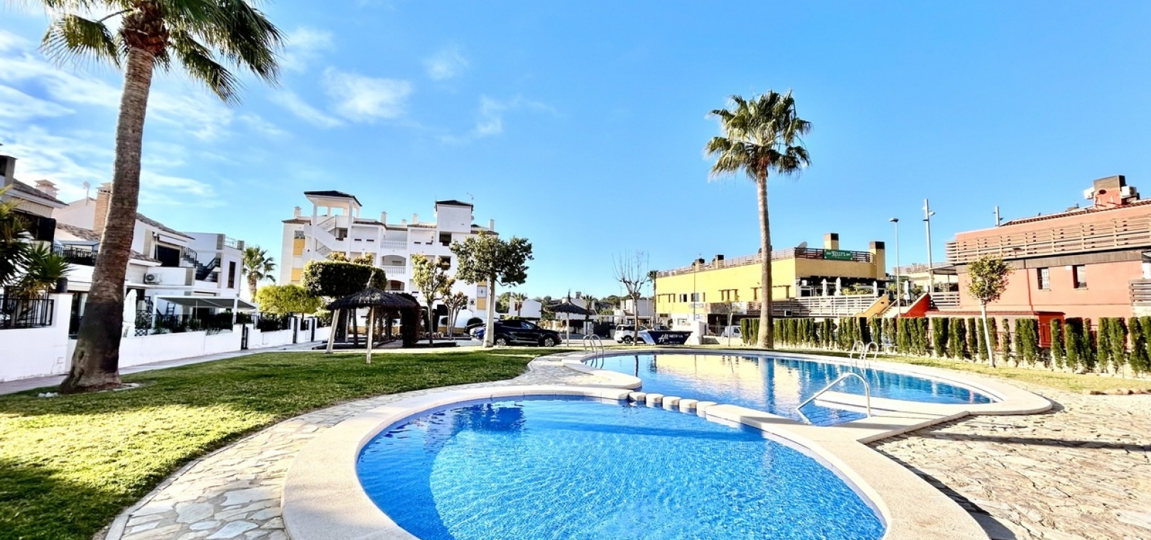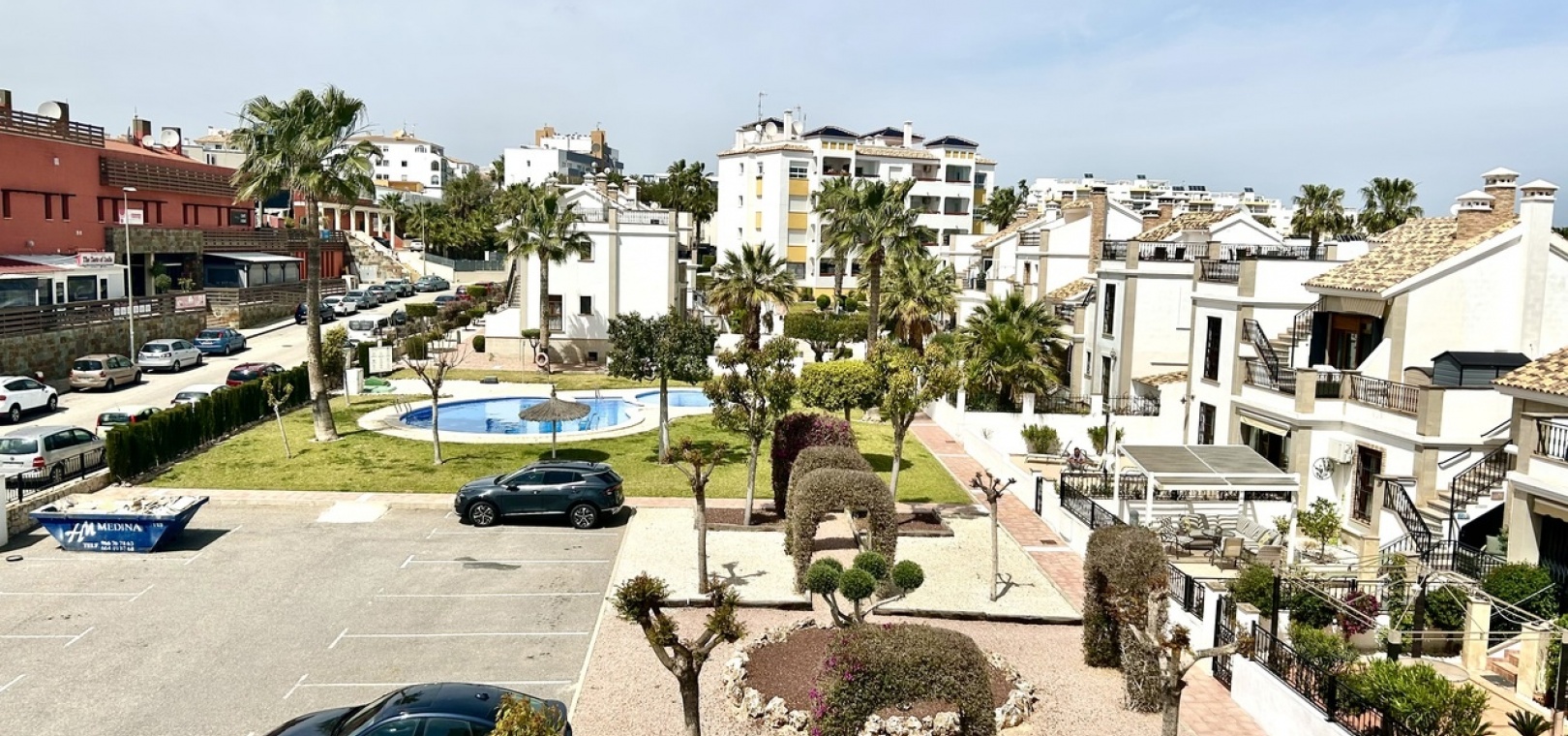 Das Anwesen ist Teil einer gepflegten Wohnanlage mit angelegten Gärten und einem Gemeinschaftspool sowie dem zusätzlichen Vorteil eines privaten Parkplatzes für mehr Komfort und Praktikabilität.