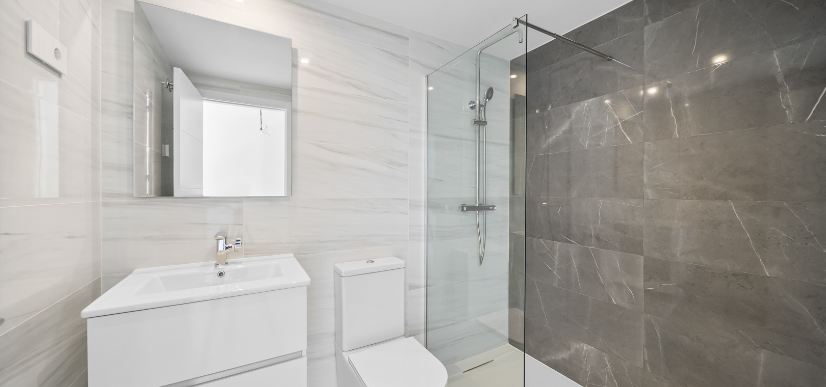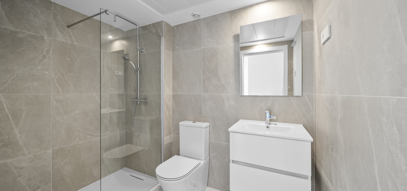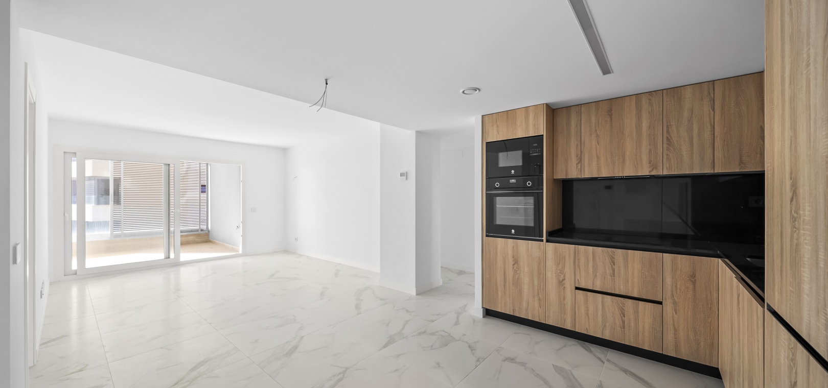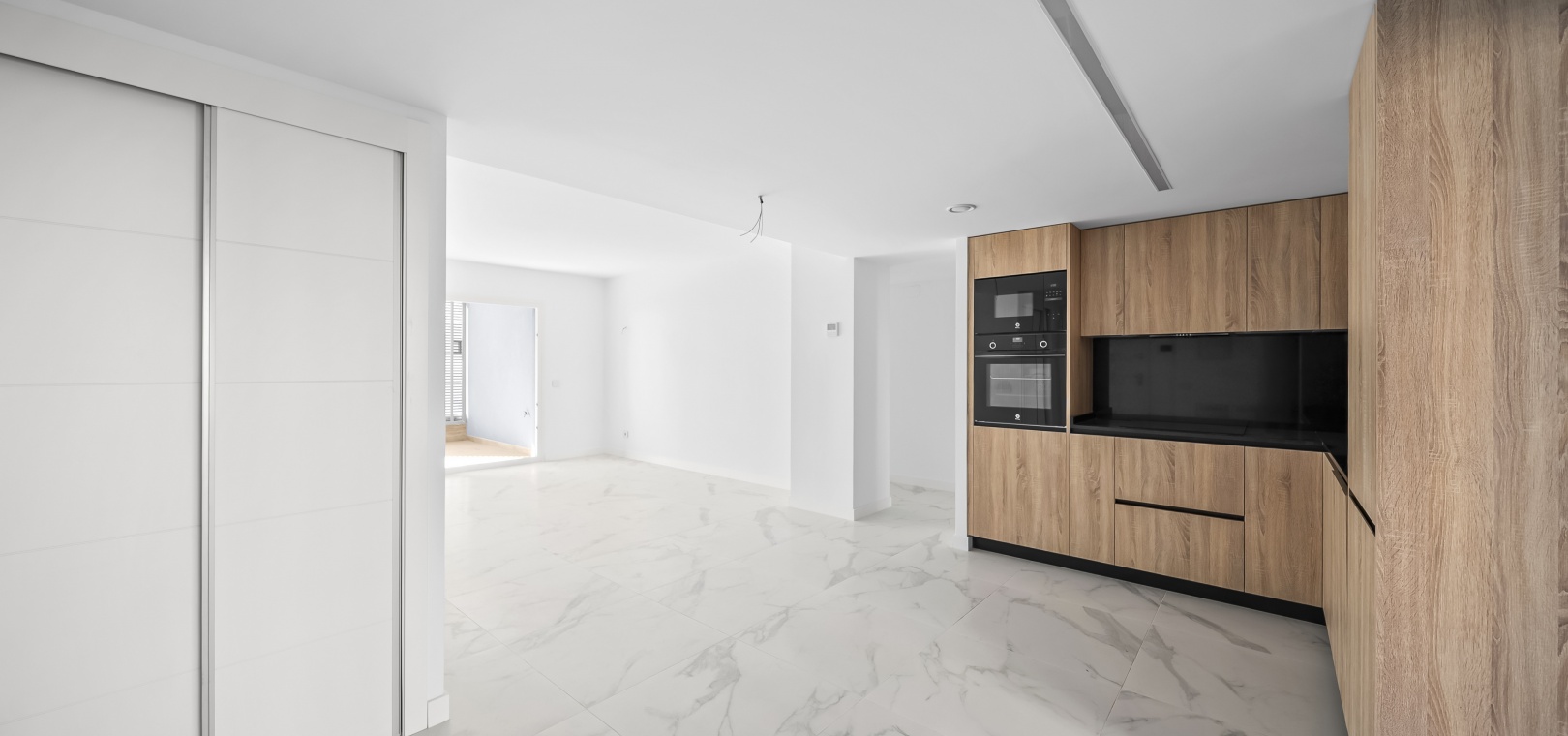 Ein besonderes Highlight ist die doppelte Terrassenaufteilung. Die 16,70 m² große, nach Süden ausgerichtete Hauptterrasse bietet einen wunderschönen Meerblick, während die zweite, 12 m² große Terrasse, die von der Küche aus zugänglich ist, einen zusätzlichen privaten Außenbereich bietet, der sich ideal zum Essen oder Entspannen eignet.