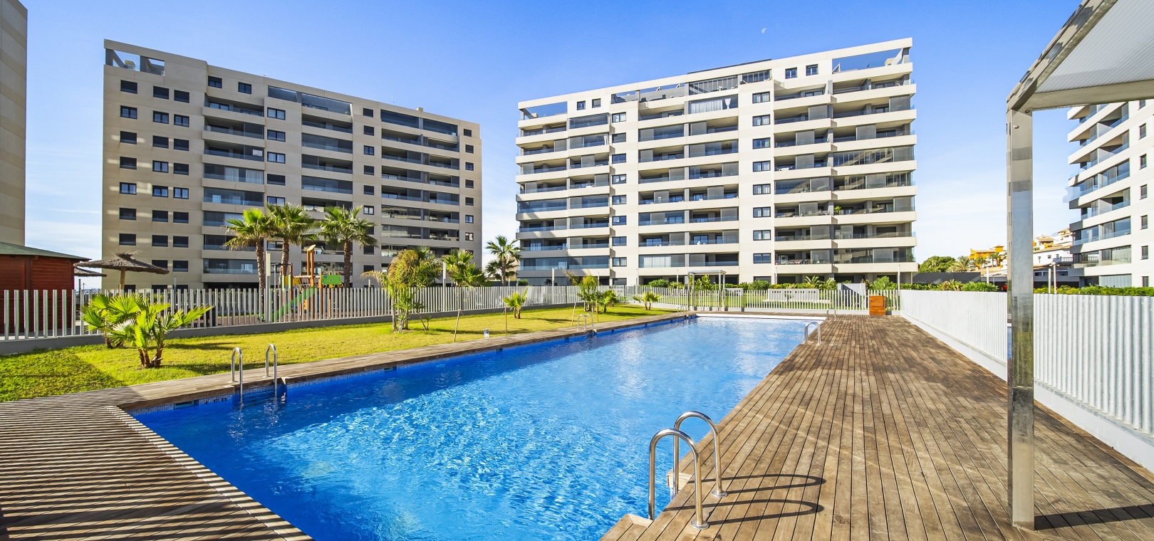 Der Wohnkomplex bietet hervorragende Annehmlichkeiten, darunter drei Gemeinschaftspools (einer davon ein Infinity-Pool und einer beheizt), einen Whirlpool, angelegte Gärten, einen Kinderspielplatz und einen 24-Stunden-Sicherheitsdienst – und bietet damit einen echten Resort-ähnlichen Lebensstil.