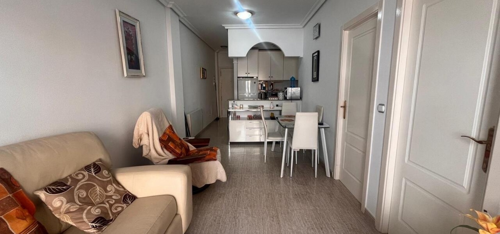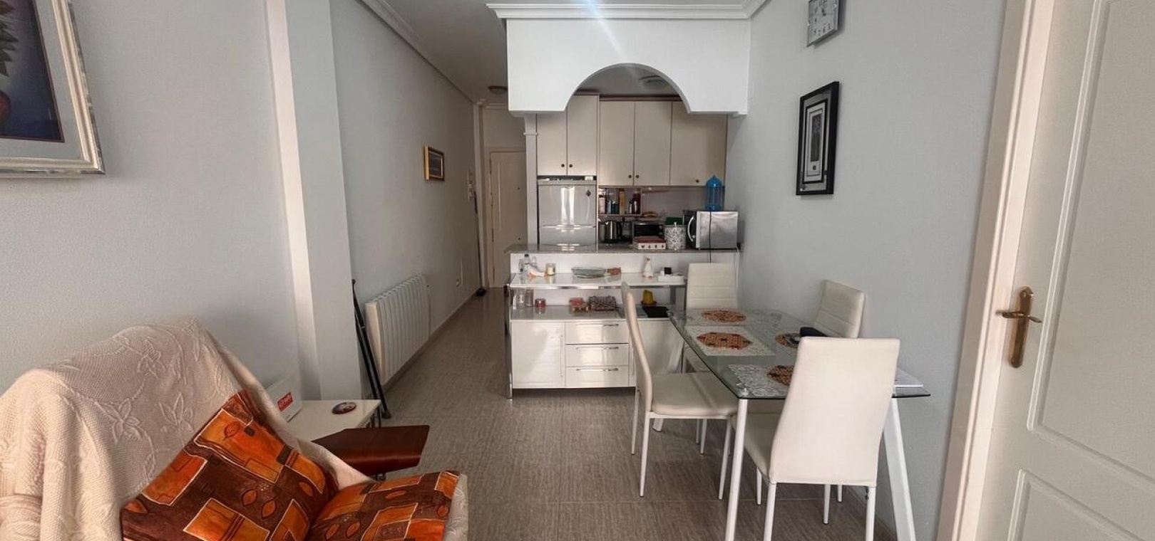 Diese ansprechend gestaltete 2-Zimmer-Wohnung befindet sich in idealer Lage im Herzen von Almoradí und bietet die perfekte Kombination aus Komfort und praktischer Alltagssituation. Supermärkte, Bars, Restaurants, Geschäfte und das örtliche Ärztezentrum sind bequem zu Fuß erreichbar – so wird der Alltag zum Kinderspiel.