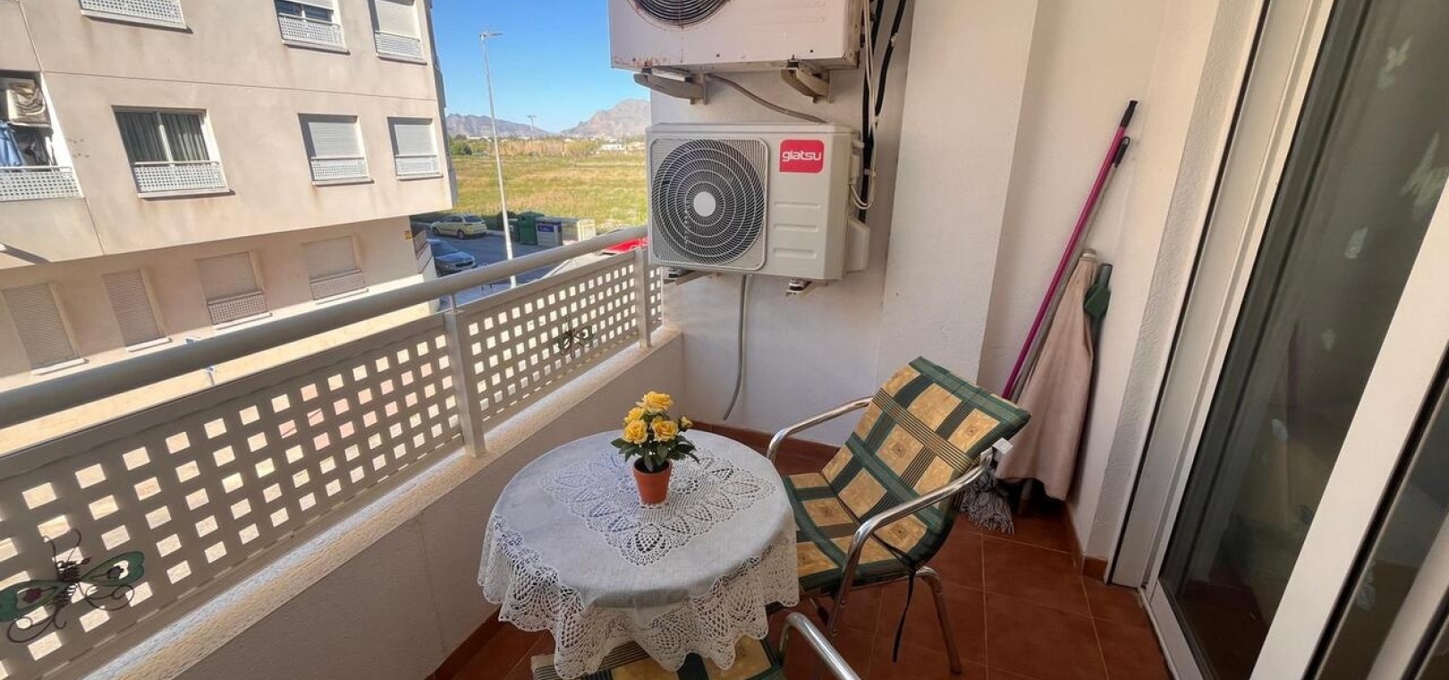 Das Anwesen besticht durch einen hellen und einladenden Wohnbereich mit Klimaanlage für ganzjährigen Komfort. Vom privaten Balkon aus genießen Sie einen schönen Blick auf die nahegelegenen Berge von Callosa de Segura – eine friedliche und malerische Kulisse für entspannte Morgen- oder Abendstunden.