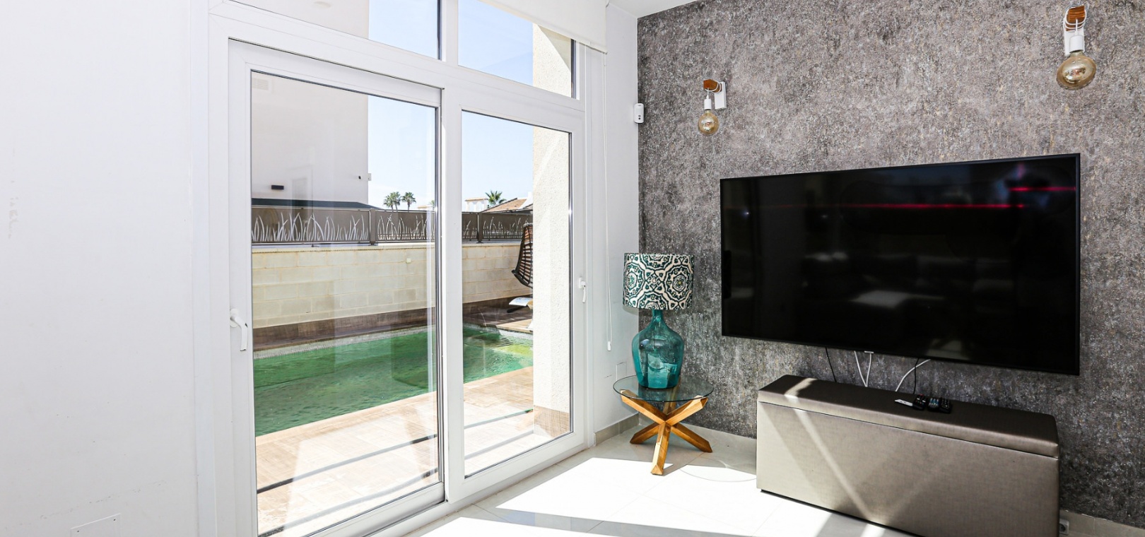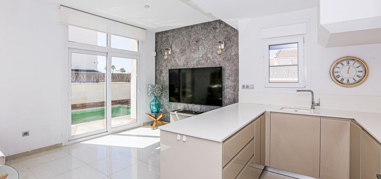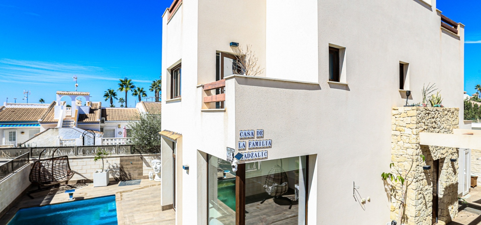 Zu verkaufen: Freistehende Villa in Doña Pepa, Ciudad Quesada (Rojales), am Ende einer ruhigen Zufahrtsstraße gelegen, mit privatem Eingang und automatischem Fahrzeugtor.