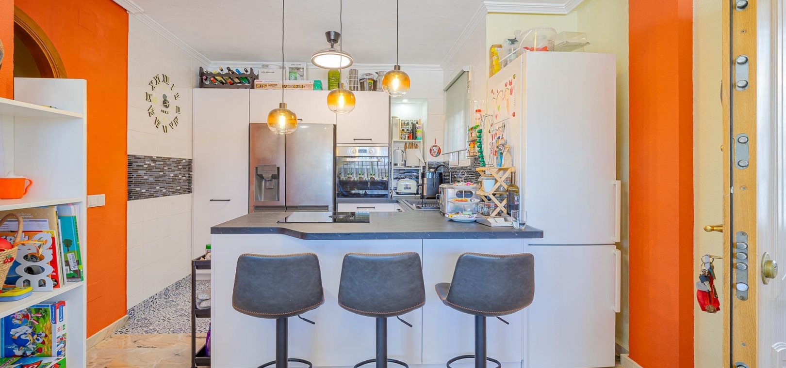Zu verkaufen: Stilvoll renoviertes Stadthaus in der prestigeträchtigen Gegend von Punta Prima an der Costa Blanca, nur wenige Gehminuten vom Meer und den Stränden der Orihuela Costa entfernt.