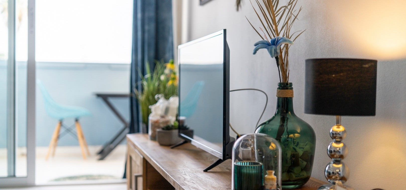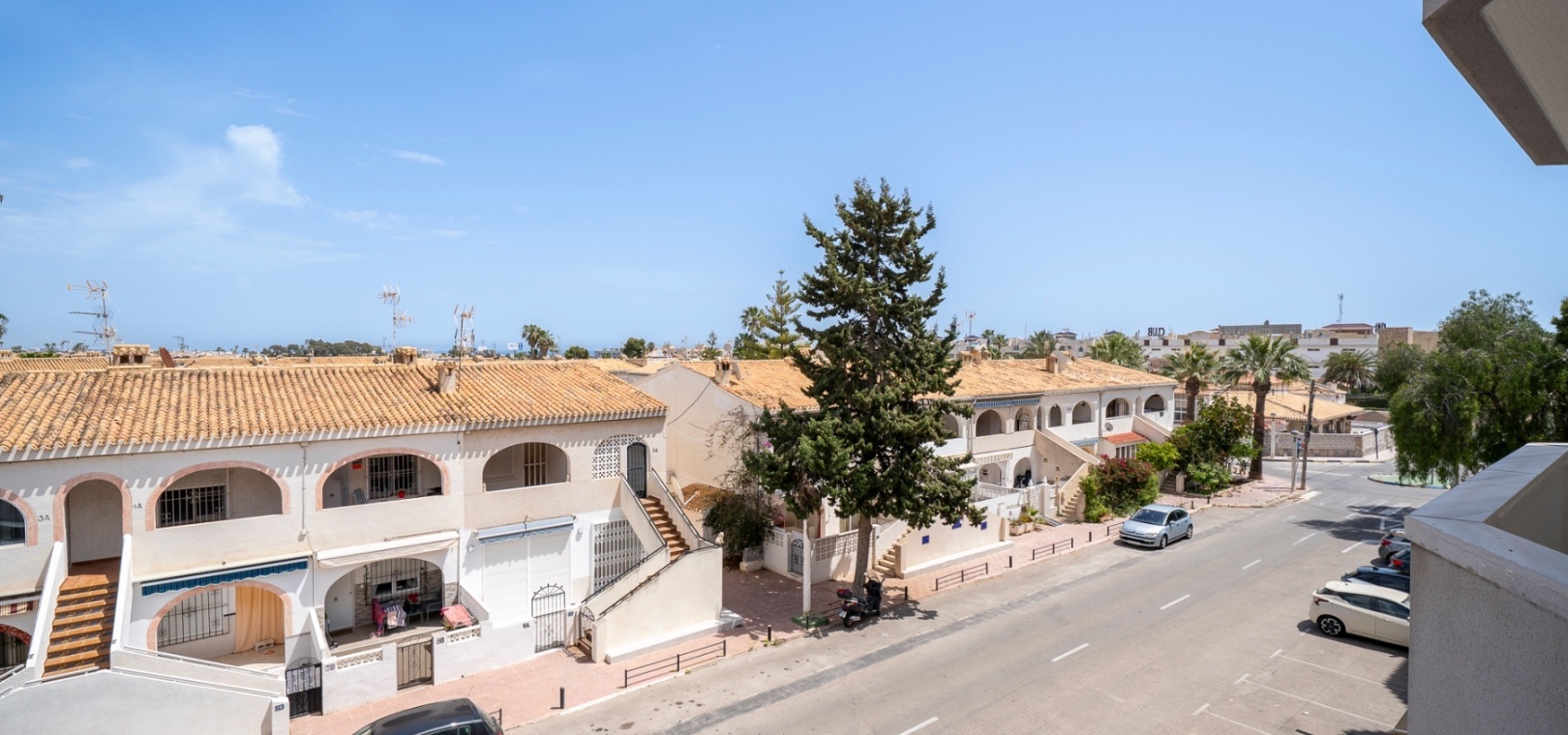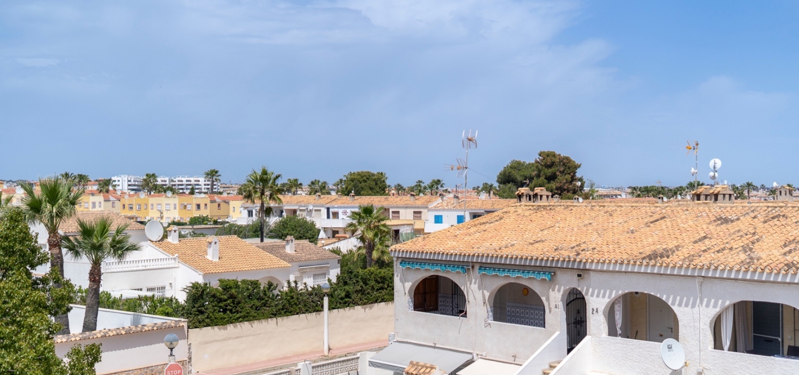 Vom Wohnzimmer aus gelangt man direkt auf eine private Terrasse mit freiem Blick über die Siedlung, die von altem Grün und Palmen umgeben ist und so einen angenehmen Außenbereich für den täglichen Gebrauch schafft.