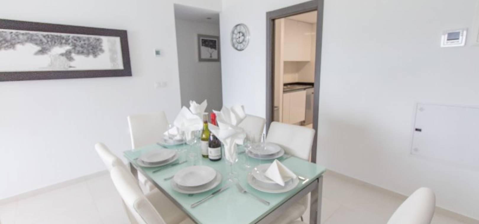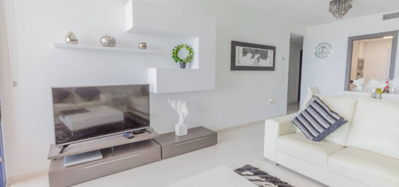 Grosses Wohn- / Esszimmer, offene Einbauküche mit allen Küchengeräten, separater Hauswirtschaftsraum, 3 Doppelschlafzimmer, 2 Duschbäder mit Fußbodenheizung, grosse 28m2 Sonnenterrasse mit direktem Meerblick, sichere Wohnanlage mit Sicherheitspersonal & Hervorragende Gemeinschaftspool- und Gartenanlagen, Tennisplätze, Whirlpool, Fitnessraum, Tiefgarage, Klimaanlage mit Warm- und Kaltwasseranschluss, Möblierung wie gesehen und vieles mehr.