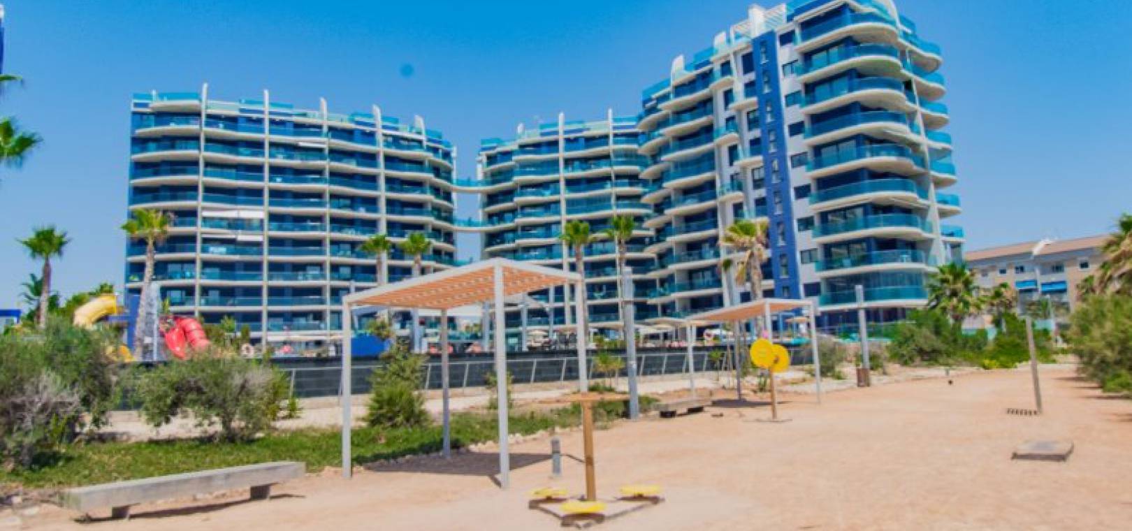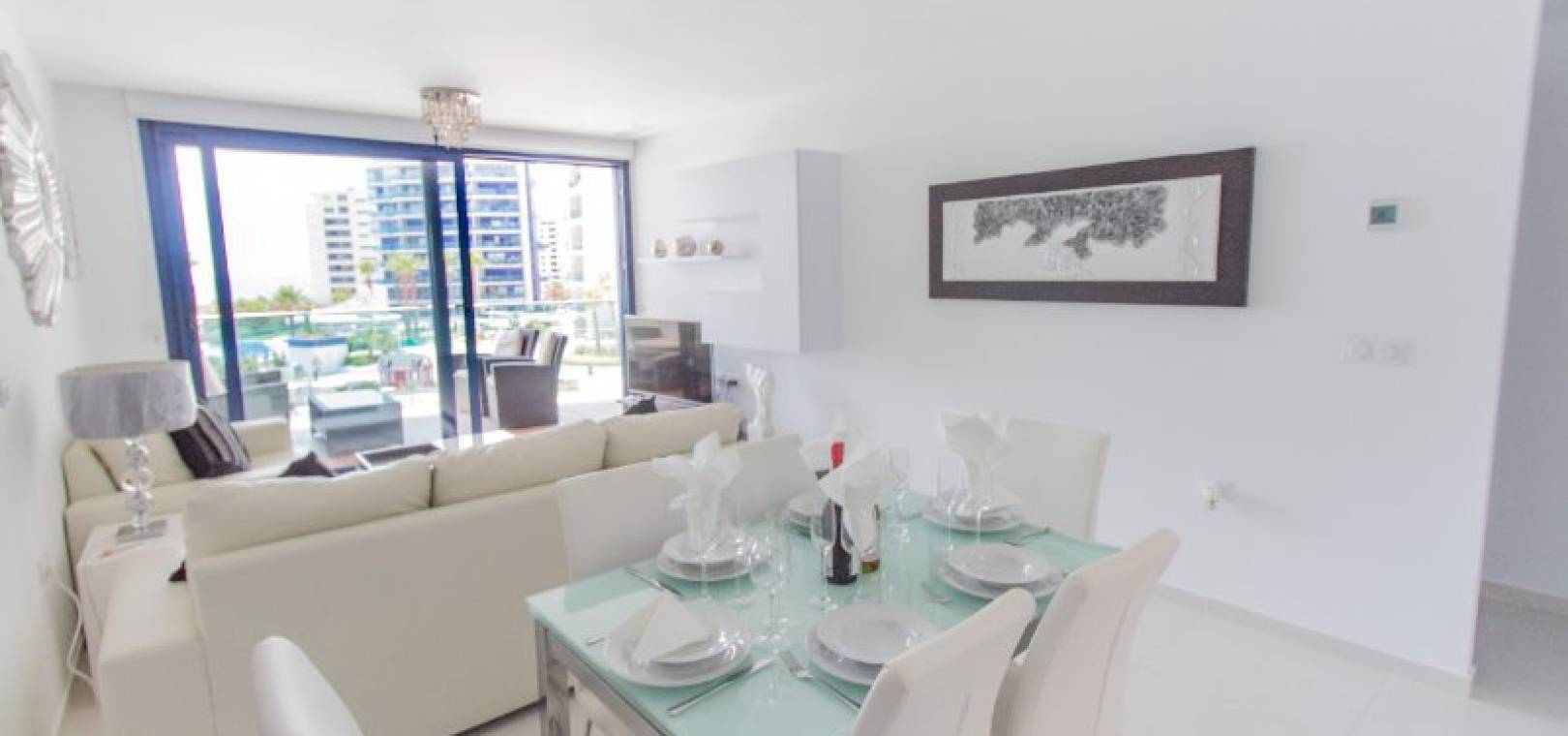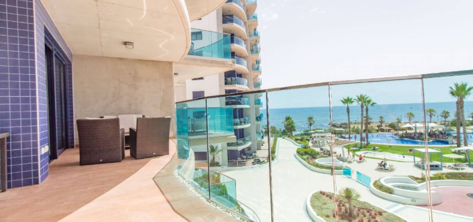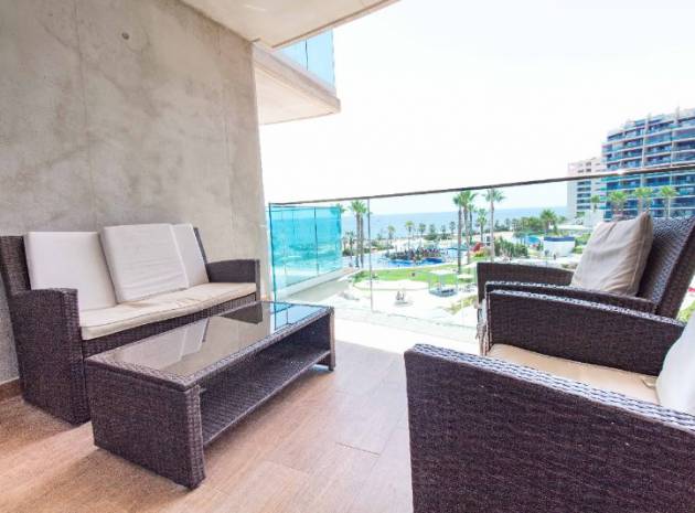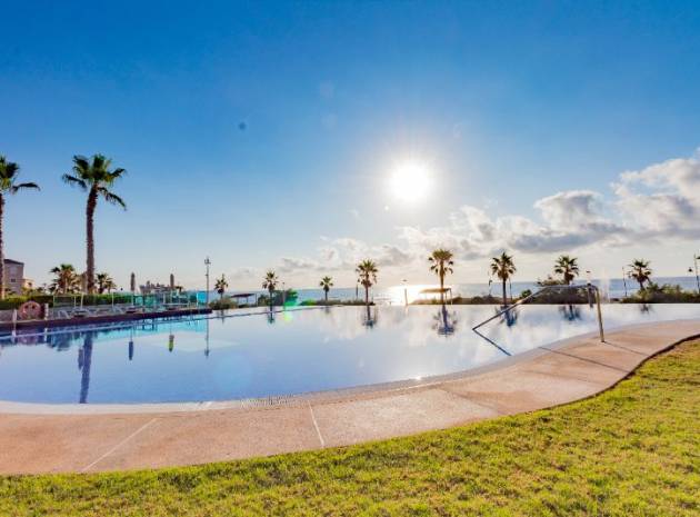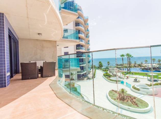 Eine nach Osten ausgerichtete 3-Bett-2-Bad-Wohnung in erster Meereslinie im 2. Stock mit herrlichem Meerblick in Res. Meeresgefühle, Punta Prima, Costa Blanca.