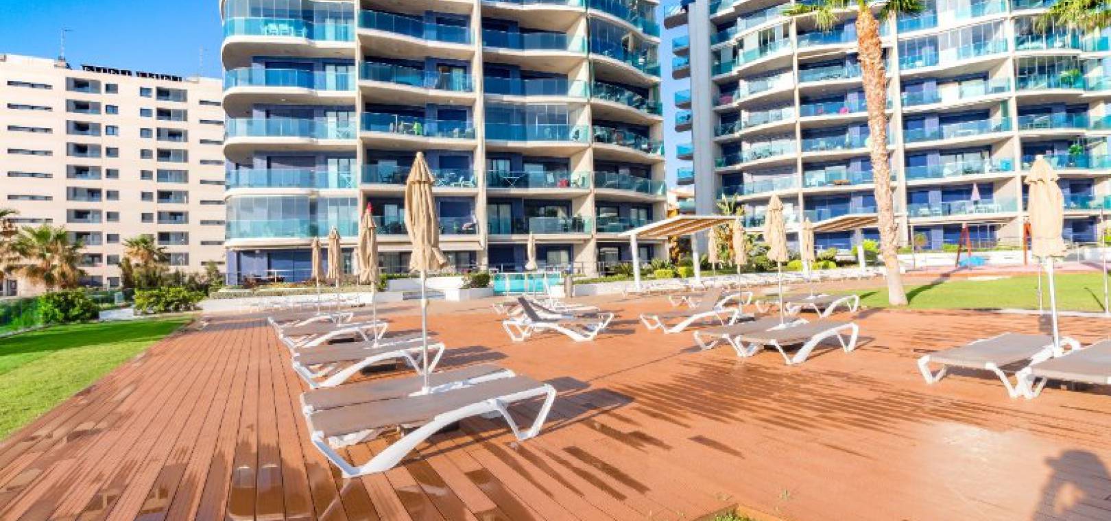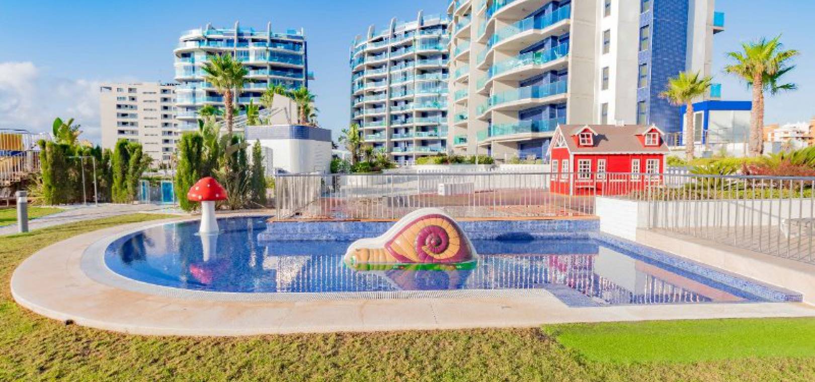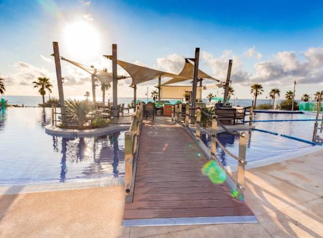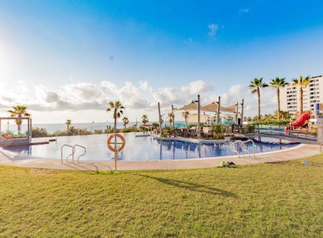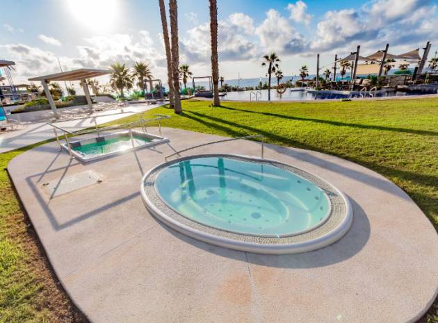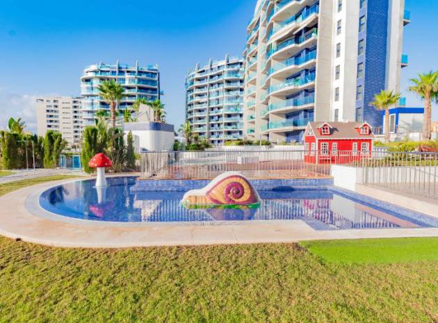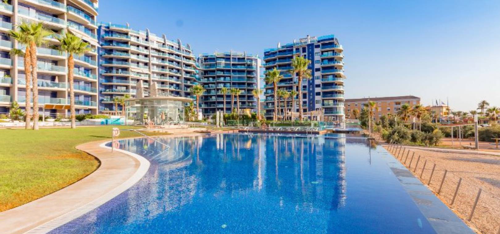 Eine nach Osten ausgerichtete 3-Bett-2-Bad-Wohnung in erster Meereslinie im 2. Stock mit herrlichem Meerblick in Res. Meeresgefühle, Punta Prima, Costa Blanca.