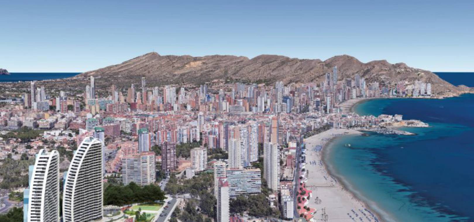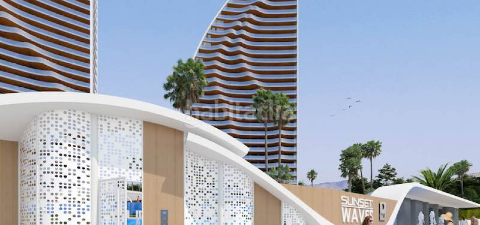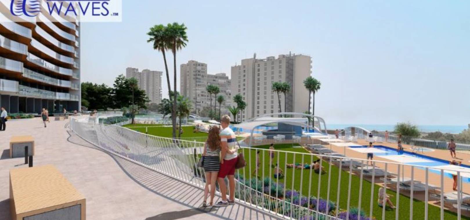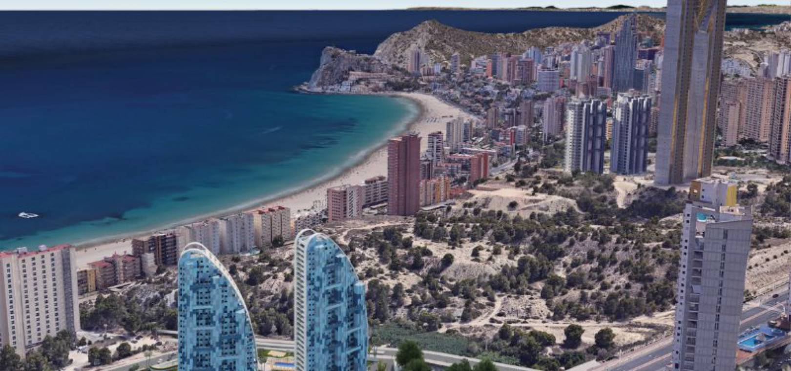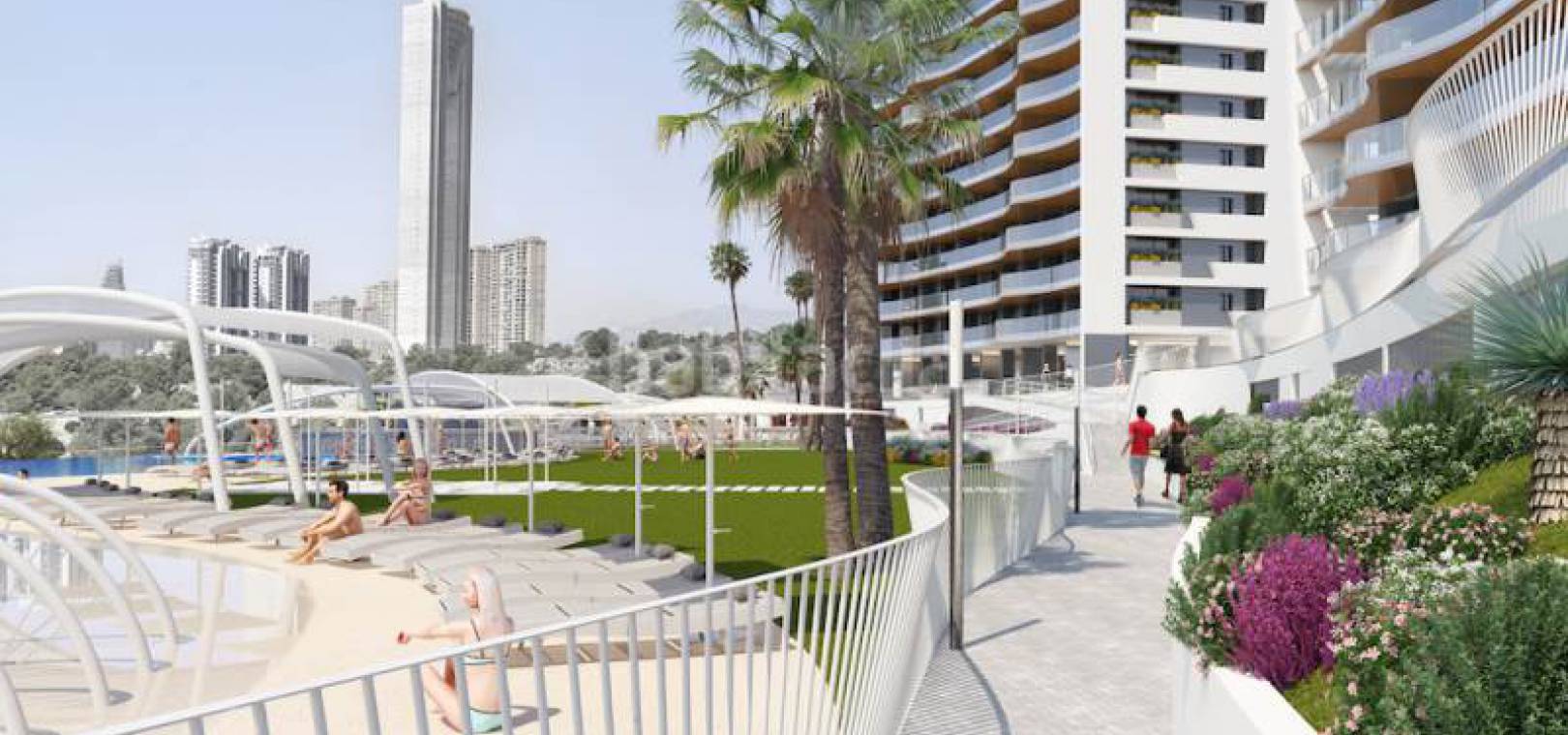 Luxus-Neubauwohnungen mit 3 Schlafzimmern und 2 Bädern und herrlichem Meerblick in Res. Sonnenuntergang Wellen, Benidorm, Costa Blanca.