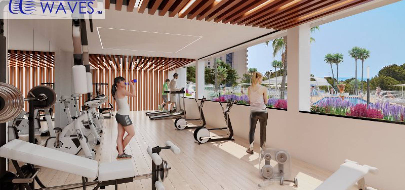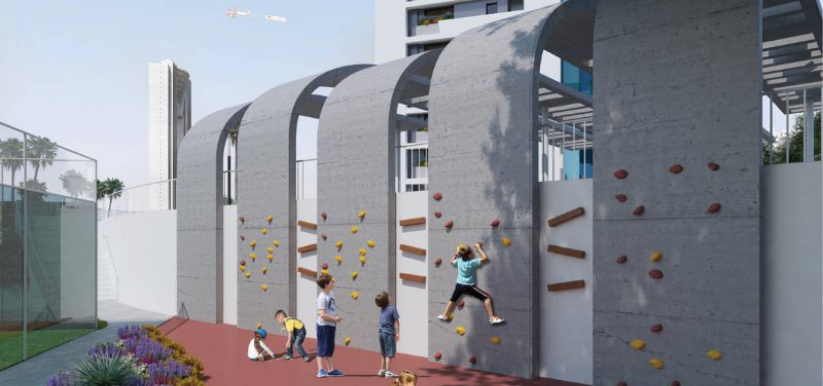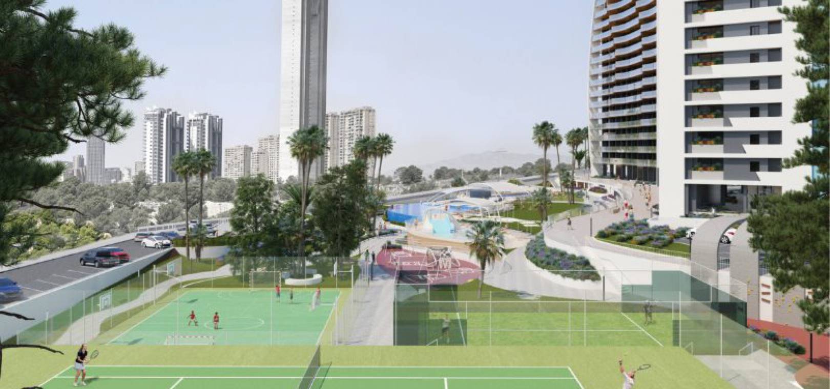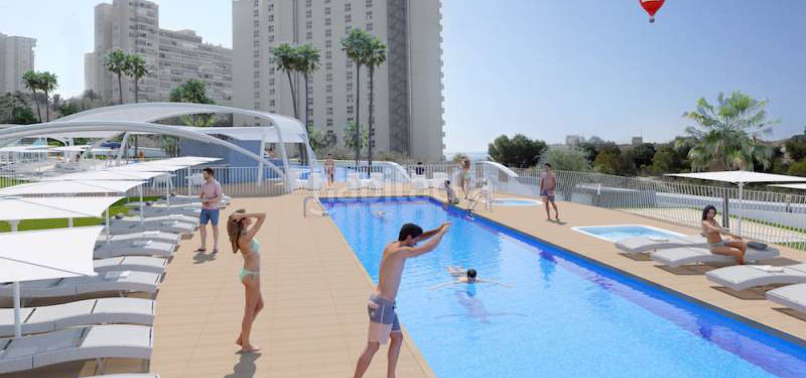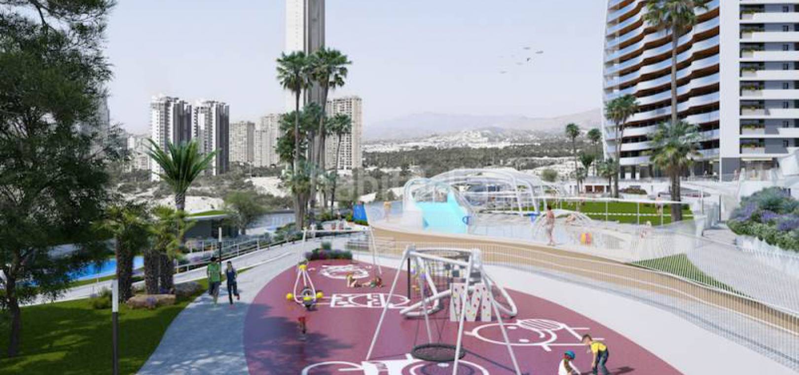 Sportliebhaber können ihre Lieblingsaktivitäten im Fitnessstudio auf der 27. Etage mit herrlichem Blick auf die Bucht und die Insel Benidorm ausüben. Ein beheizter Innenpool zum Entspannen lädt Sie das ganze Jahr über zum Schwimmen ein. Andere Bereiche sind für Paddle-Tennis, Tennis, Multisport usw. vorgesehen. Kinder haben einen eigenen Pool und mehrere Spielbereiche mit Rutschen und Schaukeln.