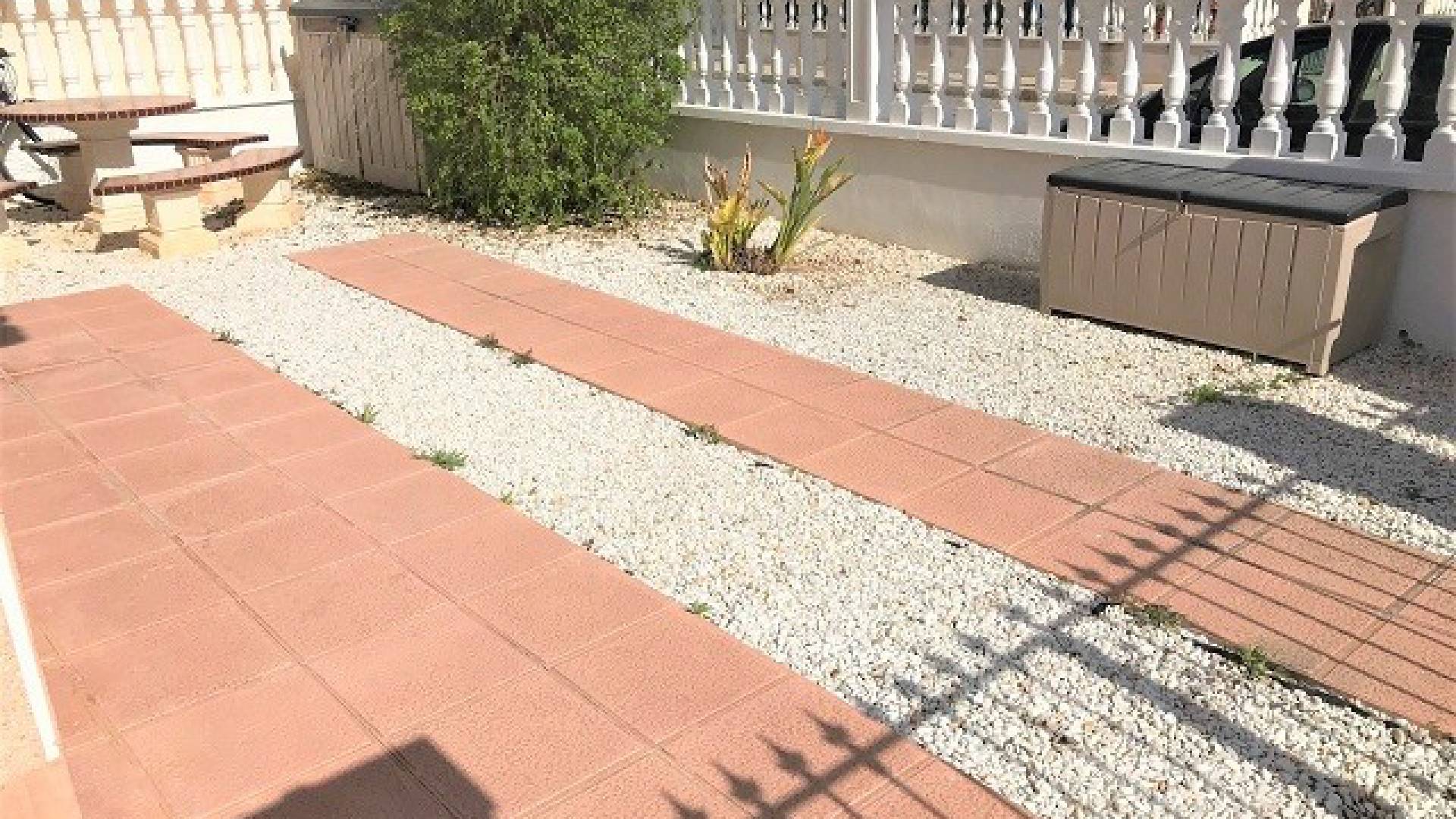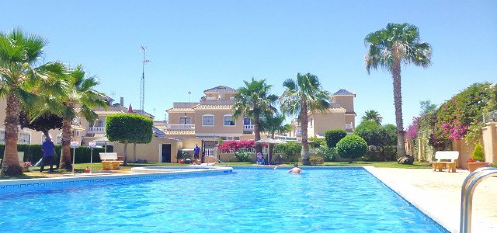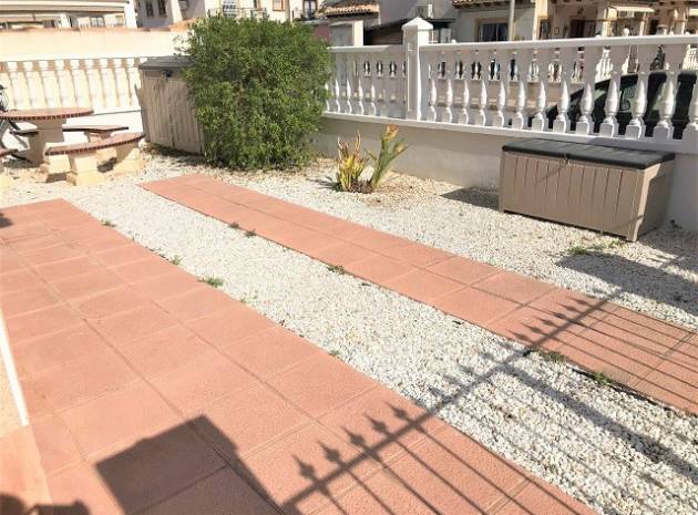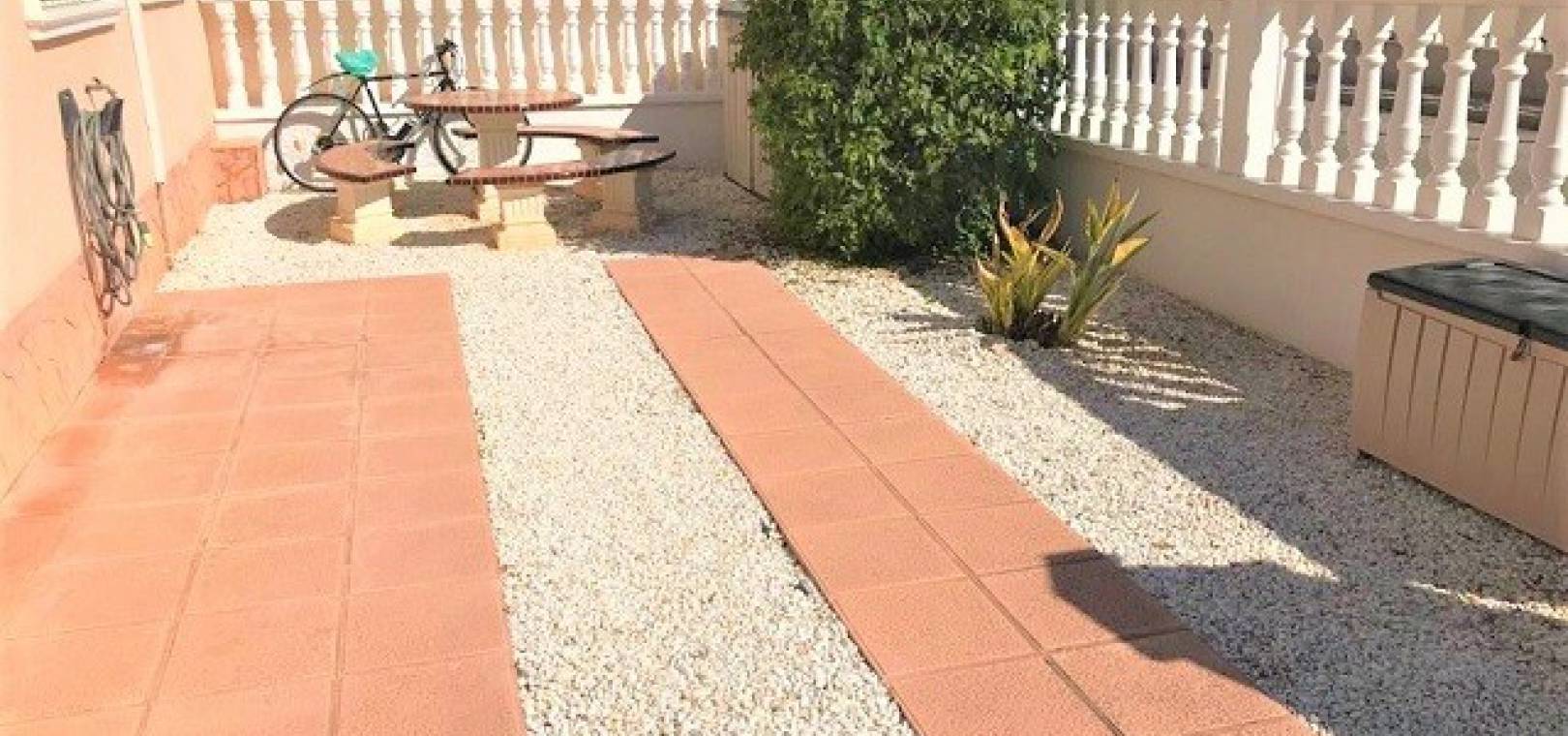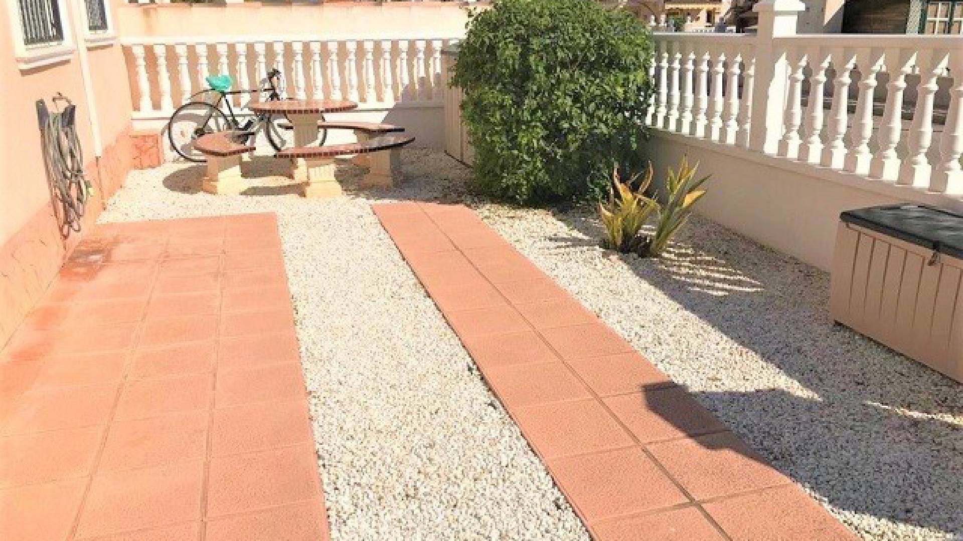 Il y a beaucoup de terrasse carrelée et d'espace extérieur, la maison est sur un terrain plus grand que la moyenne dans un coin très ensoleillé. Avec en prime un immense solarium privé sur le toit pour profiter du soleil toute la journée. Allée pour le stationnement hors route. Il y a un grand jardin commun et une piscine pour les résidents et les invités.