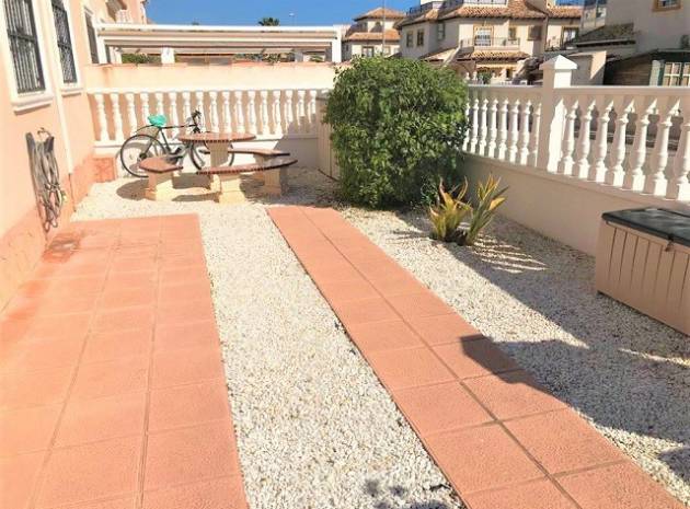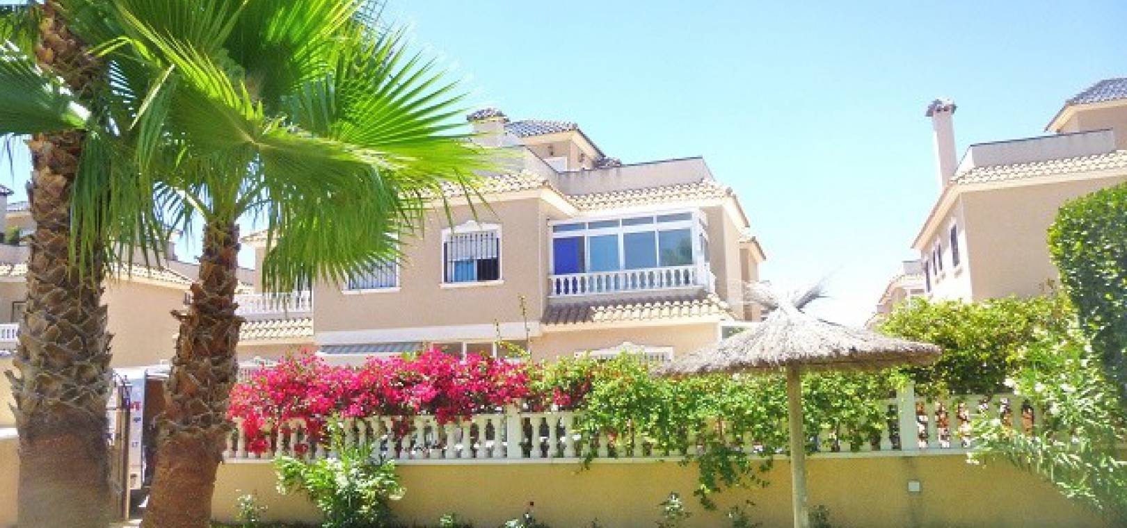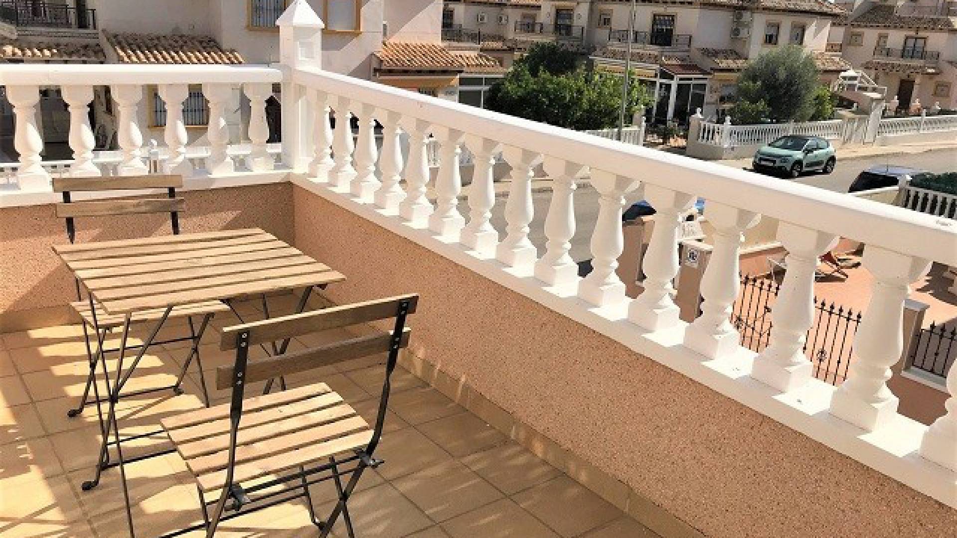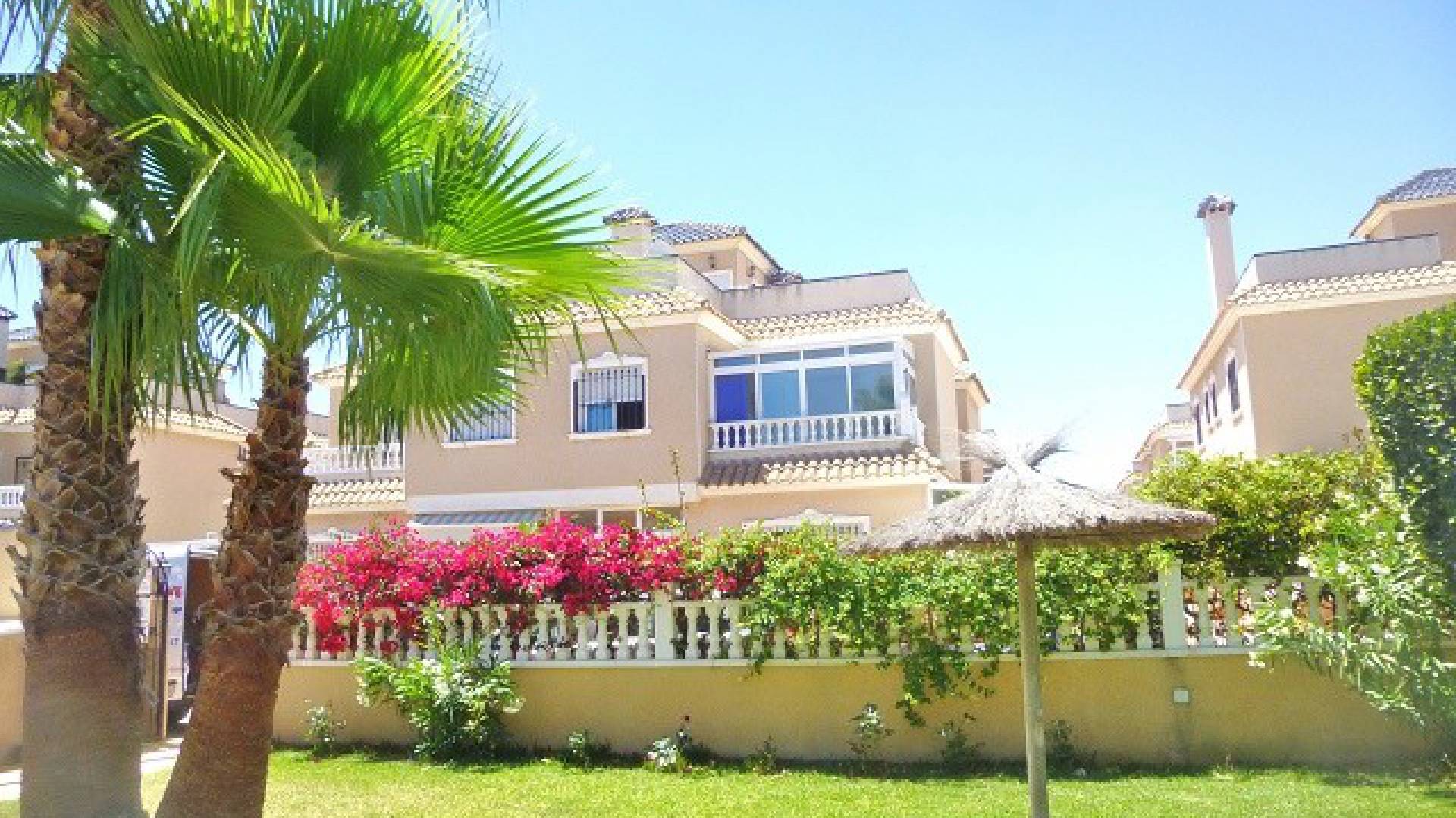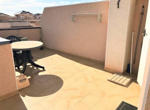 Il y a beaucoup de terrasse carrelée et d'espace extérieur, la maison est sur un terrain plus grand que la moyenne dans un coin très ensoleillé. Avec en prime un immense solarium privé sur le toit pour profiter du soleil toute la journée. Allée pour le stationnement hors route. Il y a un grand jardin commun et une piscine pour les résidents et les invités.